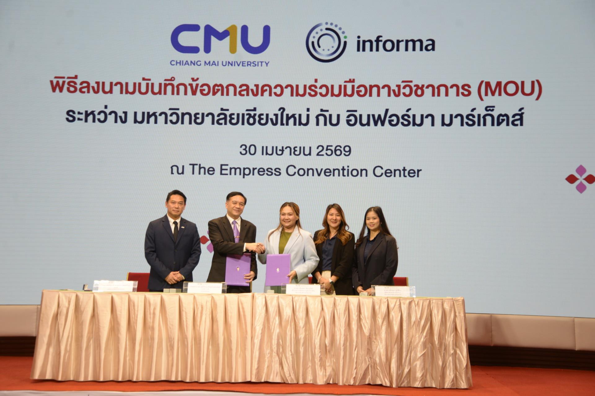 พิธีลงนาม ระหว่าง มหาวิทยาลัยเชียงใหม่ กับ บริษัท ยู บี เอ็ม เอเชีย (ประเทศไทย) จำกัด และบริษัท แบงค็อค เอ็กซิบิชั่น เซอร์วิสซิส จำกัด ศูนย์สื่อสารองค์กรและนักศึกษาเก่าสัมพันธ์ 30 เมษายน 2569 SDGs 3 8 9 12 17