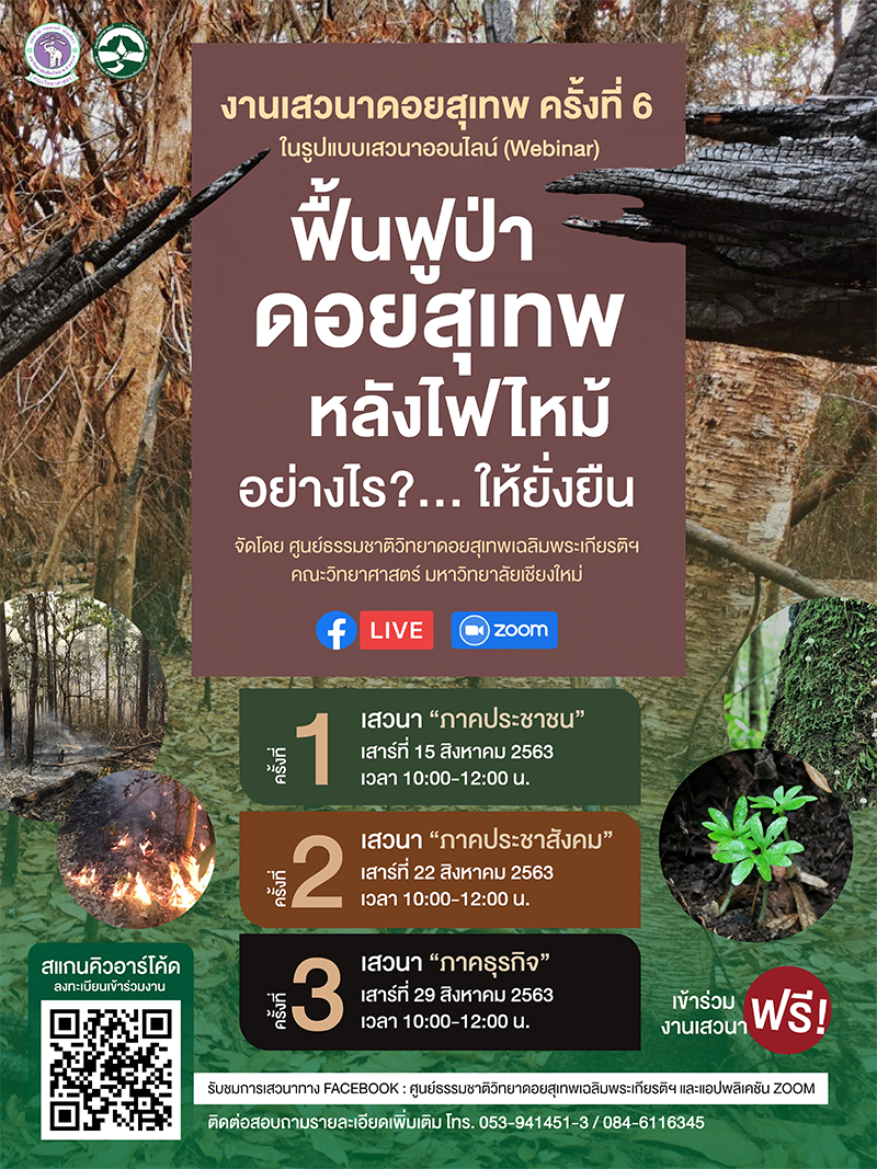 ฟื้นฟูป่าดอยสุเทพหลังไฟไหม้อย่างไรให้ยั่งยืน ร่วมหาคำตอบได้ในงานเสวนาดอยสุเทพ ครั้งที่ 6 รูปแบบออนไลน์