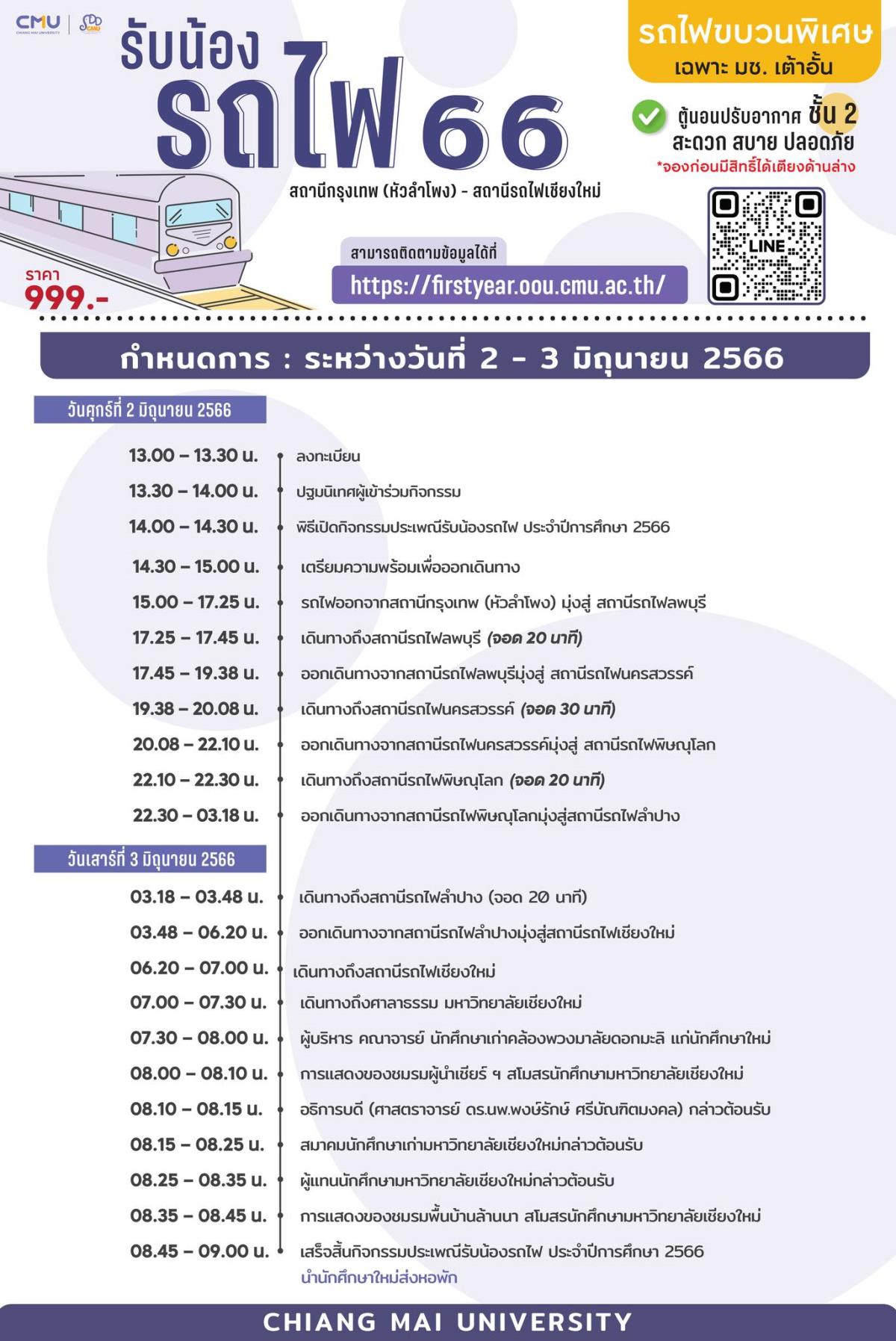 “รับน้องรถไฟ 2562” รถไฟขบวนพิเศษ ลูกช้าง มช. จากหัวลำโพงสู่สถานีเชียงใหม่ 20 - 21 ก.ค. นี้