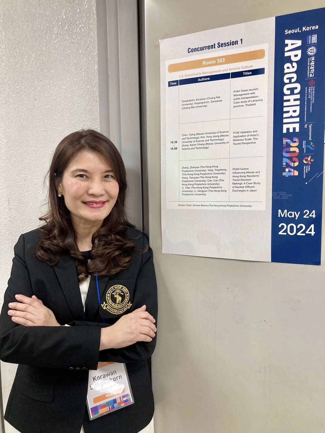 เมื่อวันที่ 24-26 พฤษภาคม 2567 ศูนย์วิจัยและพัฒนาการท่องเที่ยว สถาบันวิจัยพหุศาสตร์ มหาวิทยาลัยเชียงใหม่ โดย ดร.กรวรรณ สังขกร นักวิจัยชำนาญการพิเศษ หัวหน้าศูนย์ฯ และ ดร.รชพรรณ ฆารพันธ์ นักวิจัยชำนาญการพิเศษ ได้เข้าร่วมนำเสนอผลงานวิจัยในการประชุมวิชาการนานาชาติ APacCHRIE 2024 ณ Yonsei University, Seoul, Korea ภายใต้คอนเซ็ปต์งาน “Big Leap Forward Reshaping, Innovation, and Opportunity” ซึ่งจัดขึ้นเป็นครั้งที่ 22