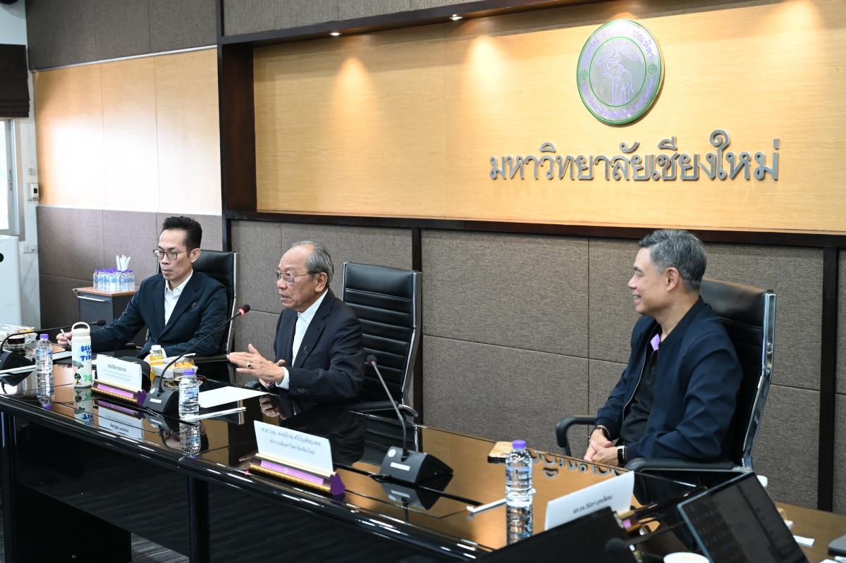 ศาสตราจารย์ ดร.นพ.พงษ์รักษ์ ศรีบัณฑิตมงคล อธิการบดีมหาวิทยาลัยเชียงใหม่ พร้อมด้วยรองศาสตราจารย์ ดร.วินิตา บุณโยดม รองอธิการบดี และคณะผู้บริหาร ให้การต้อนรับ คุณวิชัย ทองแตง ที่ปรึกษาคณะกรรมการบริหารเครือโรงพยาบาลพญาไท-เปาโล ในโอกาสที่มาประชุมปรึกษาหารือและรับฟังการนำเสนอโครงการวิจัย (Pitching) ของมหาวิทยาลัยเชียงใหม่ ณ ห้องประชุมบัวเรศ คำทอง ชั้น 5 อาคารสำนักงานมหาวิทยาลัย 2 มหาวิทยาลัยเชียงใหม่ วันอังคารที่ 16 ธันวาคม พ.ศ. 2568