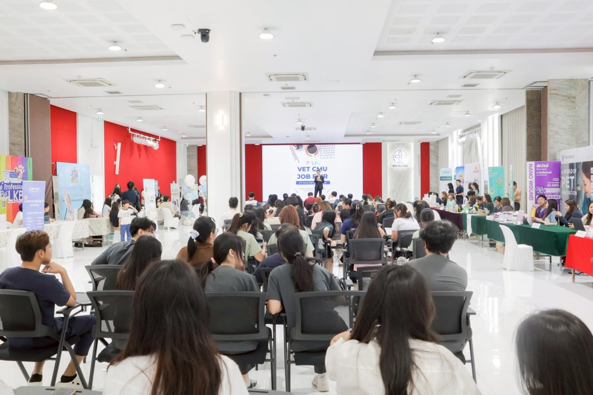คณะสัตวแพทยศาสตร์ มหาวิทยาลัยเชียงใหม่ จัดกิจกรรม ตลาดนัดวิชาชีพทางสัตวแพทย์ (Job and Education Fair 2025) เพื่อส่งเสริมการเตรียมความพร้อมด้านอาชีพให้แก่นักศึกษาสัตวแพทย์ โดยเปิดโอกาสให้นักศึกษาชั้นปีที่ 5 และนักศึกษาที่สนใจ พบปะและพูดคุยกับสถานประกอบการสำหรับการฝึกปฏิบัติงานและสหกิจศึกษา เมื่อวันที่ 9 ธันวาคม 2568