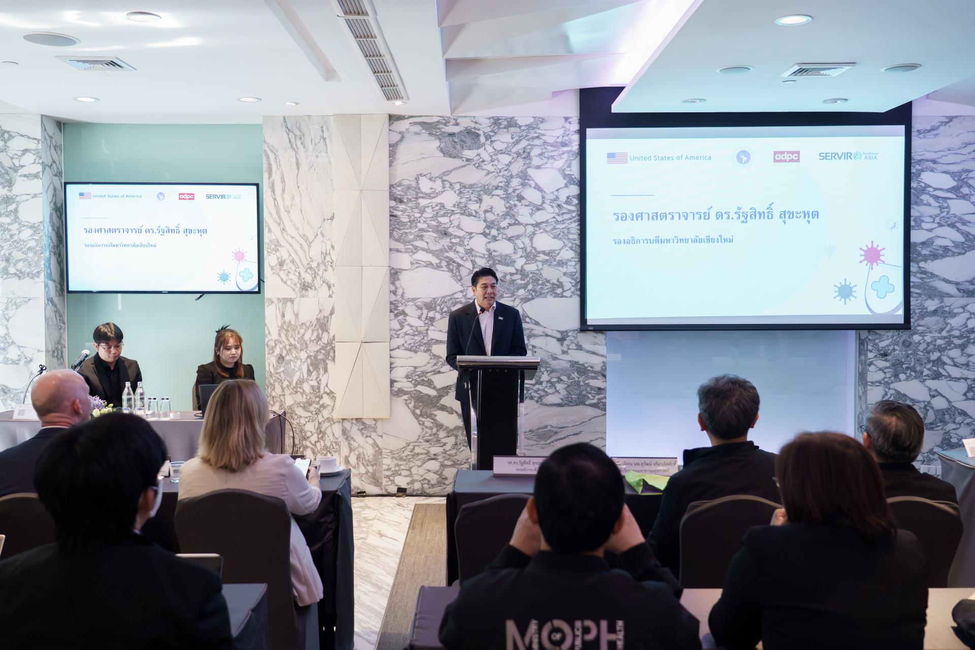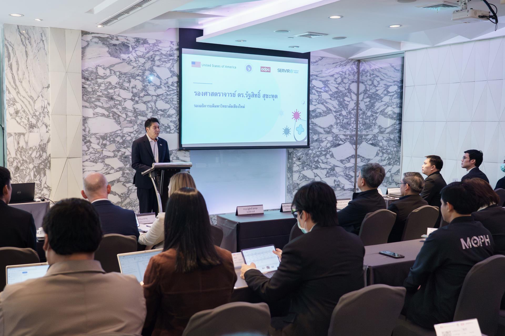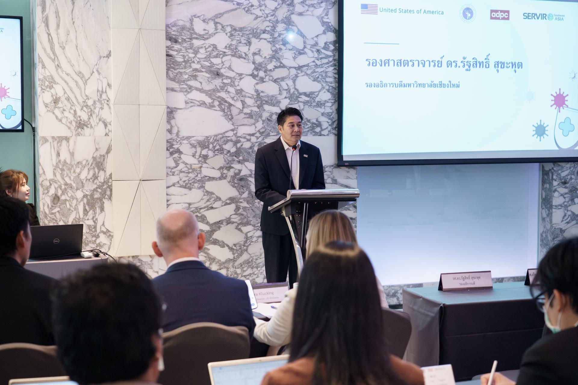 รองศาสตราจารย์ ดร.รัฐสิทธิ์ สุขะหุต รองอธิการบดี มหาวิทยาลัยเชียงใหม่ กล่าวต้อนรับผู้แทนจาก ADPC สำนักงานฝ่ายความช่วยเหลือเชิงกลยุทธ์ระดับภูมิภาค (RSA) และผู้ทรงคุณวุฒิ ในการเข้าร่วมการประชุมหารือในหัวข้อ "Environmental Drivers of Disease Dynamics: Supporting Data-Driven Public Health Policy in Thailand" ซึ่งเป็นเวทีสำคัญที่สะท้อนความร่วมมือระหว่างหน่วยงานระดับประเทศและระดับนานาชาติ ในการรับมือกับความท้าทายด้านสุขภาพที่เชื่อมโยงกับการเปลี่ยนแปลงของสภาพแวดล้อม ภูมิอากาศ และมลพิษทางอากาศ