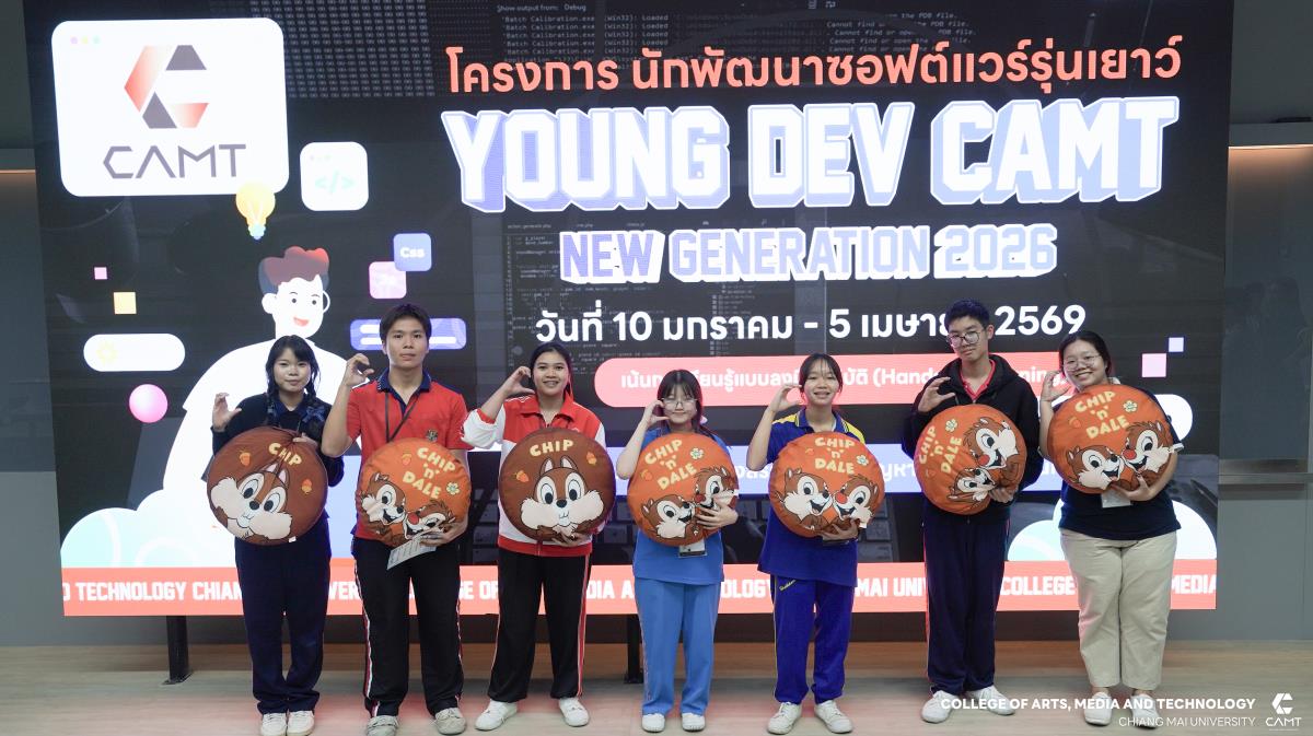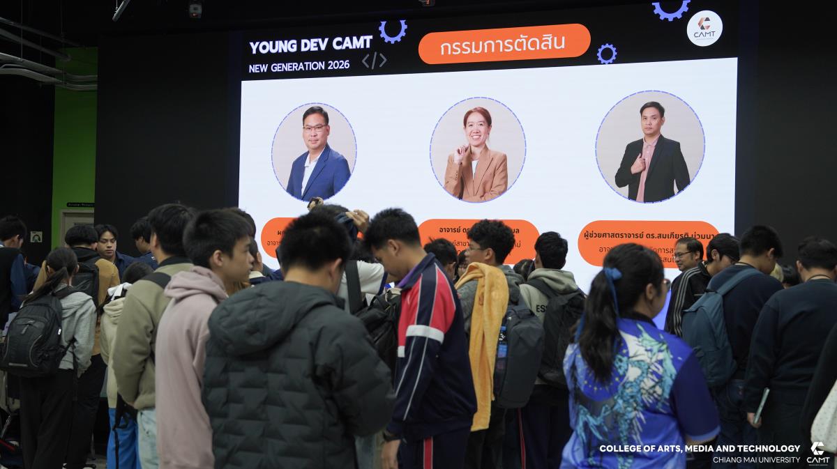 วิทยาลัยศิลปะ สื่อ และเทคโนโลยี มหาวิทยาลัยเชียงใหม่ จัดกิจกรรมปฐมนิเทศภายใต้โครงการนักพัฒนาซอฟต์แวร์รุ่นเยาว์ (Young DEV CAMT New Generation 2026) ให้แก่นักเรียนชั้นมัธยมศึกษาตอนปลายทั่วภาคเหนือ จำนวน 64 ราย โดยมุ่งเน้นการพัฒนาทักษะการเขียนโปรแกรมผ่านระบบออนไลน์และกิจกรรม Workshop เข้มข้น พร้อมฝึกฝนการนำเสนอผลงาน (Pitching) เพื่อเฟ้นหาทีมสู่สนามการแข่งขัน Hackathon ซึ่งโครงการดังกล่าวมีระยะเวลาในการดำเนินโครงการ โดยเริ่มตั้งแต่วันที่ 10 มกราคม 2569 จนถึงการแข่งขันในรอบสุดท้าย ระหว่างวันที่ 4-5 เมษายน 2569