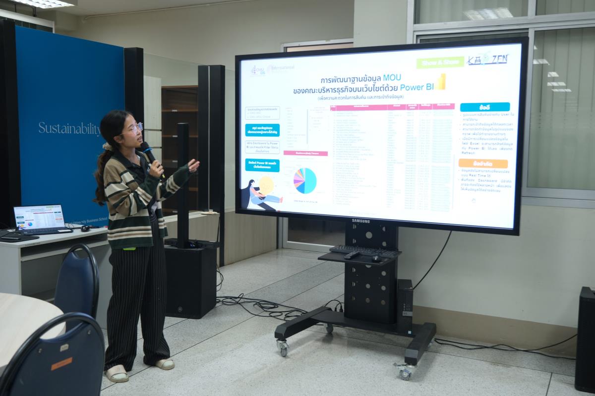 วันที่ 26 ธันวาคม 2568 คณะบริหารธุรกิจ มหาวิทยาลัยเชียงใหม่ จัดกิจกรรม Show and Share แบ่งปันความรู้ สร้างพลังองค์กรสำหรับบุคลากรภายในคณะ ณ ห้องสมุดเก่า คณะบริหารธุรกิจ มหาวิทยาลัยเชียงใหม่ เพื่อเปิดพื้นที่แลกเปลี่ยนองค์ความรู้ ประสบการณ์การทำงาน และแนวปฏิบัติที่สามารถนำไปประยุกต์ใช้จริง โดยหัวข้อที่นำมาถ่ายทอดในครั้งนี้เป็น ผลงานที่ได้รับรางวัลจากกิจกรรม CMUB Kaizen ซึ่งเป็นหนึ่งในกลไกการพัฒนาองค์กรของคณะ ที่มุ่งเน้นการปรับปรุงงานอย่างต่อเนื่อง โดยบุคลากรทุกระดับมีส่วนร่วมในการนำเสนอแนวทางใหม่ ๆ เพื่อเพิ่มประสิทธิภาพการทำงานและสร้างคุณค่าร่วมกันอย่างยั่งยืน