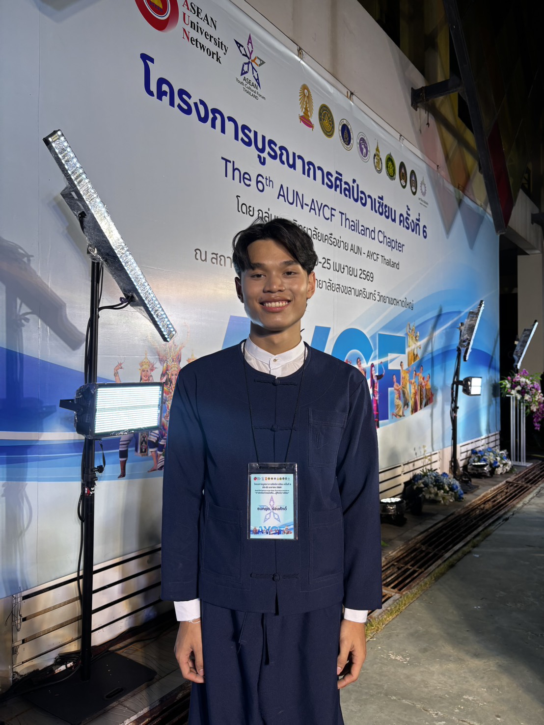 นายธนกฤต ร่องศักดิ์ (มะเดียว) นักศึกษาชั้นปีที่ 3 คณะพยาบาลศาสตร์ มหาวิทยาลัยเชียงใหม่ ได้รับการคัดเลือกเป็นตัวแทนมหาวิทยาลัยเชียงใหม่ ร่วมโครงการบูรณาการศิลปอาเซียน ครั้งที่ 6 ภายใต้แนวคิด "ศาสตร์แห่งแผ่นดิน....สู่ศิลปอาเซียน" ณ สถาบันสุวรรณภูมิ มหาวิทยาลัยสงขลานครินทร์ วิทยาเขตหาดใหญ่ ระหว่าง 20-25 เมษายน 2569 จัดโดย กลุ่มมหาวิทยาลัยเครือข่าย AUN-AYCF แห่งประเทศไทย