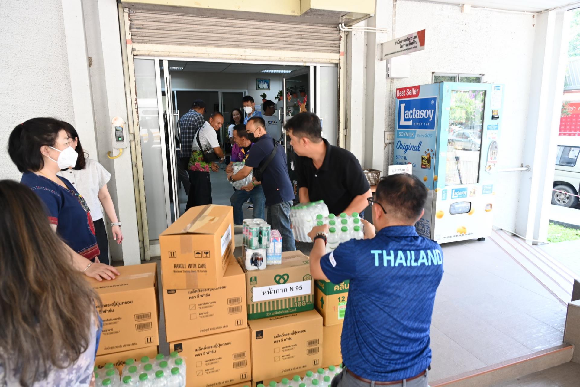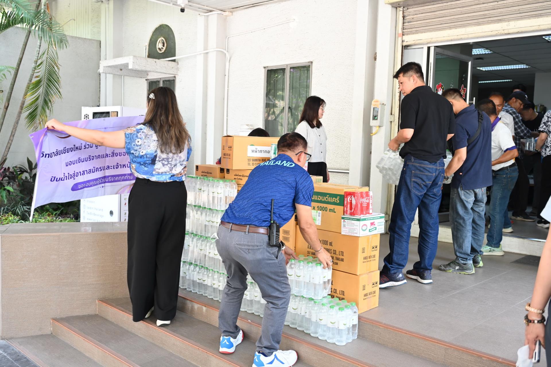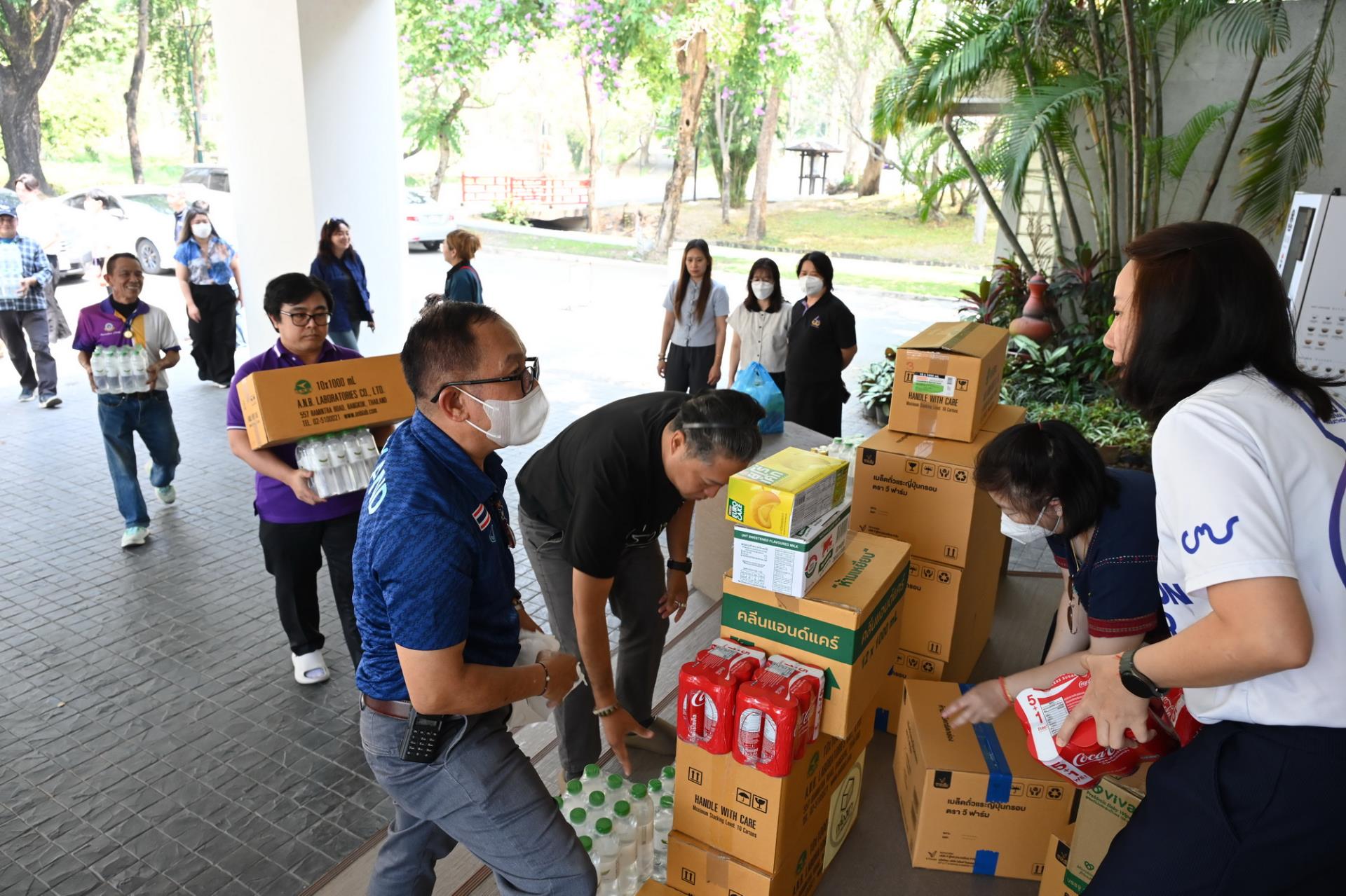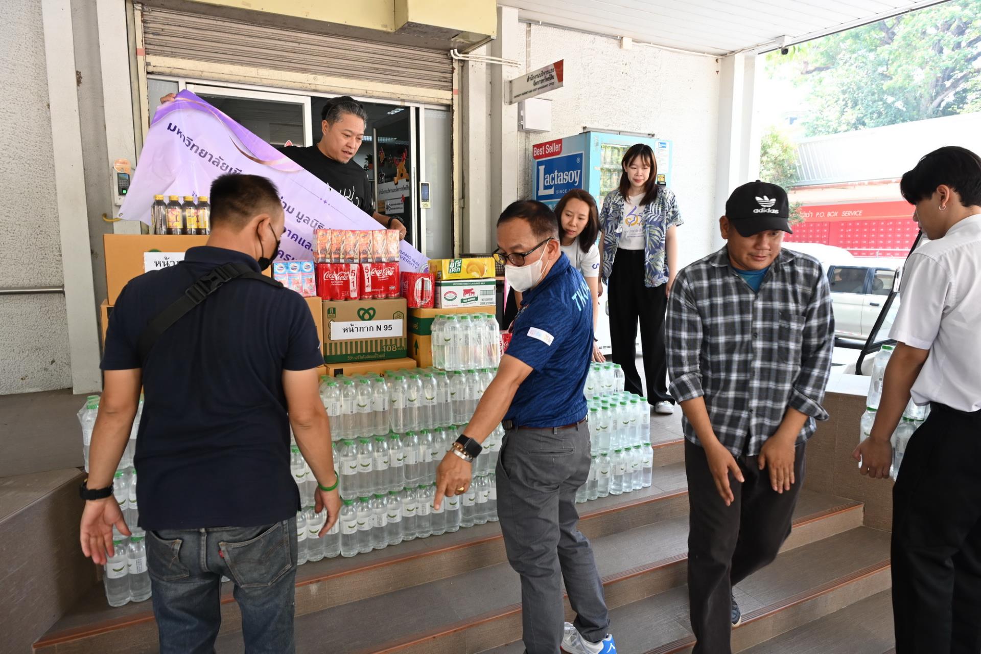 ผู้ช่วยศาสตราจารย์ ดร.ปิติพงษ์ ยอดมงคล รองอธิการบดีมหาวิทยาลัยเชียงใหม่ และมูลนิธิพัฒนามหาวิทยาลัยเชียงใหม่ รับมอบน้ำดื่ม เครื่องดื่มเกลือแร่ หน้ากากอนามัย อาหารและขนม จากมูลนิธิพัฒนาเกษตร มช. และคณะเกษตรศาสตร์ มช. นำโดยผู้ช่วยศาสตราจารย์ ดร. ดรุณี นาพรหม คณบดีคณะเกษตรศาสตร์ เจ้าหน้าที่และนักศึกษา ซึ่งเป็นเครื่องอุปโภค บริโภค ที่ได้รับจากการบริจาค เพื่อสนับสนุนช่วยเหลือ สร้างขวัญและกำลังใจการปฏิบัติงานของเจ้าหน้าที่ ในโครงการปันน้ำใจสู่อาสาสมัครและเจ้าหน้าที่ดับไฟป่า เพื่อบรรเทาสถานการณ์ปัญหาฝุ่นหมอกควัน PM 2.5 และไฟป่าในเขตพื้นที่ภาคเหนือ ณ สำนักงานบริหารและจัดการทรัพย์สิน มหาวิทยาลัยเชียงใหม่ วันศุกร์ที่ 10 เมษายน พ.ศ. 2569