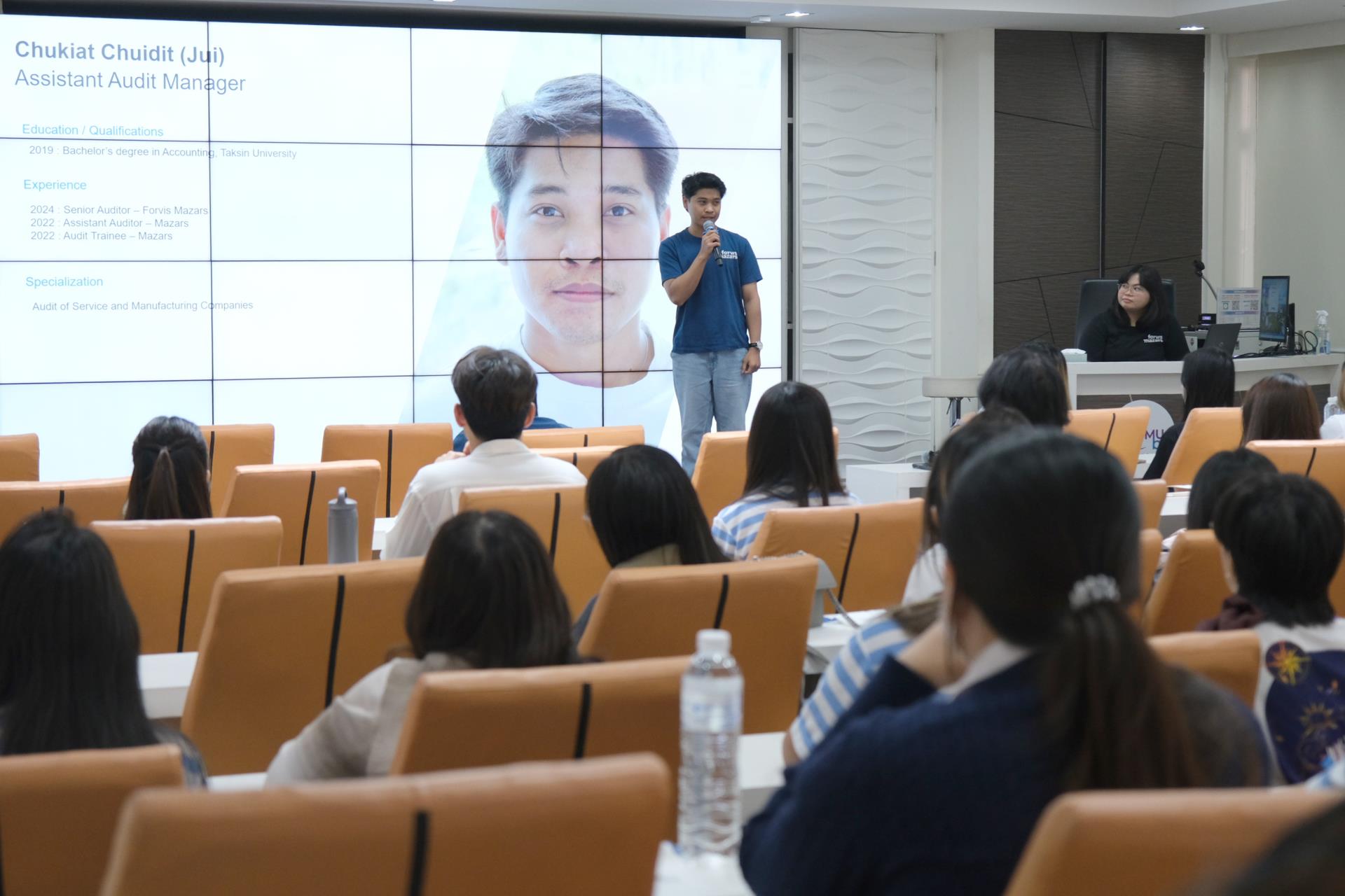 กิจกรรมครั้งนี้มุ่งเสริมสร้างความเข้าใจเกี่ยวกับเส้นทางความก้าวหน้าในสายอาชีพนักบัญชีและผู้ตรวจสอบภายใน พร้อมแนะนำคุณสมบัติและทักษะที่องค์กรให้ความสำคัญ ตลอดจนเปิดโอกาสให้นักศึกษาได้ซักถามและแลกเปลี่ยนประสบการณ์โดยตรงกับผู้เชี่ยวชาญ อันเป็นการเตรียมความพร้อมสู่เส้นทางวิชาชีพอย่างมั่นใจในอนาคต