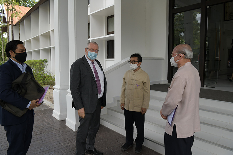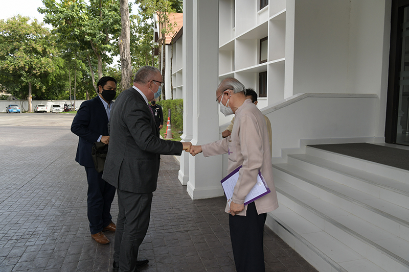 ศาสตราจารย์คลินิก นายแพทย์นิเวศน์ นันทจิต อธิการบดีมหาวิทยาลัยเชียงใหม่ ให้การต้อนรับ นายแอลลัน มักคินนัน (H.E. Allan McKinnon) เอกอัครราชทูตออสเตรเลีย ประจำประเทศไทย เข้าเยี่ยมคาราวะคณะผู้บริหารมหาวิทยาลัยเชียงใหม่ และหารือในประเด็นความร่วมมือทางด้านการเรียนการสอนของมหาวิทยาลัยเชียงใหม่ ภายหลังสถานการณ์การระบาดของโรคติดเชื้อไวรัสโคโรนา 2019 (COVID-19) เครือข่ายนักศึกษาเก่าออสเตรเลีย ความร่วมมือด้านการศึกษาวิจัย ด้านการแพทย์ วิทยาศาสตร์และเทคโนโลยี ระหว่างมหาวิทยาเชียงใหม่และมหาวิทยาลัยชั้นนำในประเทศออสเตรเลีย รวมทั้งการจัดการปัญหาหมอกควัน เมื่อวันพฤหัสบดี ที่ 28 ตุลาคม 2564 ณ ห้องหม่อมหลวงปิ่น มาลากุล สำนักงานมหาวิทยาลัย มหาวิทยาลัยเชียงใหม่