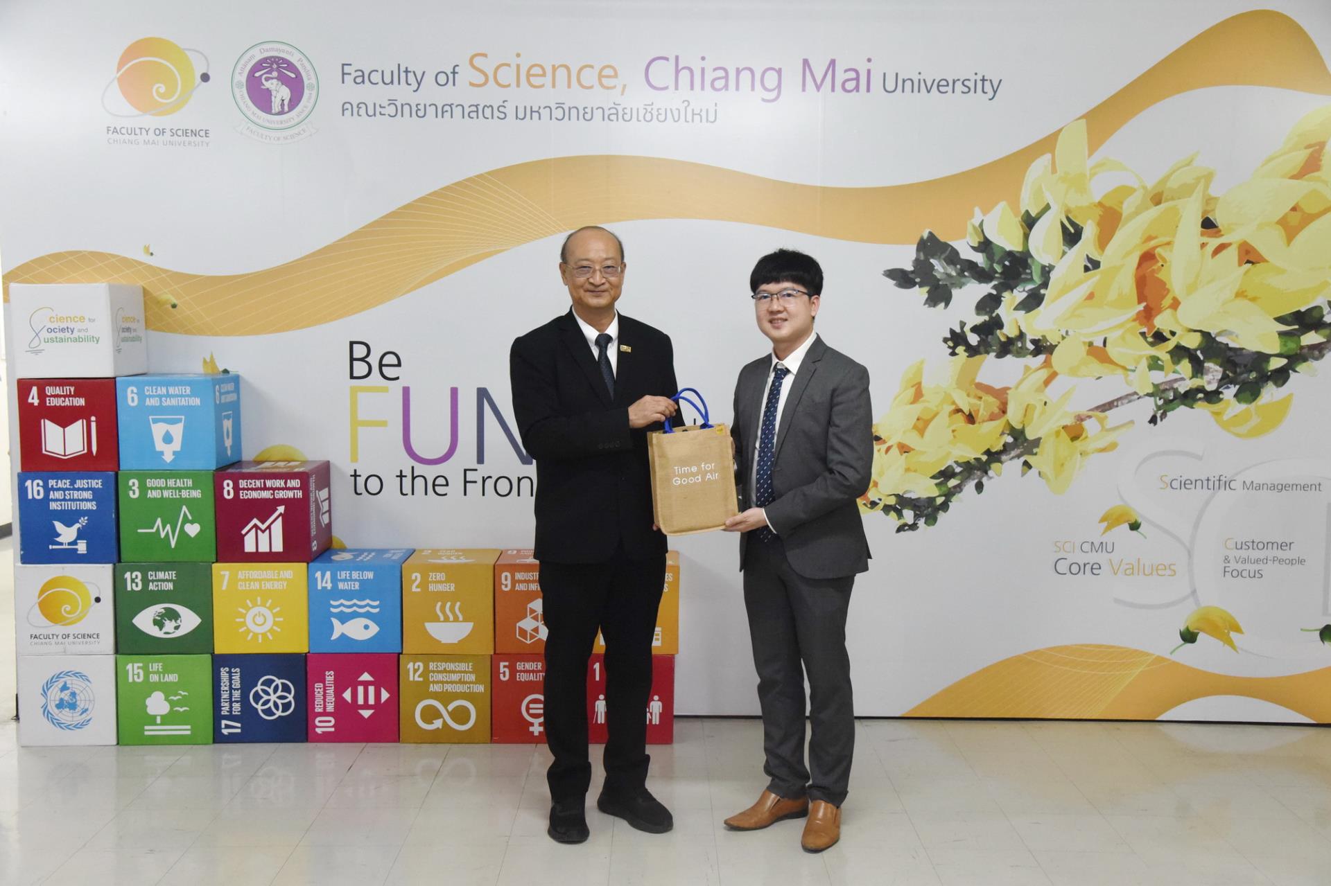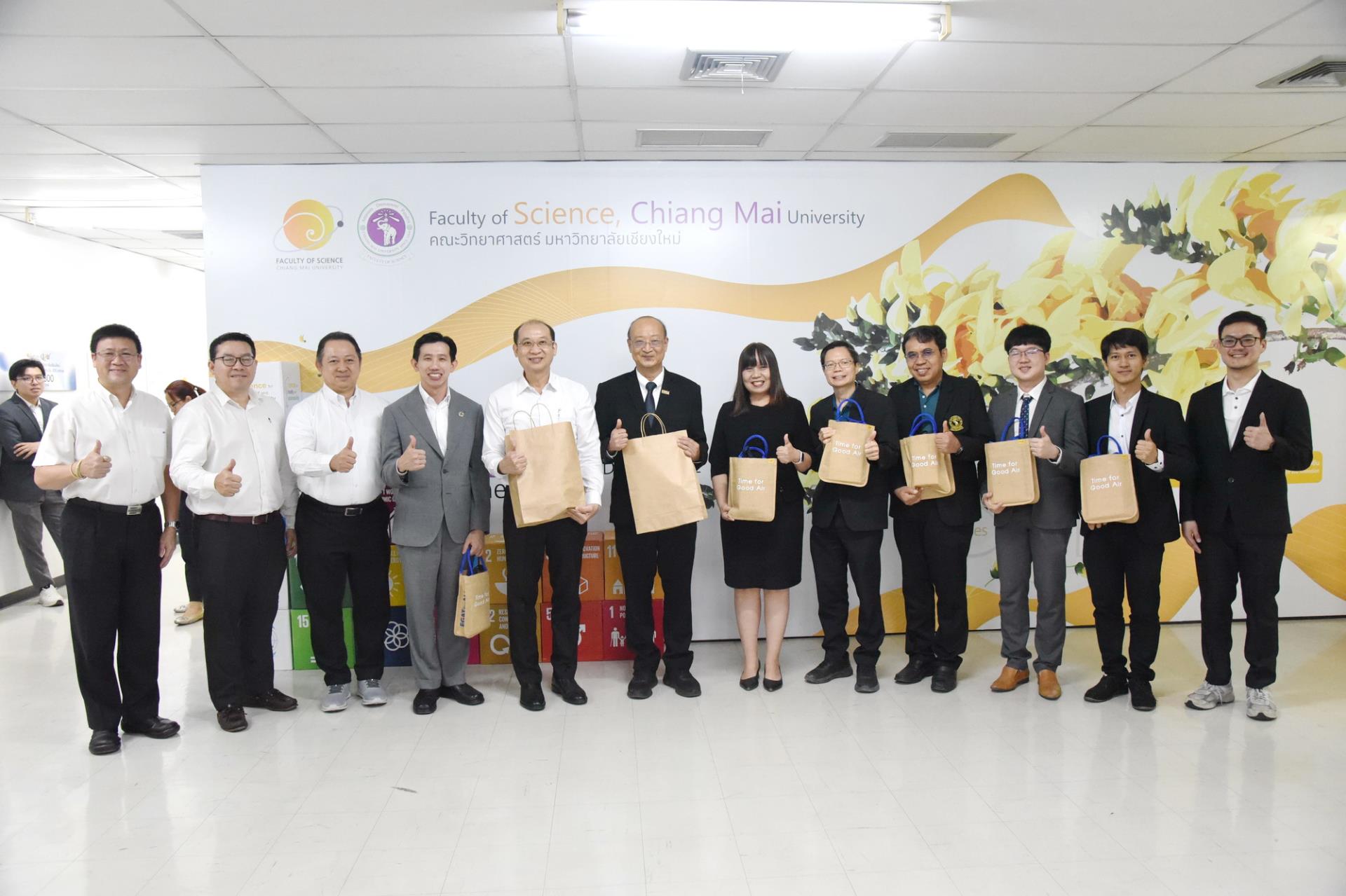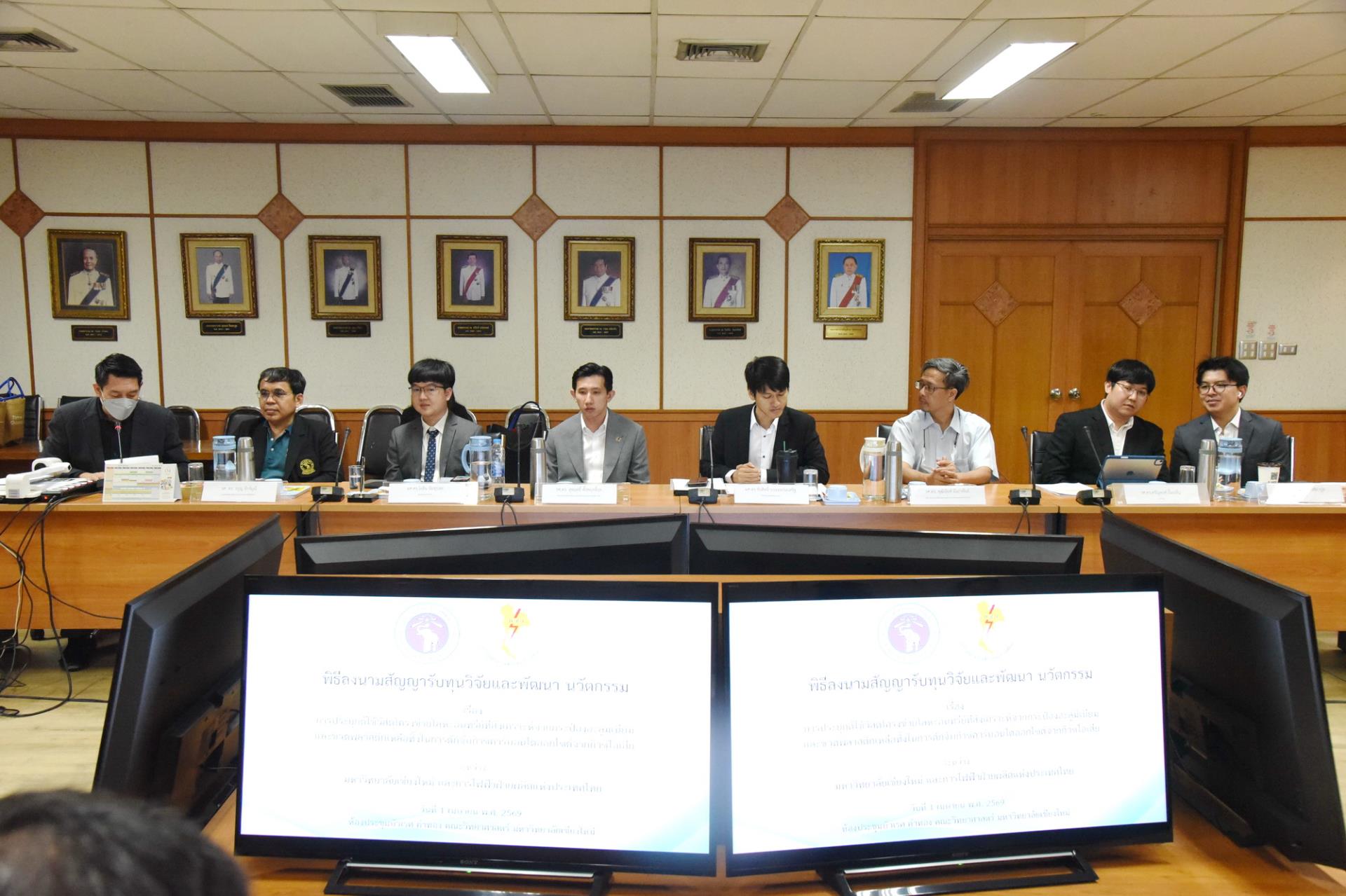 คณะวิทยาศาสตร์ มหาวิทยาลัยเชียงใหม่ จัดพิธีลงนามสัญญาโครงการ "การประยุกต์ใช้วัสดุโครงข่ายโลหะอินทรีย์ที่สังเคราะห์จากกระป๋องอลูมิเนียมและขวดพลาสติกเหลือทิ้งในการดักจับก๊าซคาร์บอนไดออกไซด์จากก๊าซไอเสีย" ระหว่างการไฟฟ้าฝ่ายผลิตแห่งประเทศไทยและมหาวิทยาลัยเชียงใหม่ โดยมีนายเศกสม ทัพทอง ผู้ช่วยผู้ว่าการวิศวกรรมและก่อสร้างโรงไฟฟ้า นายอรินทม์ เตมียกุล ผู้อำนวยการฝ่ายวิศวกรรมโรงไฟฟ้า การไฟฟ้าฝ่ายผลิตแห่งประเทศไทย รองศาสตราจารย์ ดร.วินิตา บุณโยดม รองอธิการบดีมหาวิทยาลัยเชียงใหม่ และผู้ช่วยศาสตราจารย์ ดร.โยธิน ฉิมอุปละ หัวหน้าโครงการฯ ร่วมลงนาม พร้อมด้วยศาสตราจารย์ ดร.ปิยะพงศ์ เนียมทรัพย์ คณบดีคณะวิทยาศาสตร์ คณะผู้บริหาร คณาจารย์ เจ้าหน้าที่ ร่วมเป็นสักขีพยาน ณ ห้องประชุม 2 ชั้น 2 อาคาร 40 ปี คณะวิทยาศาสตร์ วันพุธที่ 1 เมษายน พ.ศ. 2569