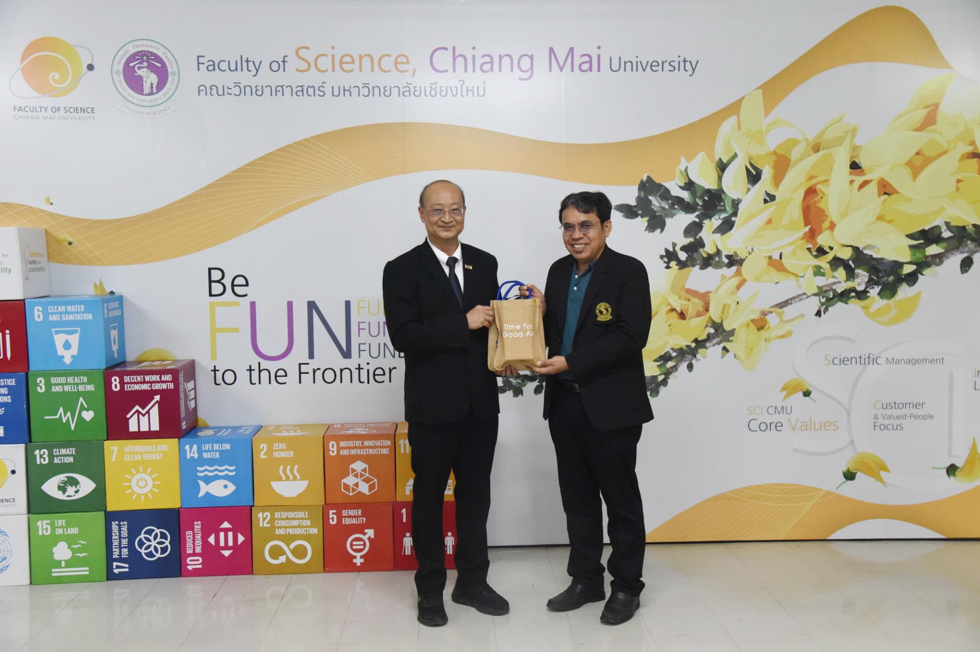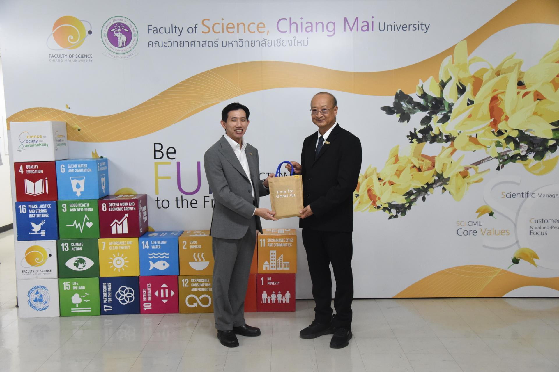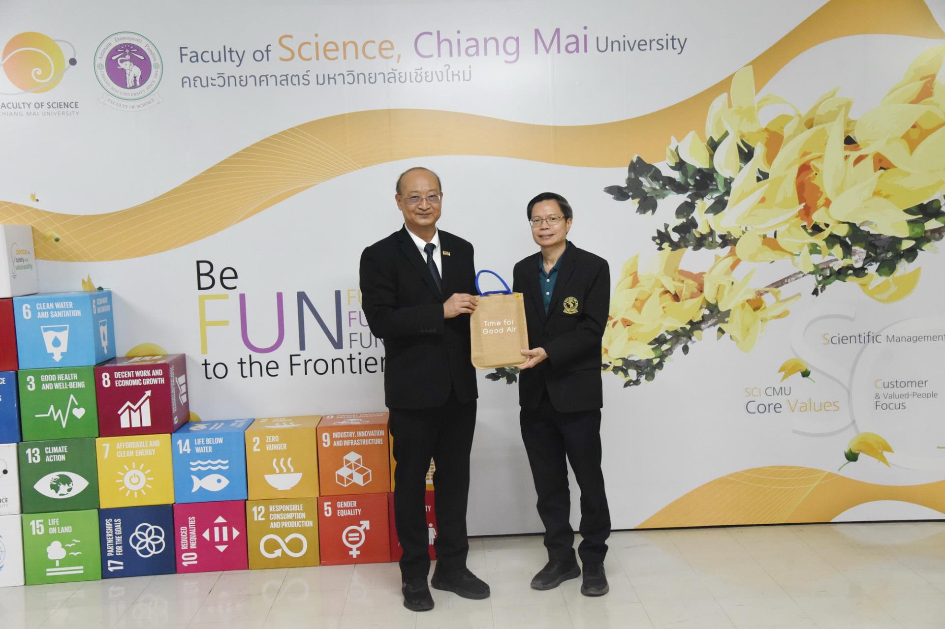 คณะวิทยาศาสตร์ มหาวิทยาลัยเชียงใหม่ จัดพิธีลงนามสัญญาโครงการ "การประยุกต์ใช้วัสดุโครงข่ายโลหะอินทรีย์ที่สังเคราะห์จากกระป๋องอลูมิเนียมและขวดพลาสติกเหลือทิ้งในการดักจับก๊าซคาร์บอนไดออกไซด์จากก๊าซไอเสีย" ระหว่างการไฟฟ้าฝ่ายผลิตแห่งประเทศไทยและมหาวิทยาลัยเชียงใหม่ โดยมีนายเศกสม ทัพทอง ผู้ช่วยผู้ว่าการวิศวกรรมและก่อสร้างโรงไฟฟ้า นายอรินทม์ เตมียกุล ผู้อำนวยการฝ่ายวิศวกรรมโรงไฟฟ้า การไฟฟ้าฝ่ายผลิตแห่งประเทศไทย รองศาสตราจารย์ ดร.วินิตา บุณโยดม รองอธิการบดีมหาวิทยาลัยเชียงใหม่ และผู้ช่วยศาสตราจารย์ ดร.โยธิน ฉิมอุปละ หัวหน้าโครงการฯ ร่วมลงนาม พร้อมด้วยศาสตราจารย์ ดร.ปิยะพงศ์ เนียมทรัพย์ คณบดีคณะวิทยาศาสตร์ คณะผู้บริหาร คณาจารย์ เจ้าหน้าที่ ร่วมเป็นสักขีพยาน ณ ห้องประชุม 2 ชั้น 2 อาคาร 40 ปี คณะวิทยาศาสตร์ วันพุธที่ 1 เมษายน พ.ศ. 2569