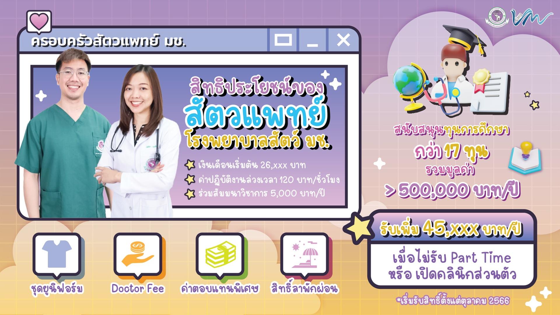 อ่านรายละเอียดสิทธิประโยชน์สำหรับสัตวแพทย์ สังกัด รพ.สัตว์มหาวิทยาลัยเชียงใหม่