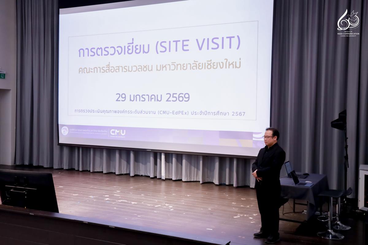 คณะการสื่อสารมวลชน มหาวิทยาลัยเชียงใหม่ นำโดย ผู้ช่วยศาสตราจารย์ ดร.ศุภฤกษ์ โพธิไพรัตนา คณบดีคณะการสื่อสารมวลชน พร้อมด้วยคณะผู้บริหาร คณาจารย์ และบุคลากรสายสนับสนุน ให้การต้อนรับคณะกรรมการตรวจสอบและประเมินคุณภาพการศึกษาภายในและภายนอกมหาวิทยาลัยเชียงใหม่ ในโอกาสรับการตรวจประเมินคุณภาพองค์กร (ระดับส่วนงาน) ตามแนวทางเกณฑ์คุณภาพการศึกษาเพื่อการดำเนินการที่เป็นเลิศ (CMU-EdPEx) ประจำปีการศึกษา 2567 ณ อาคารศูนย์นวัตกรรมการสื่อสาร (CIC) คณะการสื่อสารมวลชน มหาวิทยาลัยเชียงใหม่ ในวันพฤหัสบดีที่ 29 มกราคม 2569 เวลา 13.00 – 17.30 น.