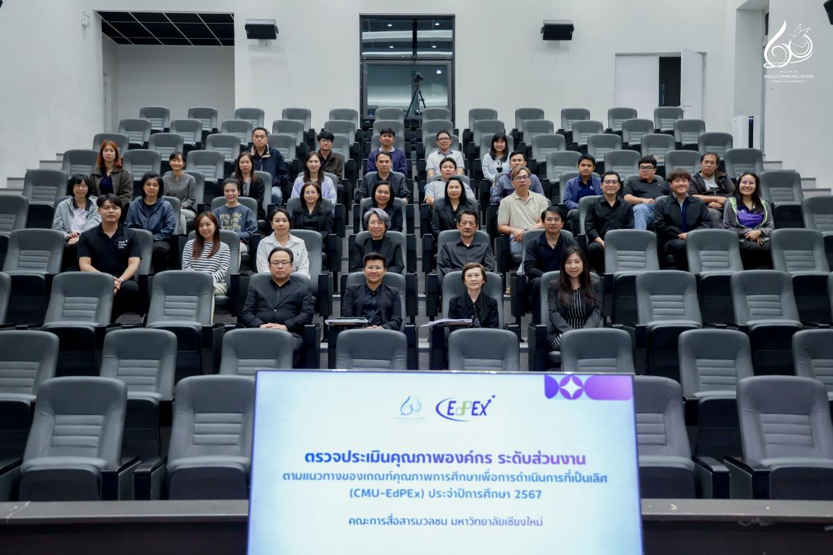 การตรวจประเมินครั้งนี้ได้รับเกียรติจากคณะกรรมการผู้ทรงคุณวุฒิ ประกอบด้วย ศาสตราจารย์ แพทย์หญิงจามรี ธีรตกุลพิศาล ผู้ทรงคุณวุฒิภายนอก ผู้ช่วยศาสตราจารย์ ดร.สรญา เขียวนาวาวงศ์ษา จากคณะอุตสาหกรรมเกษตร และผู้ช่วยศาสตราจารย์ ดร.จิราวิทย์ ญาณจินดา จากวิทยาลัยศิลปะ สื่อ และเทคโนโลยี โดย ผู้ช่วยศาสตราจารย์ ดร.ศุภฤกษ์ โพธิไพรัตนา คณบดีคณะการสื่อสารมวลชน ได้นำเสนอภาพรวมบริบทองค์กร ทิศทางการบริหารจัดการ และความก้าวหน้าในการดำเนินงานในมิติต่าง ๆ อย่างเป็นระบบ ตามกรอบแนวคิด CMU-EdPEx เพื่อสะท้อนศักยภาพและแนวทางการพัฒนาองค์กรอย่างต่อเนื่อง
