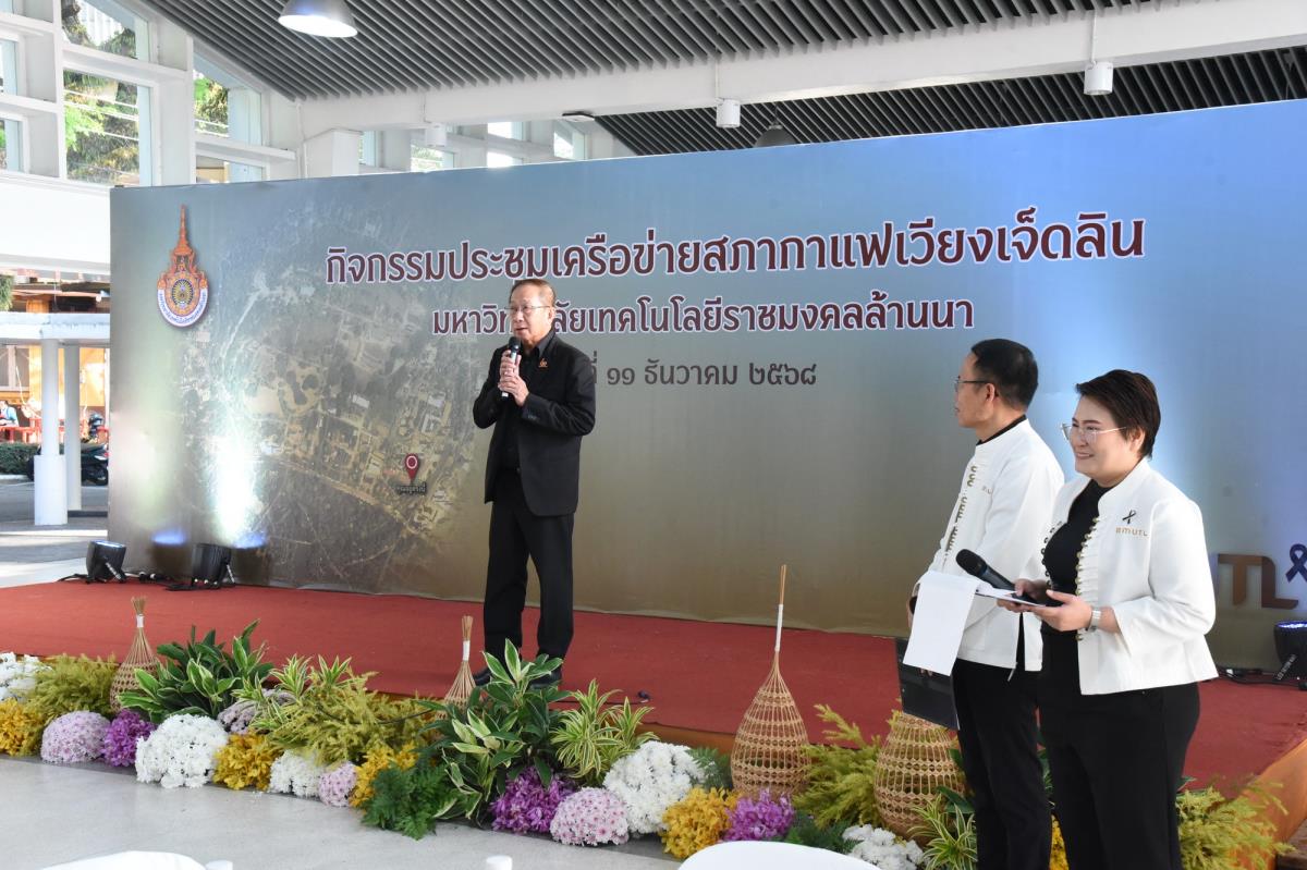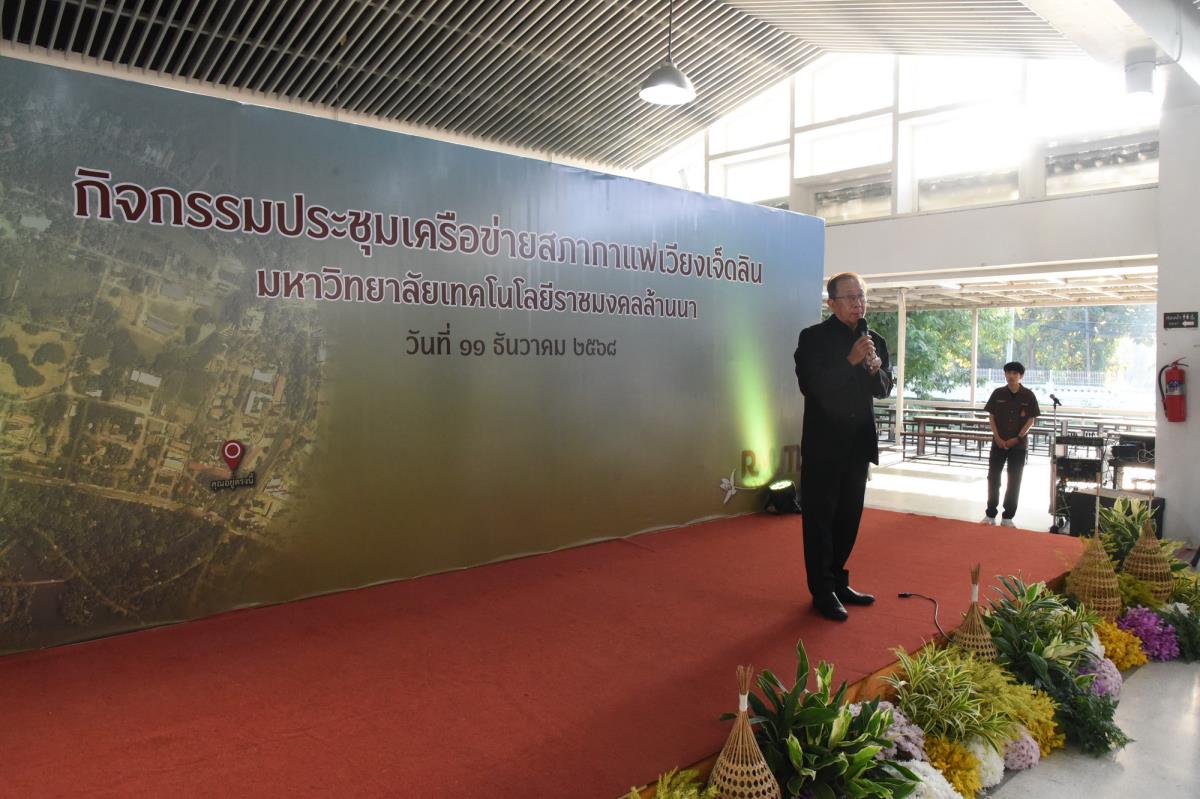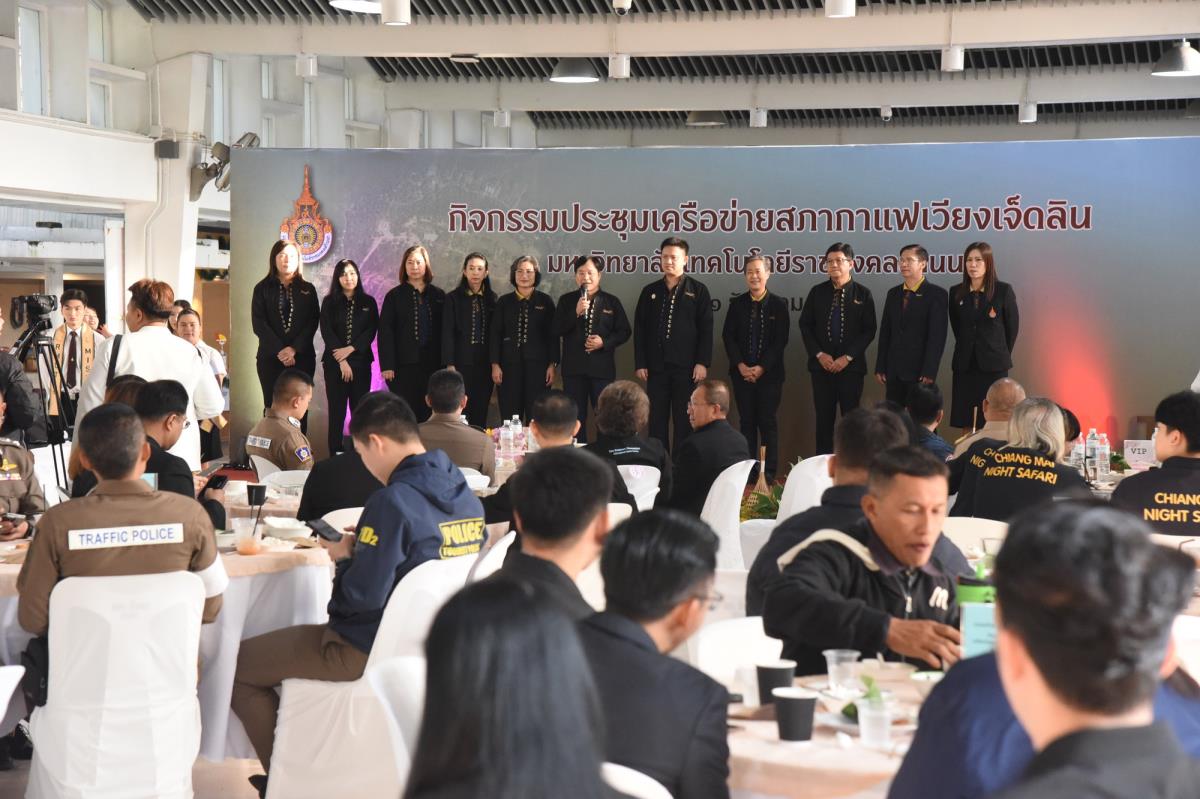 รองศาสตราจารย์ ประเสริฐ ฤกษ์เกรียงไกร รองอธิการบดี พร้อมด้วยคณะผู้บริหารมหาวิทยาลัยเชียงใหม่ ร่วมกิจกรรมประชุมเครือข่ายสภากาแฟเวียงเจ็ดลิน โดยมี รักษาการแทนอธิการบดี มหาวิทยาลัยเทคโนโลยีราชมงคลล้านนา กล่าวต้อนรับ ในนามเจ้าภาพในการจัดกิจกรรม พร้อมด้วยคณะผู้บริหาร พนักงาน เจ้าหน้าที่ นักศึกษา จากองค์กร หน่วยงาน สมาชิกสภากาแฟเวียงเจ็ดลิน เข้าร่วมแลกเปลี่ยนประชาสัมพันธ์ข้อมูลข่าวสารระหว่างหน่วยงาน และได้มอบป้ายเจ้าภาพการจัดงานครั้งต่อไปให้แก่ สำนักงานปศุสัตว์จังหวัดเชียงใหม่ ณ ข่วงวัฒนธรรมเวียงเจ็ดลิน มหาวิทยาลัยเทคโนโลยีราชมงคลล้านนา วันพฤหัสบดีที่ 11 ธันวาคม พ.ศ. 2568