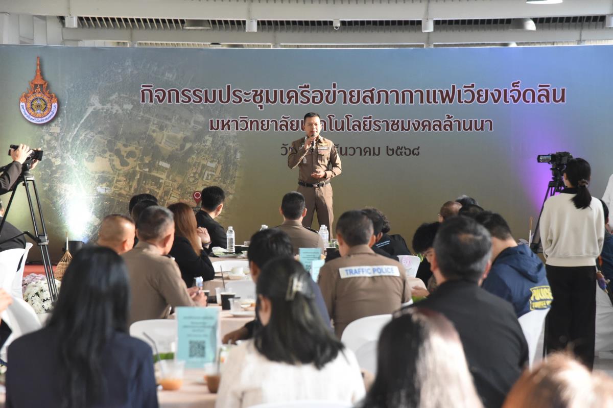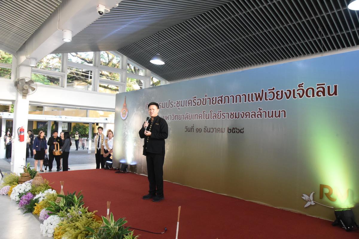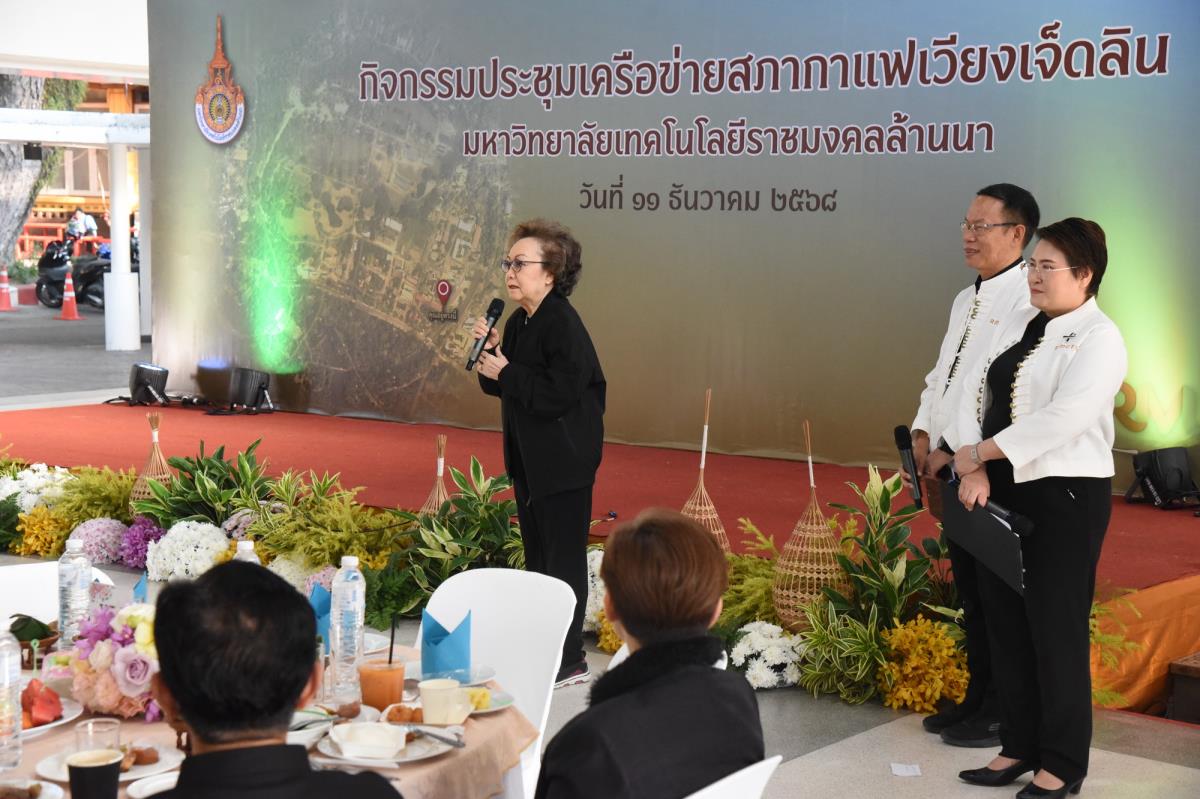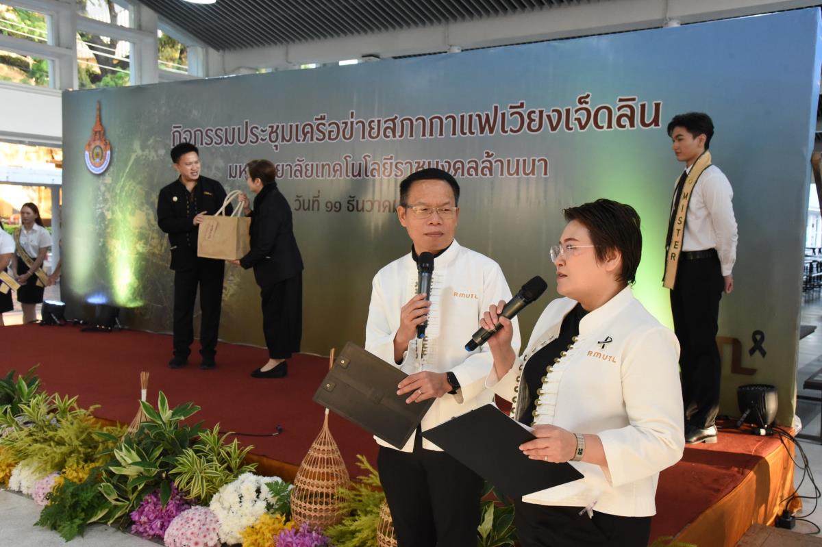 รองศาสตราจารย์ ประเสริฐ ฤกษ์เกรียงไกร รองอธิการบดี พร้อมด้วยคณะผู้บริหารมหาวิทยาลัยเชียงใหม่ ร่วมกิจกรรมประชุมเครือข่ายสภากาแฟเวียงเจ็ดลิน โดยมี รักษาการแทนอธิการบดี มหาวิทยาลัยเทคโนโลยีราชมงคลล้านนา กล่าวต้อนรับ ในนามเจ้าภาพในการจัดกิจกรรม พร้อมด้วยคณะผู้บริหาร พนักงาน เจ้าหน้าที่ นักศึกษา จากองค์กร หน่วยงาน สมาชิกสภากาแฟเวียงเจ็ดลิน เข้าร่วมแลกเปลี่ยนประชาสัมพันธ์ข้อมูลข่าวสารระหว่างหน่วยงาน และได้มอบป้ายเจ้าภาพการจัดงานครั้งต่อไปให้แก่ สำนักงานปศุสัตว์จังหวัดเชียงใหม่ ณ ข่วงวัฒนธรรมเวียงเจ็ดลิน มหาวิทยาลัยเทคโนโลยีราชมงคลล้านนา วันพฤหัสบดีที่ 11 ธันวาคม พ.ศ. 2568