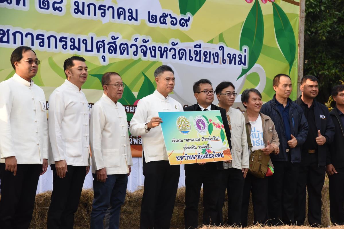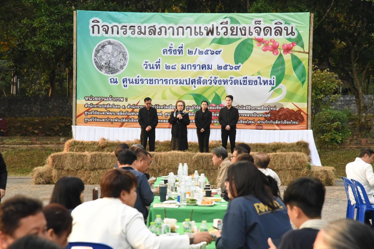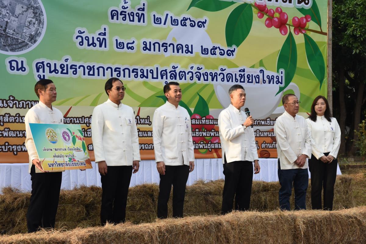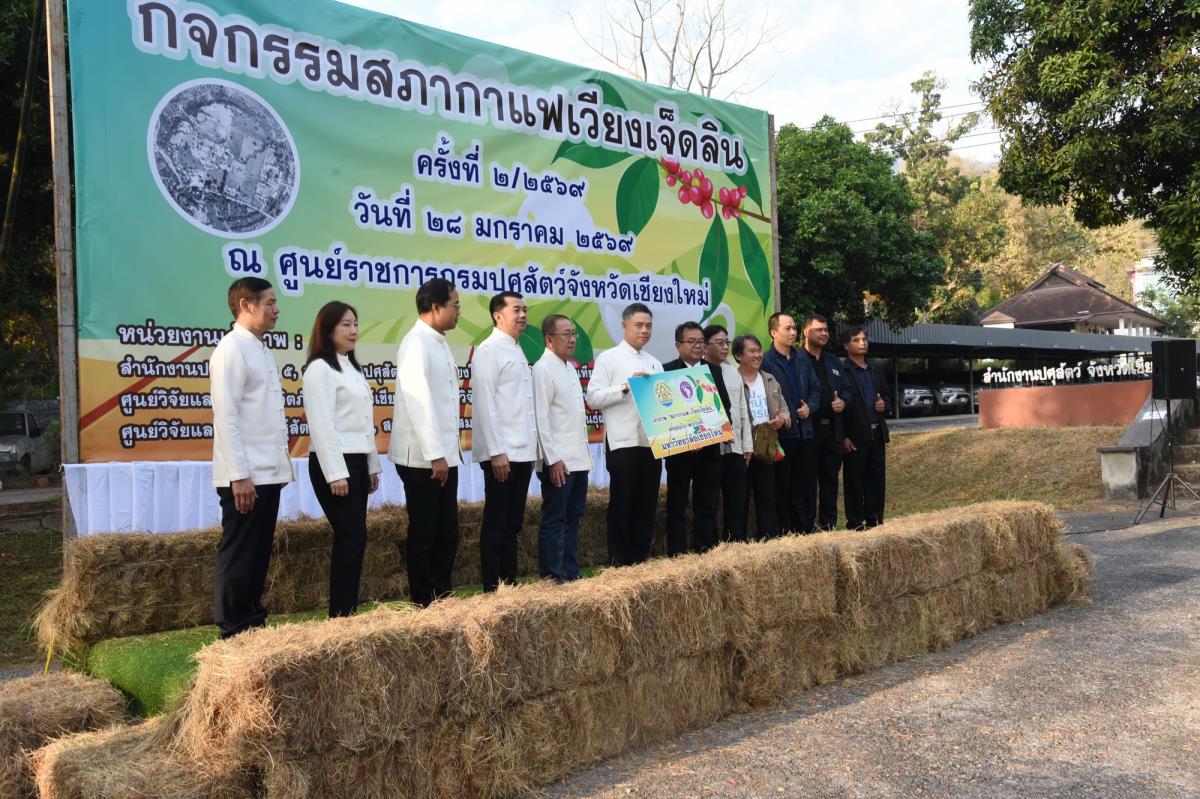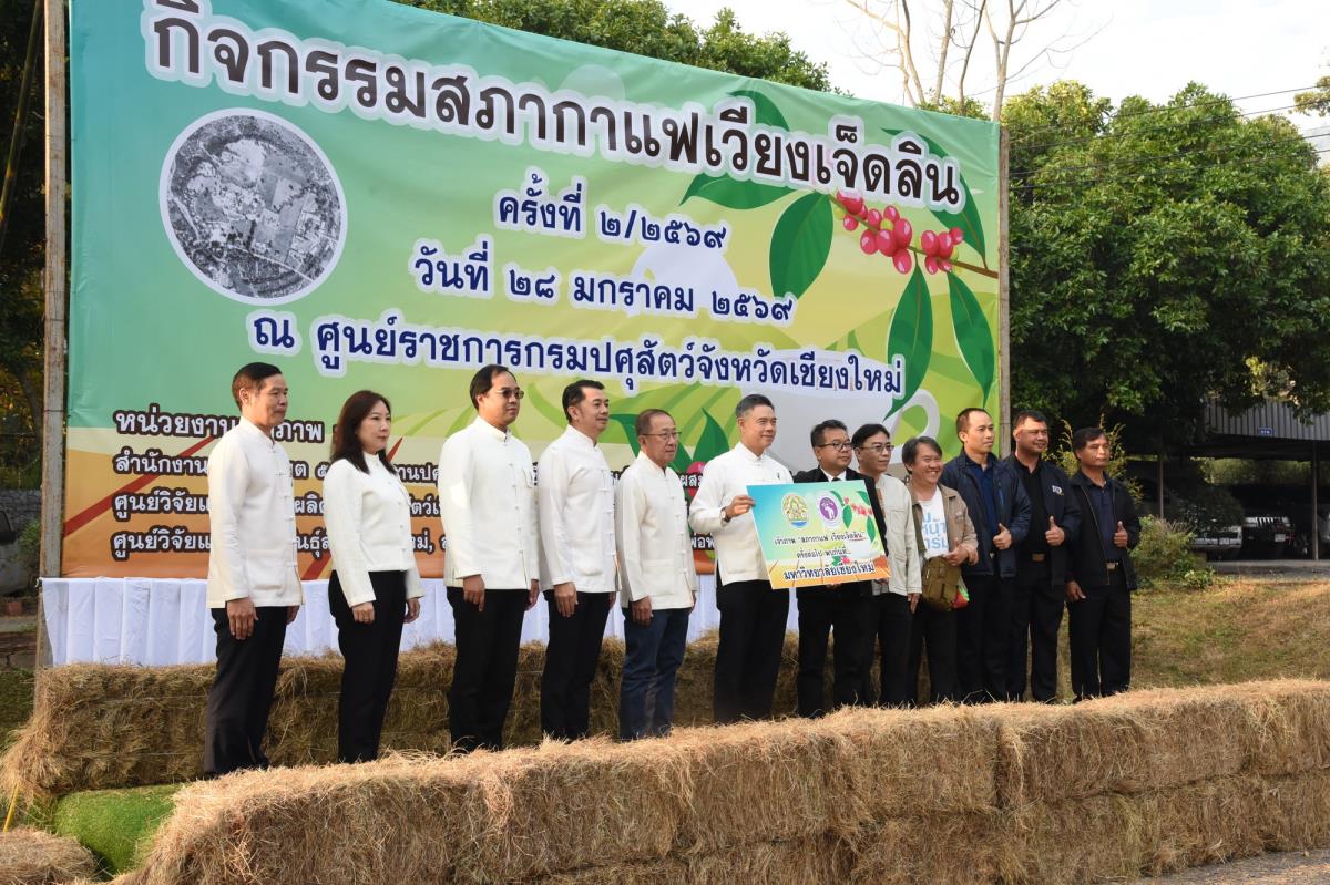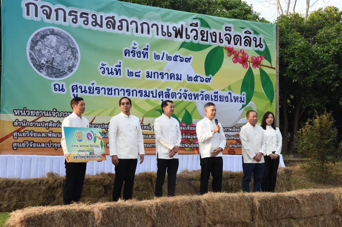 ศาสตราจารย์ ดร.นพ.พงษ์รักษ์ ศรีบัณฑิตมงคล อธิการบดี พร้อมด้วยคณะผู้บริหารมหาวิทยาลัยเชียงใหม่ ร่วมกิจกรรมสภากาแฟเวียงเจ็ดลิน ครั้งที่ 2/2569 และรับมอบป้ายการเป็นเจ้าภาพในการจัดงานครั้งที่ 3/2569 จาก สำนักงานปศุสัตว์เขต 5 สำนักงานปศุสัตว์จังหวัดเชียงใหม่ ศูนย์วิจัยการผสมเทียมและเทคโนโลยีชีวภาพเชียงใหม่ ศูนย์วิจัยและพัฒนาผลิตภัณฑ์ปศุสัตว์จังหวัดเชียงใหม่ ศูนย์วิจัยและผลิตน้ำเชื้อแช่แข็งพ่อพันธุ์โครงการหลวงอินทนนท์ ศูนย์วิจัยและบำรุงพันธ์สัตว์เชียงใหม่ สถานีทดสอบสมรรถภาพและฝึกสัตว์พ่อพันธุ์ผสมเทียมเชียงใหม่และด่านกักกันสัตว์เชียงใหม่ เพื่อพบปะแลกเปลี่ยนประชาสัมพันธ์ข้อมูลข่าวสาร กิจกรรมและโครงการต่างๆ ระหว่างหน่วยงานในเขตพื้นที่เวียงเจ็ดลิน ณ ลานจอดรถศูนย์ราชการกรมปศุสัตว์จังหวัดเชียงใหม่ วันพุธที่ 28 มกราคม พ.ศ. 2569