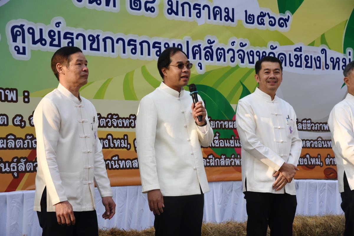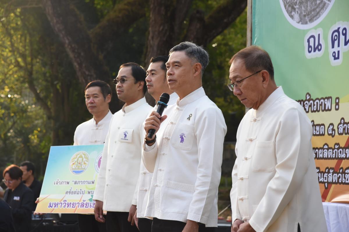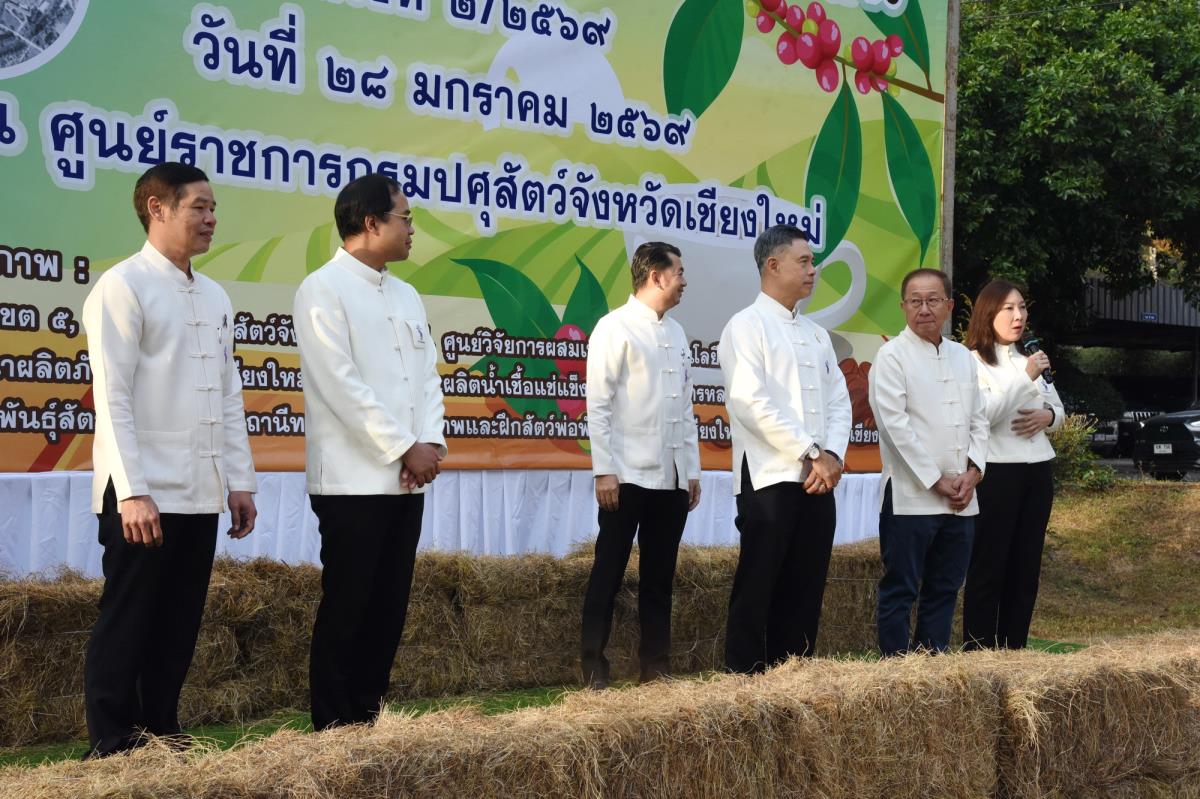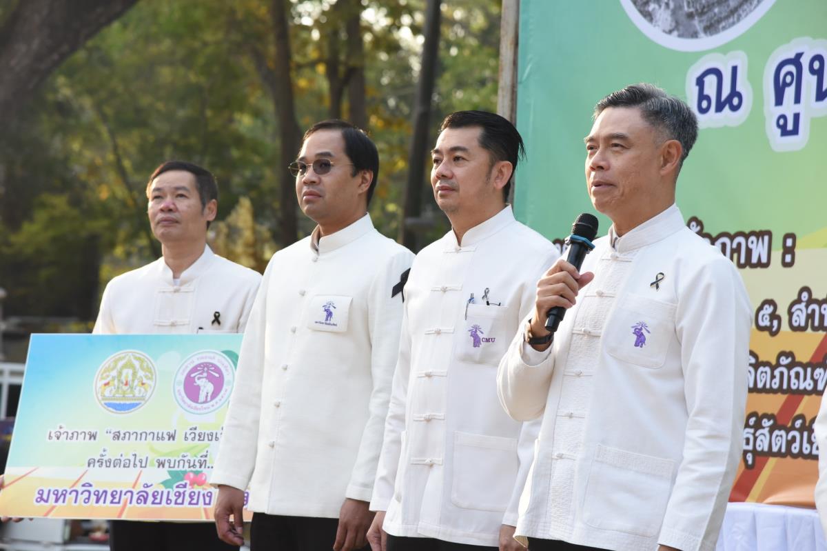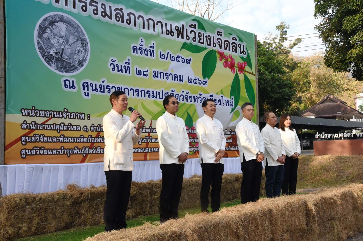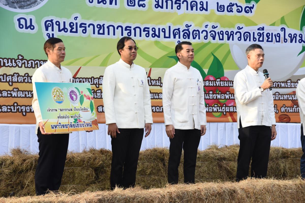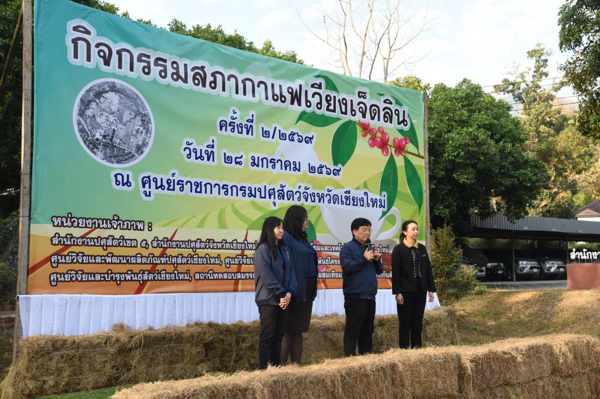 ศาสตราจารย์ ดร.นพ.พงษ์รักษ์ ศรีบัณฑิตมงคล อธิการบดี พร้อมด้วยคณะผู้บริหารมหาวิทยาลัยเชียงใหม่ ร่วมกิจกรรมสภากาแฟเวียงเจ็ดลิน ครั้งที่ 2/2569 และรับมอบป้ายการเป็นเจ้าภาพในการจัดงานครั้งที่ 3/2569 จาก สำนักงานปศุสัตว์เขต 5 สำนักงานปศุสัตว์จังหวัดเชียงใหม่ ศูนย์วิจัยการผสมเทียมและเทคโนโลยีชีวภาพเชียงใหม่ ศูนย์วิจัยและพัฒนาผลิตภัณฑ์ปศุสัตว์จังหวัดเชียงใหม่ ศูนย์วิจัยและผลิตน้ำเชื้อแช่แข็งพ่อพันธุ์โครงการหลวงอินทนนท์ ศูนย์วิจัยและบำรุงพันธ์สัตว์เชียงใหม่ สถานีทดสอบสมรรถภาพและฝึกสัตว์พ่อพันธุ์ผสมเทียมเชียงใหม่และด่านกักกันสัตว์เชียงใหม่ เพื่อพบปะแลกเปลี่ยนประชาสัมพันธ์ข้อมูลข่าวสาร กิจกรรมและโครงการต่างๆ ระหว่างหน่วยงานในเขตพื้นที่เวียงเจ็ดลิน ณ ลานจอดรถศูนย์ราชการกรมปศุสัตว์จังหวัดเชียงใหม่ วันพุธที่ 28 มกราคม พ.ศ. 2569
