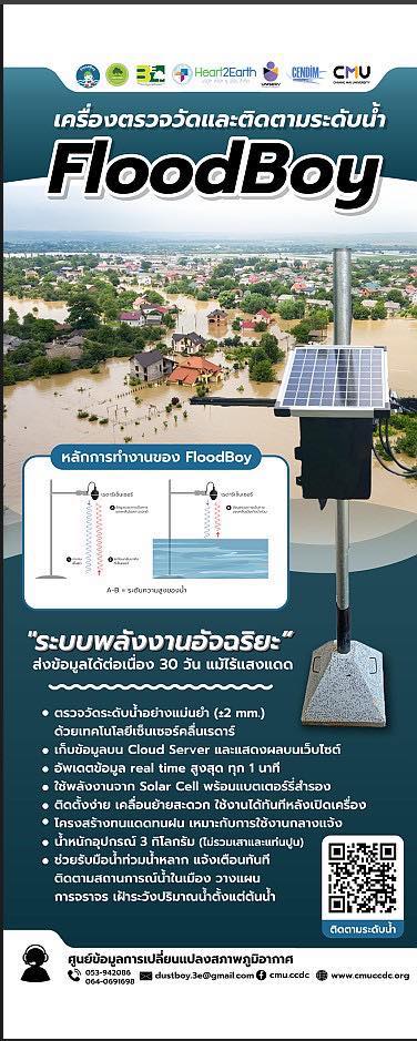 ในด้านนวัตกรรมที่ตอบสนองแบบเรียลไทม์ มช. นำเทคโนโลยีมาช่วยเฝ้าระวังสถานการณ์ โดยได้นำนวัตกรรม FloodBoy เครื่องวัดระดับน้ำอัตโนมัติที่ใช้ AI ในการติดตามและส่งสัญญาณเตือนล่วงหน้า ทำให้หน่วยงานและชุมชนมีข้อมูลสถานการณ์จริงเพื่อเตรียมการป้องกันและป้องกันความเสียหายของทรัพย์สินได้อย่างทันท่วงที