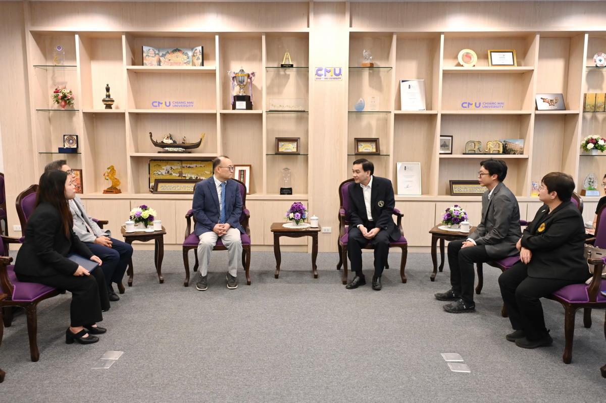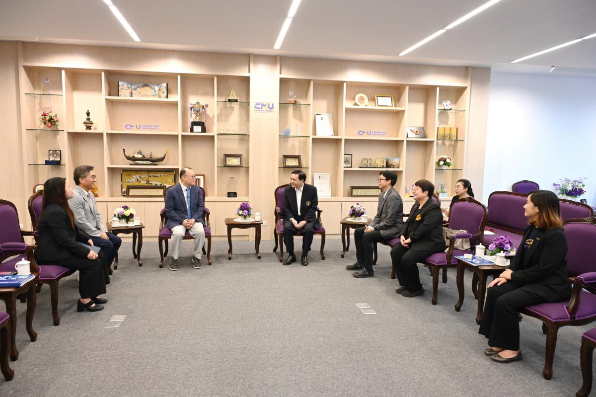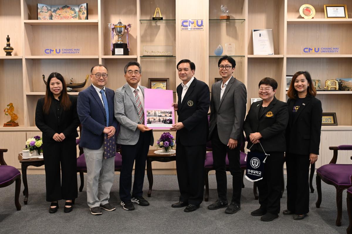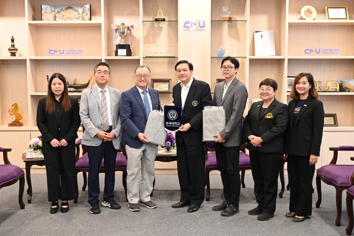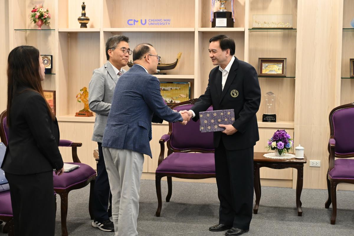 ศาสตราจารย์ปฏิบัติ ดร.ชรินทร์ เตชะพันธุ์ รองอธิการบดี พร้อมด้วยคณะผู้บริหารมหาวิทยาลัยเชียงใหม่ ให้การต้อนรับ Prof. Youn Suk Lee และ Prof. Jongchul Seo จาก Department of Packaging & Logistics, Yonsei University ประเทศเกาหลีใต้ ในโอกาสที่มาเยี่ยมเยือนมหาวิทยาลัยเชียงใหม่ เพื่อปรึกษาหารือและแลกเปลี่ยนข้อคิดเห็น เกี่ยวกับโครงการความร่วมมือทางวิชาการ ณ ห้องรับรอง หม่อมหลวงปิ่น มาลากุล อาคารสำนักงานมหาวิทยาลัย 1 มหาวิทยาลัยเชียงใหม่ วันพุธที่ 17 ธันวาคม พ.ศ. 2568