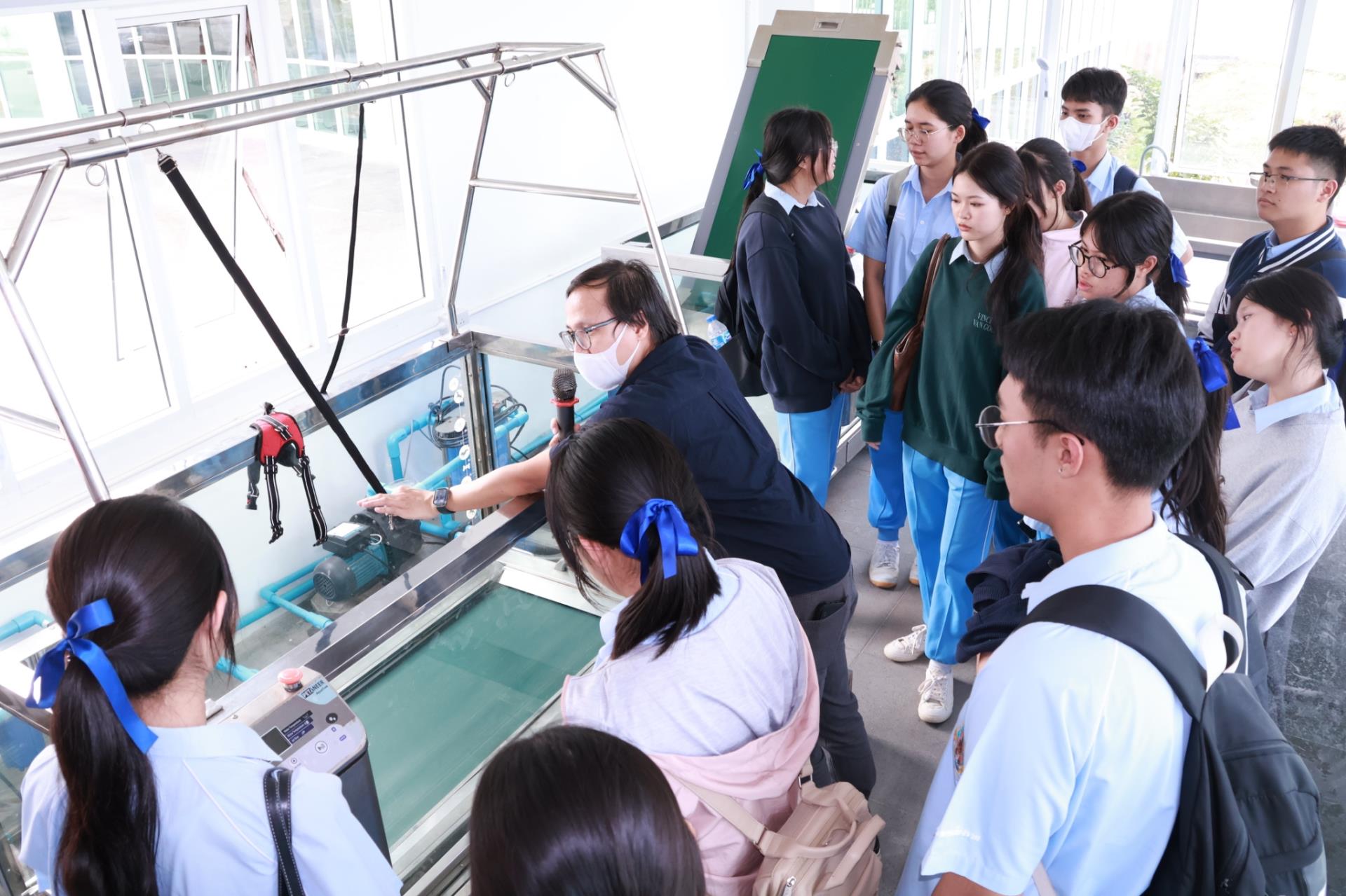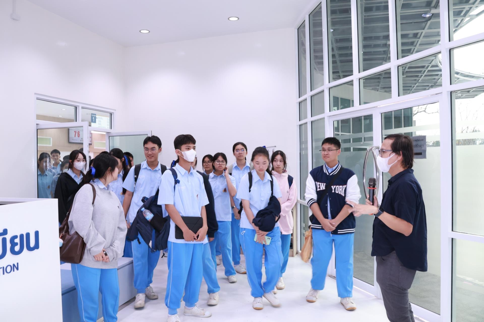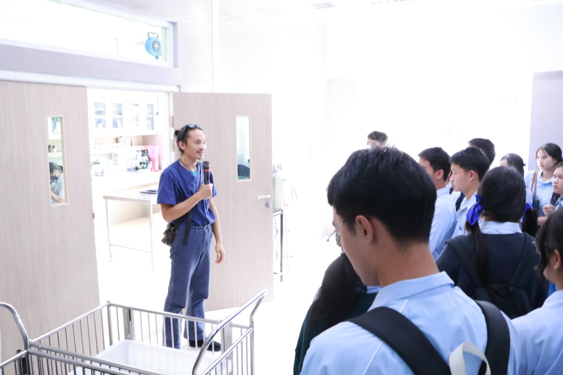 ในโอกาสนี้ ผศ. ดร. น.สพ.อติกันต์ ทองทาบ รองคณบดีฝ่ายศูนย์ความเป็นเลิศทางคลินิกและการศึกษาหลังปริญญา ให้เกียรตินำคณะนักเรียนเยี่ยมชม ศูนย์การเรียนรู้และส่งเสริมสุขภาพทางสัตวแพทย์ภาคเหนือ (NOVEL CMU) พร้อมทั้งเข้าร่วมกิจกรรมเยี่ยมชมแหล่งเรียนรู้สำคัญภายในคณะฯ ได้แก่ ห้องปฏิบัติการกายวิภาคศาสตร์ ซึ่งเป็นพื้นที่ที่ใช้ในการเรียนการสอนและฝึกปฏิบัติของนักศึกษาสัตวแพทย์ และพิพิธภัณฑ์กายวิภาคและพยาธิวิทยาทางสัตวแพทย์ การเยี่ยมชมครั้งนี้เปิดโอกาสให้นักเรียนได้สัมผัสบรรยากาศการเรียนรู้ด้านสัตวแพทยศาสตร์จากสถานที่จริง ช่วยเสริมสร้างความเข้าใจเกี่ยวกับวิชาชีพสัตวแพทย์ และเป็นแรงบันดาลใจให้กับผู้ที่สนใจศึกษาต่อในสาขานี้ในอนาคต
