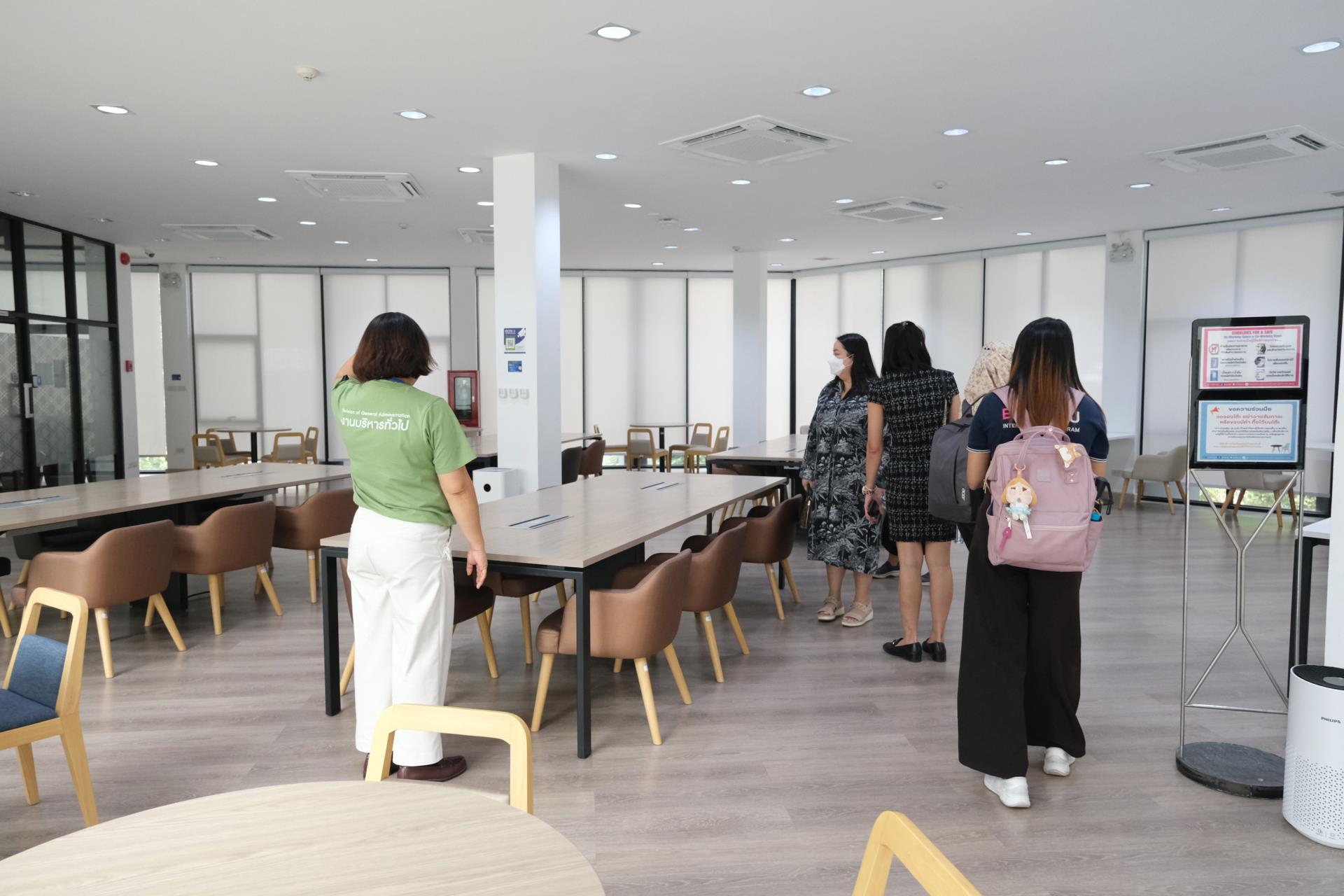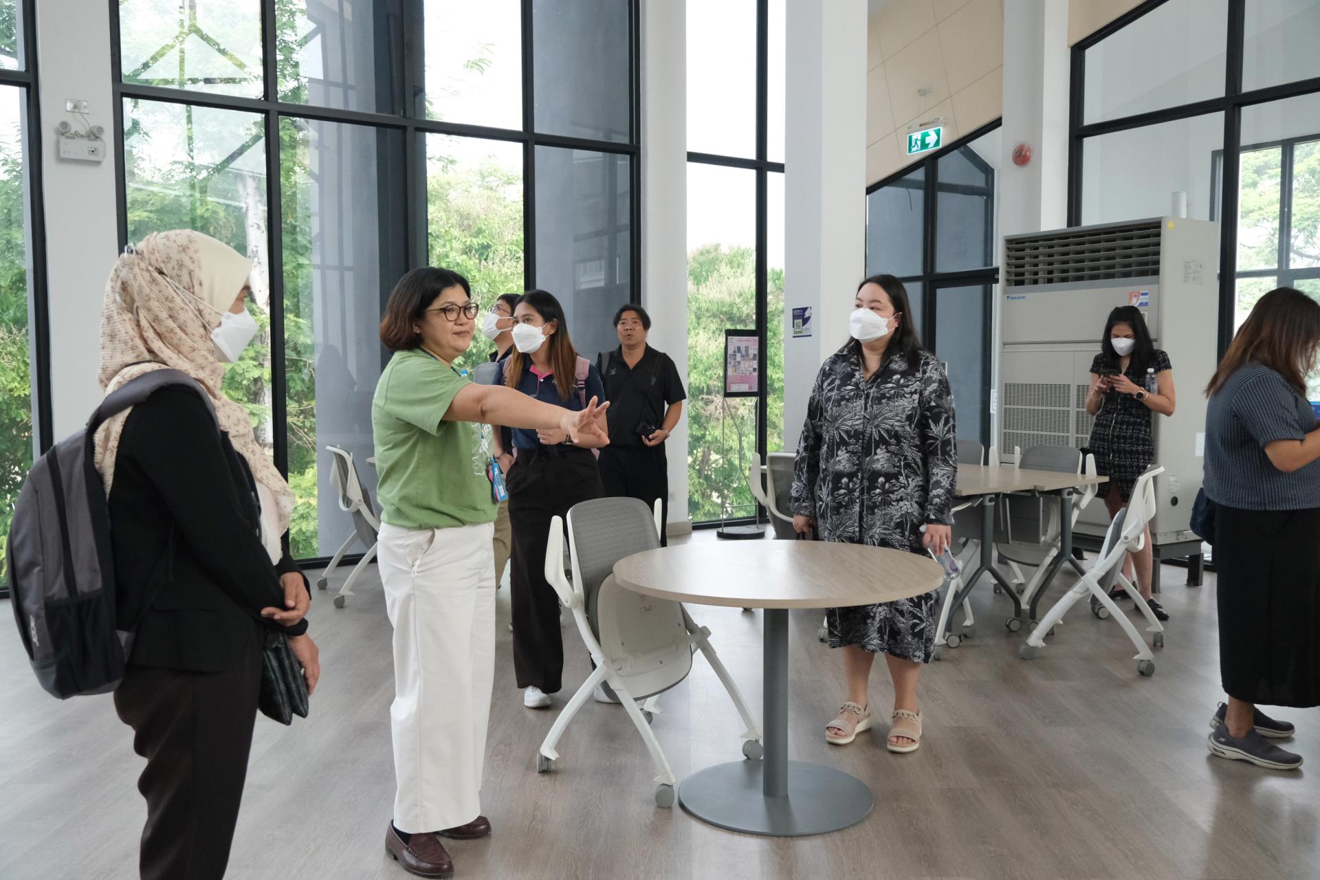 ทั้งนี้ ในช่วงท้าย ยังได้นำคณะศึกษาดูงานเยี่ยมชมพื้นที่และสิ่งอำนวยความสะดวกสำหรับนักศึกษา อาทิ ห้องประชุม ห้องสมุด และพื้นที่ Co-working Space ซึ่งสะท้อนถึงการจัดสภาพแวดล้อมที่เอื้อต่อการเรียนรู้ และเป็นกลไกสำคัญในการยกระดับคุณภาพการศึกษาสู่มาตรฐานนานาชาติ