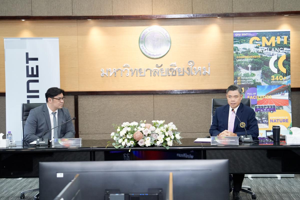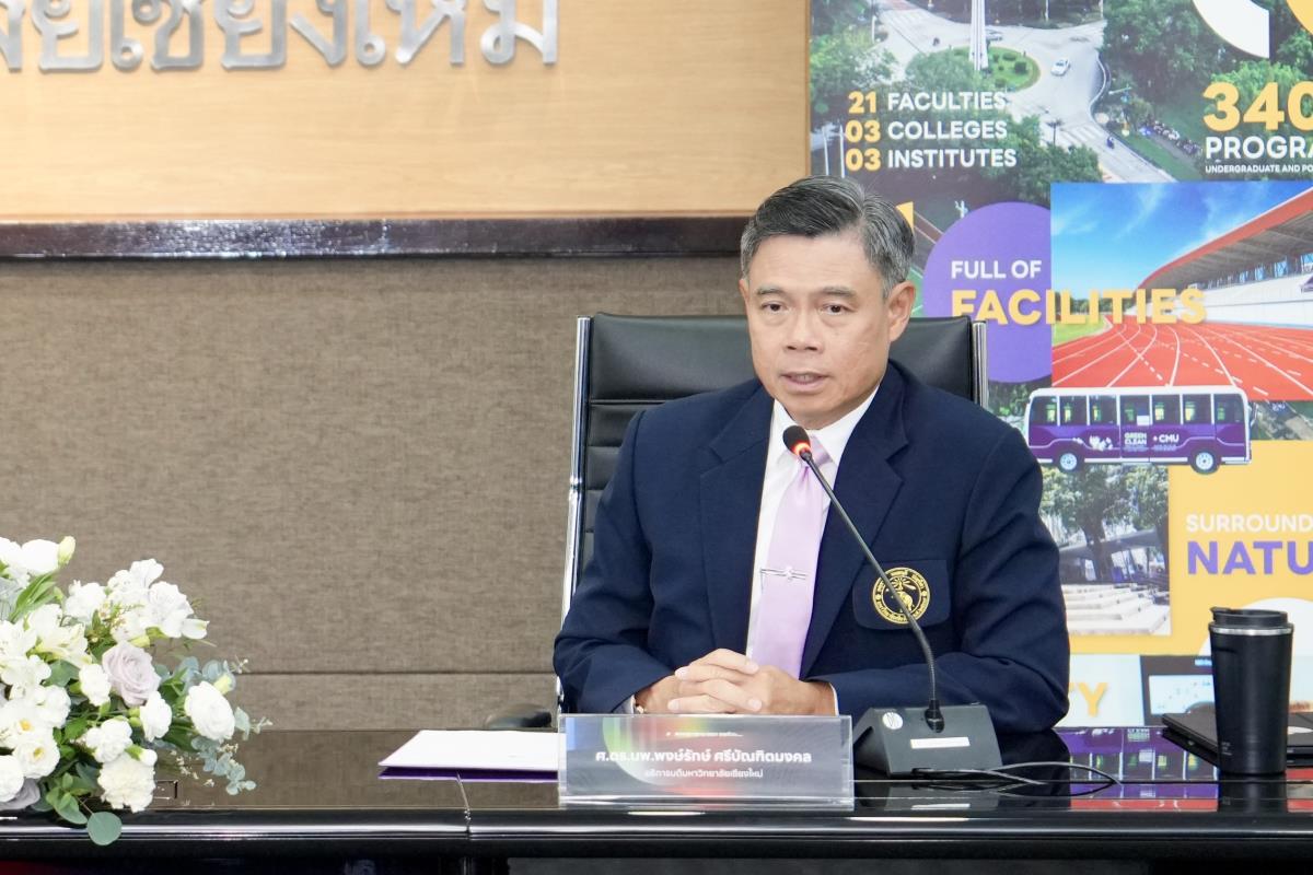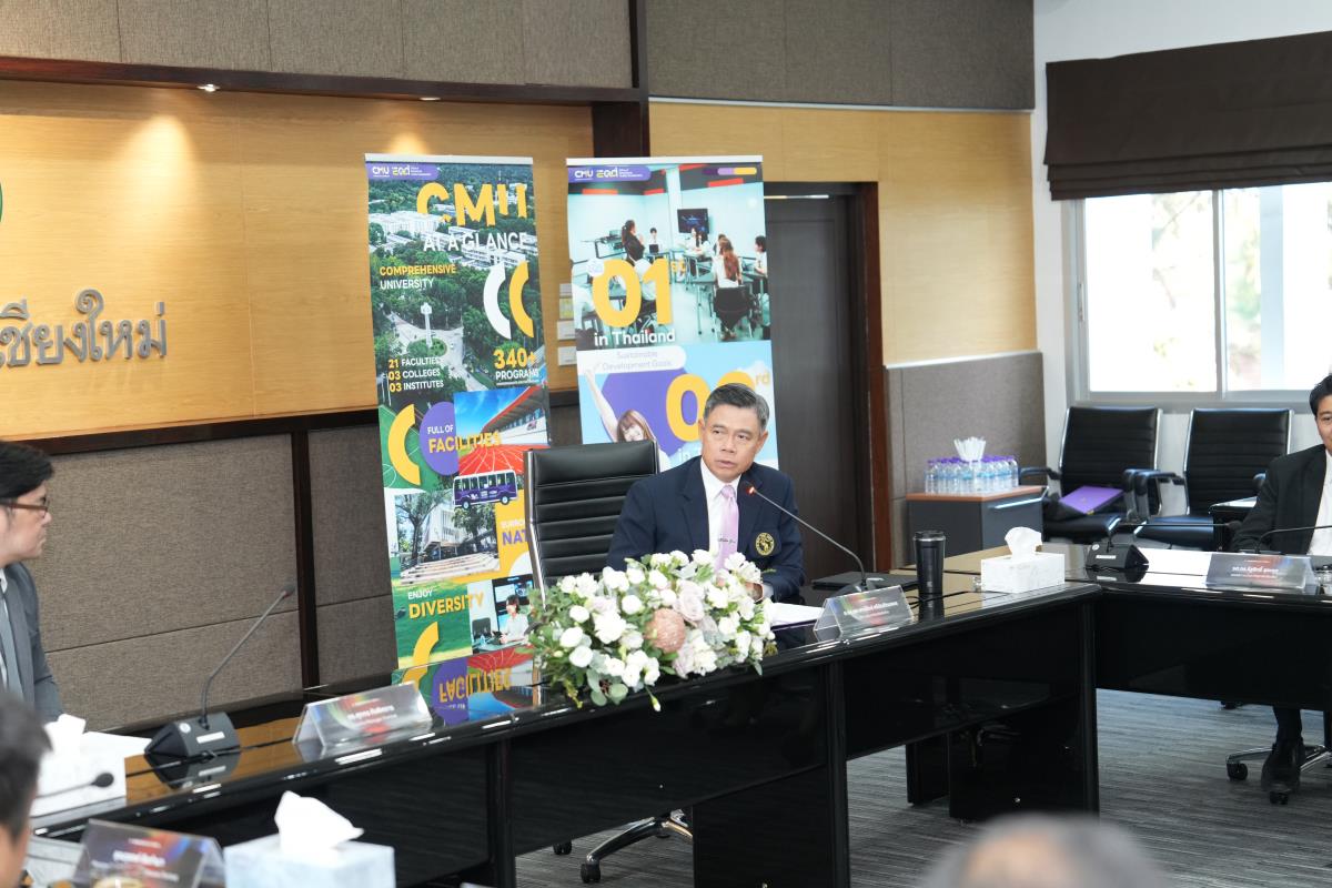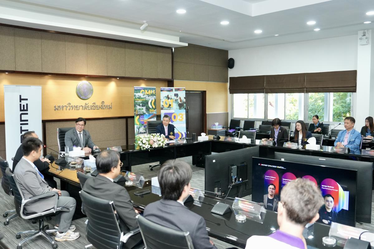 ศาสตราจารย์ ดร.นายแพทย์พงษ์รักษ์ ศรีบัณฑิตมงคล อธิการบดีมหาวิทยาลัยเชียงใหม่ ให้การต้อนรับ ดร.ศุภกร กังพิศดาร Country Manager บริษัท ฟอร์ทิเนท ซีเคียวริตี้ เน็ทเวิร์ค (ประเทศไทย) จำกัด และคณะฯ ในโอกาสที่ร่วมพิธีลงนามบันทึกข้อตกลงความร่วมมือทางวิชาการ (MOU) ระหว่าง มหาวิทยาลัยเชียงใหม่ กับ บริษัท ฟอร์ทิเนท ซีเคียวริตี้ เน็ทเวิร์ค (ประเทศไทย) จำกัด เพื่อเป็นพันธมิตรทางวิชาการ (Academic Partner) ภายใต้หลักสูตร Fortinet Network Security Expert (NSE) เพื่อยกระดับองค์ความรู้และทักษะด้านความมั่นคงปลอดภัยไซเบอร์ให้แก่นักศึกษาและบุคลากร ณ ห้องประชุมบัวเรศ คำทอง สำนักงานมหาวิทยาลัย มหาวิทยาลัยเชียงใหม่ เมื่อวันพุธที่ 22 ตุลาคม 2568