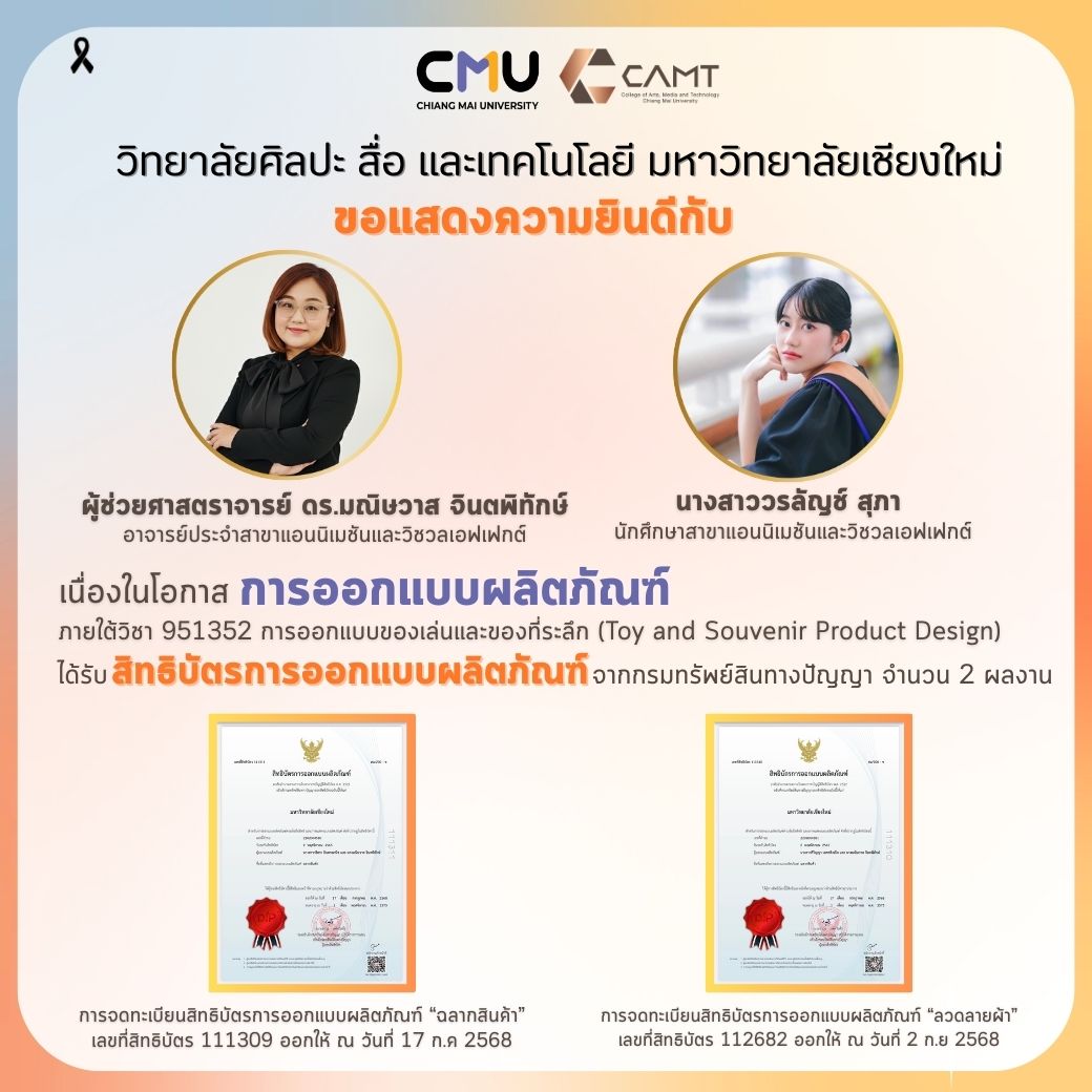 วิทยาลัยศิลปะ สื่อ และเทคโนโลยี มหาวิทยาลัยเชียงใหม่ ขอแสดงความยินดีกับ