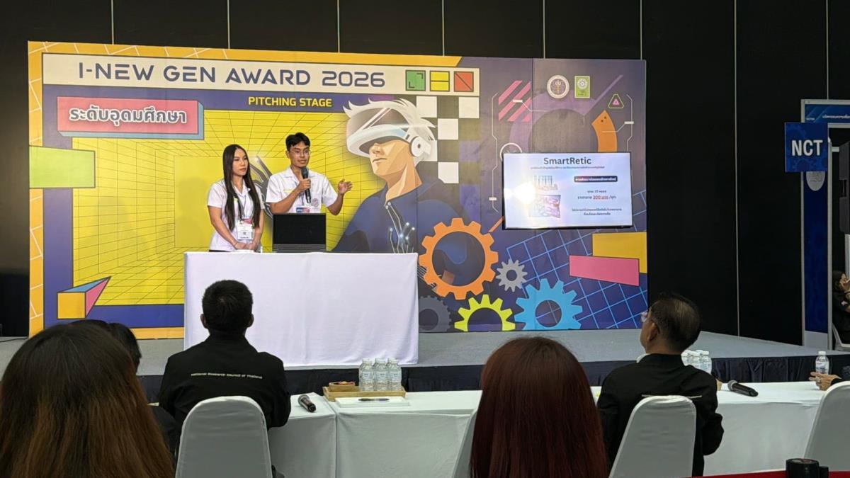 นายระพีพล โภชนาธาร นางสาวพลอยนภัส พิสิฐพิพัฒนา และนางสาวอมรลัคขณา อ่อนใย นักศึกษาชั้นปีที่ 4 สาขาเทคนิคการแพทย์ คณะเทคนิคการแพทย์ มหาวิทยาลัยเชียงใหม่ คว้ารางวัลเหรียญทอง I-NEW GEN AWARD 2026 ระดับอุดมศึกษา ด้านสุขภาพและการแพทย์ จากการนำเสนอผลงานนวัตกรรม “SmartRetic: ชุดสีย้อมสำเร็จรูปพร้อมใช้งานและโปรแกรมตรวจนับจำนวนเรติคูโลไซต์ (SmartRetic: Ready-to-Use Staining Kit with Reticulocyte Counting Software)” โดยผลงานดังกล่าวเป็นผลงานภาคนิพนธ์ภายใต้การดูแลของ รองศาสตราจารย์ ดร.สุวิทย์ ด้วงมะโน อาจารย์ประจำภาควิชาเทคนิคการแพทย์ และ ผู้ช่วยศาสตราจารย์ ดร.กิตติชัย วรรธนะจิตติกุล อาจารย์ประจำภาควิชารังสีเทคนิค คณะเทคนิคการแทพย์ มหาวิทยาลัยเชียงใหม่ การแข่งขันครั้งนี้จัดขึ้นระหว่างวันที่ 5 – 9 มกราคม 2569 ณ ศูนย์นิทรรศการและการประชุมไบเทค บางนา กรุงเทพฯ