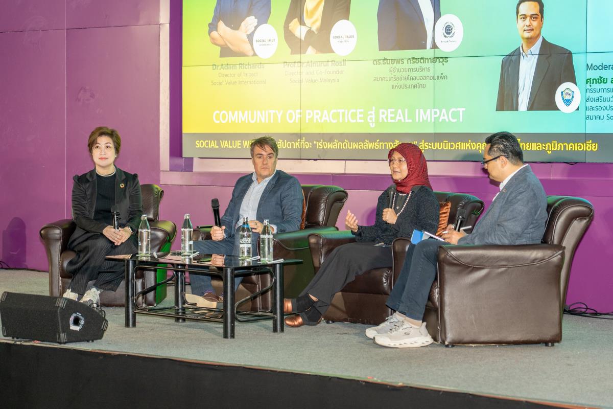 ภายในงานได้รับเกียรติจาก ดร.อำพล อาภารมณ์กร ประธานกรรมการสมาคมผู้ประเมินคุณค่าทางสังคมไทย กล่าวเปิดงาน พร้อมด้วยผู้แทนองค์กรระดับนานาชาติและระดับประเทศเข้าร่วมเสวนาในหัวข้อสำคัญ “ขับเคลื่อนเอเชียสู่การกำหนดทิศทางการเปลี่ยนแปลงระดับโลก (Asia and Beyond: Shaping the Global Social Value Agenda)” โดยมีผู้ร่วมบรรยาย ได้แก่