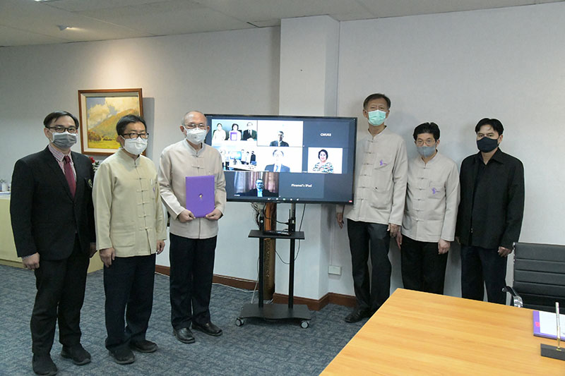 เมื่อวันพฤหัสบดีที่ 24 มิถุนายน พ.ศ. 2564 ณ ห้องประชุม 202 สำนักบริการเทคโนโลยีสารสนเทศ มหาวิทยาลัยเชียงใหม่ จัดพิธีลงนามในข้อตกลงทางวิชาการระหว่างมหาวิทยาลัยเชียงใหม่ กับ มูลนิธิสถาบันวิจัยและพัฒนาเศรษฐกิจการพาณิชย์ พัฒนาวิชาการ แบบออนไลน์ โดยมี ศาสตราจารย์คลินิก นพ.นิเวศน์ นันทจิต อธิการบดีมหาวิทยาลัยเชียงใหม่ พร้อมด้วย รองศาสตราจารย์ ดร.สัมพันธ์ สิงหราชวราพันธ์