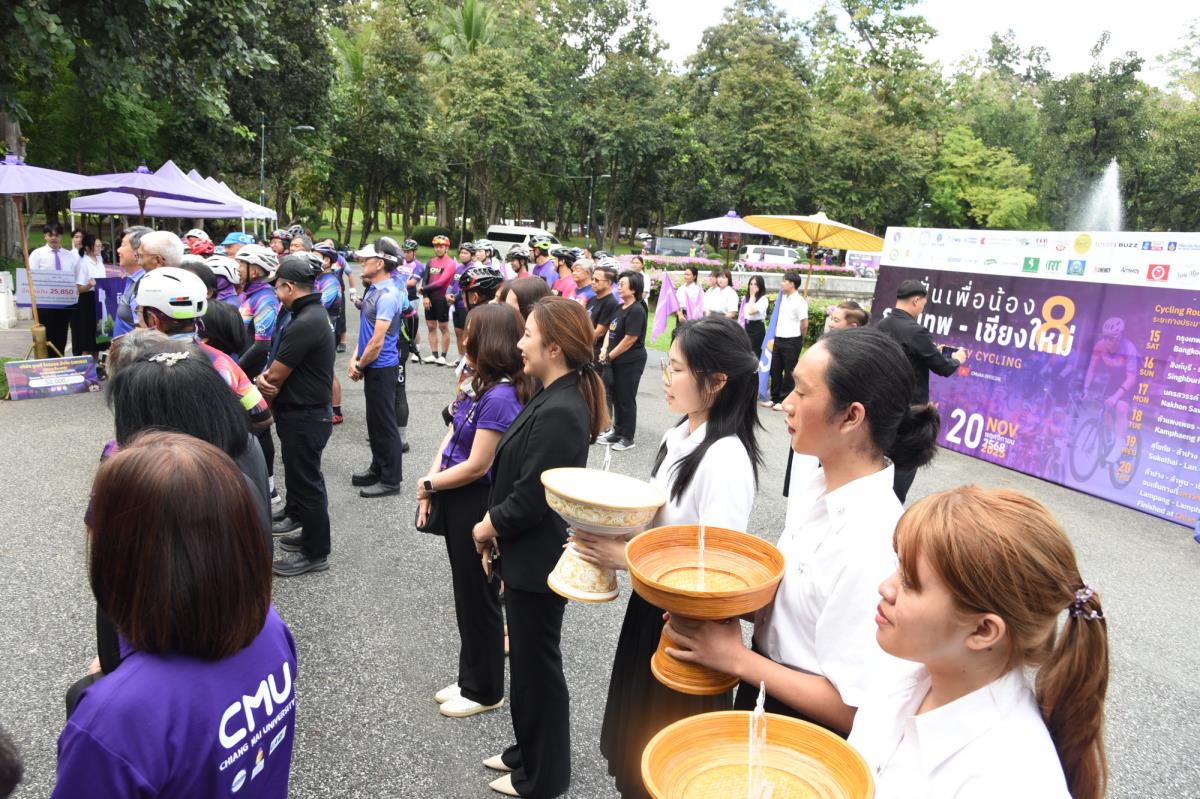 ผู้ช่วยศาสตราจารย์ ดร.ปิติพงษ์ ยอดมงคล รองอธิการบดี ผู้แทนอธิการบดี พร้อมด้วยคณะผู้บริหาร คณะกรรมการสมาคมนักศึกษาเก่า มหาวิทยาลัยเชียงใหม่ ต้อนรับขบวนจักรยาน ที่เดินทางมาถึงยังศาลาธรรม มหาวิทยาลัยเชียงใหม่ ในกิจกรรม ปั่นเพื่อน้อง กรุงเทพฯ - เชียงใหม่ ครั้งที่ 8 ซึ่งมหาวิทยาลัยเชียงใหม่ ร่วมกับ สมาคมนักศึกษาเก่ามหาวิทยาลัยเชียงใหม่จัดกิจกรรมการกุศลขึ้น ในระหว่างวันที่ 15-20 พฤศจิกายน 2568 เส้นทางปั่นเริ่มต้นกรุงเทพมหานครจังหวัดปทุมธานี อยุธยา สิงห์บุรี ชัยนาท อุทัยธานี นครสวรรค์ กำแพงเพชร สุโขทัย ลำปาง ลำพูน และเชียงใหม่ เป็นระยะทางประมาณ 850 กิโลเมตร รวมระยะเวลาปั่นจักรยาน 5 คืน 6 วัน เพื่อรับบริจาคเงินทุนการศึกษาแก่นักศึกษาที่ขาดแคลนทุนทรัพย์ สนับสนุนโครงการเด็กกำพร้าวัดดอนจั่น จังหวัดเชียงใหม่ มูลนิธิธรรมิกชนเพื่อคนตาบอดในประเทศไทย ในพระบรมราชูปถัมภ์ นักศึกษามหาวิทยาลัยเชียงใหม่ที่ขาดแคลนทุนทรัพย์ อีกทั้งยังเป็นการรณรงค์ให้ประชาชนตระหนักถึงความสำคัญของการออกกำลังกาย รณรงค์ปลูกจิตสำนึกด้านสิ่งแวดล้อม ส่งเสริมการใช้จักรยานเพื่อลดมลภาวะ PM 2.5 ส่งเสริมจิตสาธารณะและการทำความดีเพื่อสังคมผ่านกิจกรรมปั่นจักรยานทางไกล ณ ศาลาธรรม มหาวิทยาลัยเชียงใหม่ วันพฤหัสบดีที่ 20 พฤศจิกายน พ.ศ. 2568