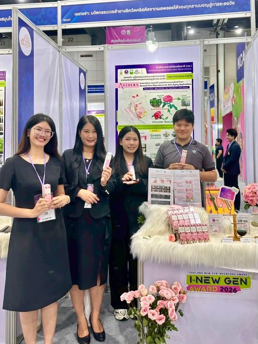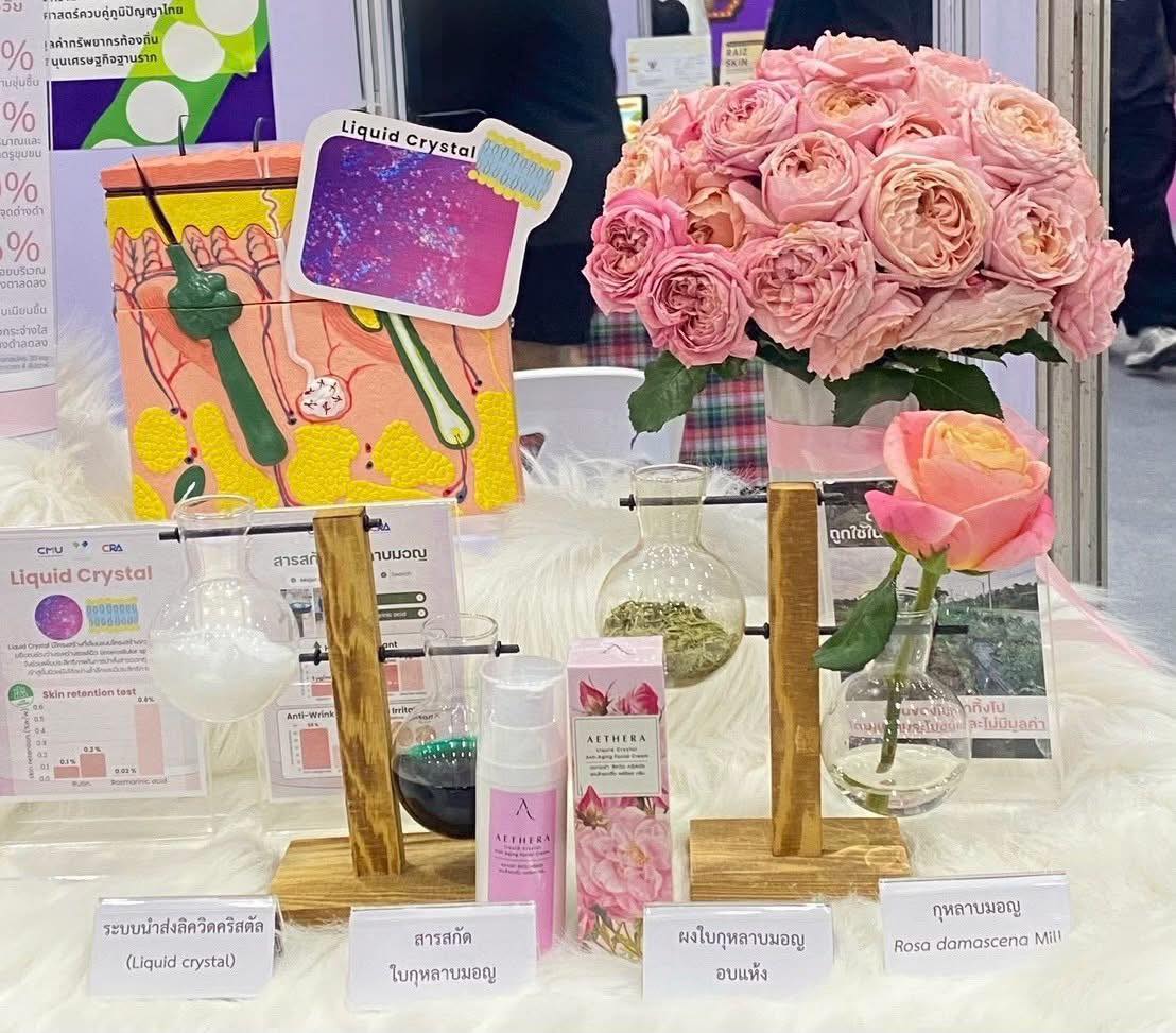 ผลงาน “นวัตกรรมเวชสำอางลิควิดคริสตัลจากผลพลอยได้ของกุหลาบมอญสู่การชะลอวัย”