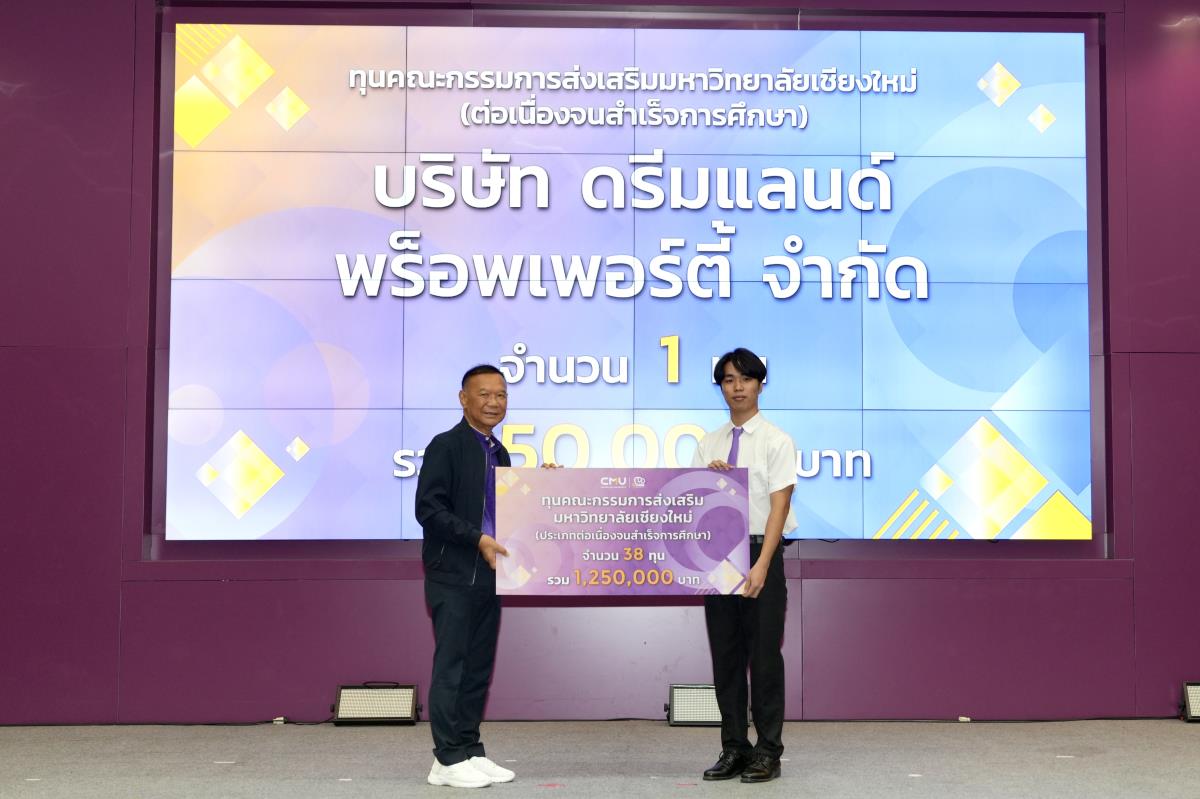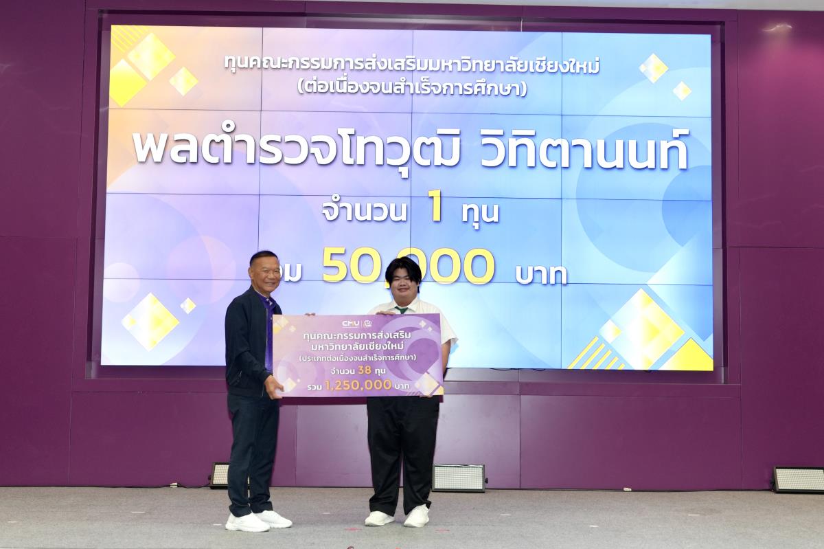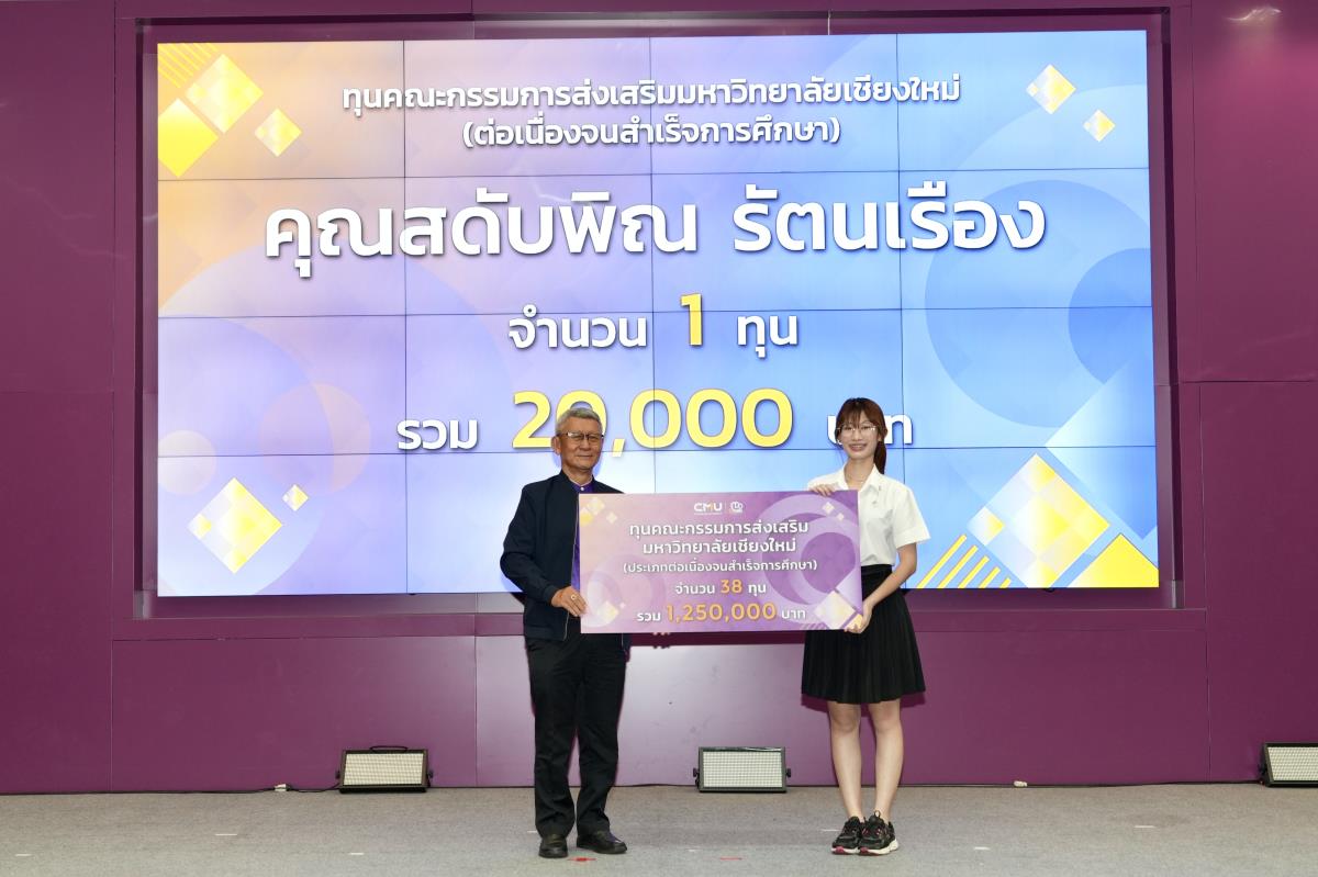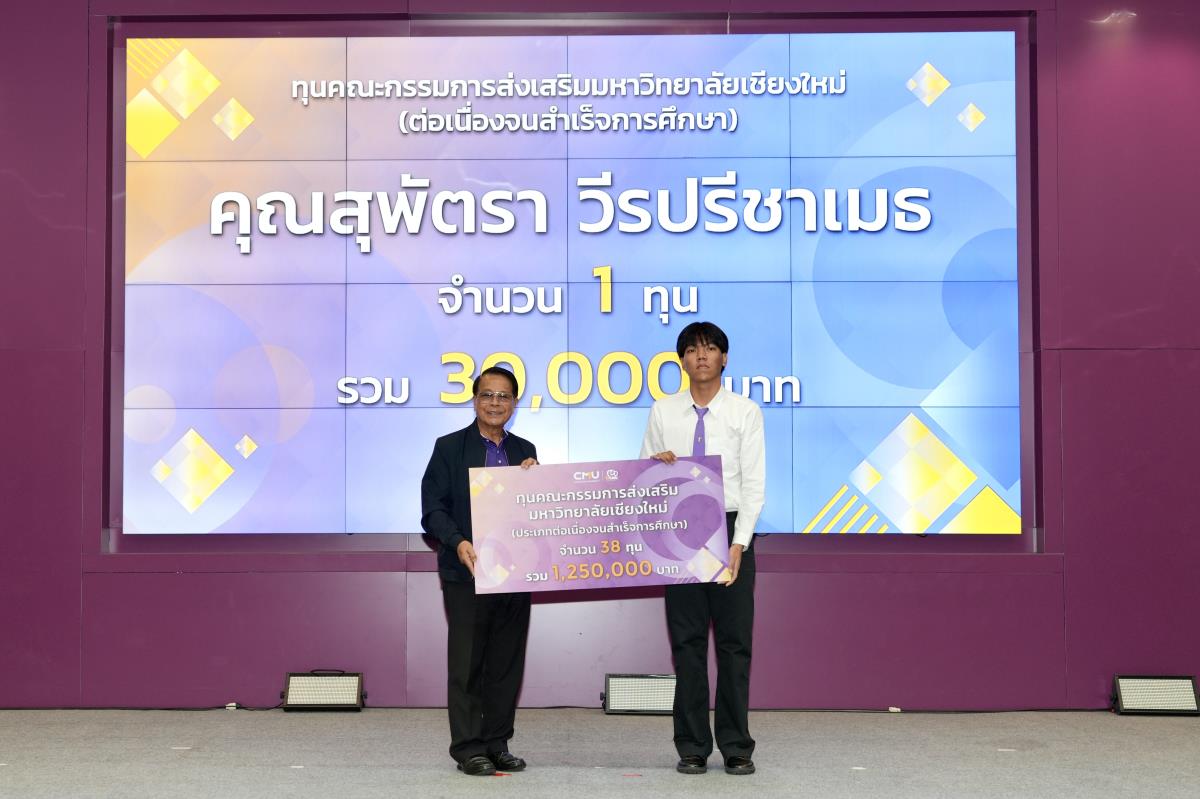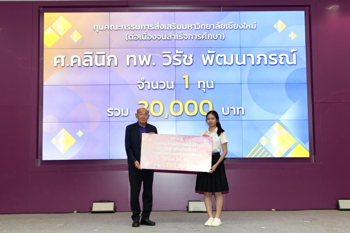 โดยมีศาสตราจารย์ ดร.นพ.พงษ์รักษ์ ศรีบัณฑิตมงคล อธิการบดีมหาวิทยาลัยเชียงใหม่ เป็นผู้แทนในการมอบทุนฯ และกล่าวแสดงความยินดี คุณนารีรัตน์ จันทรมังกร ประธานกรรมการส่งเสริมมหาวิทยาลัยเชียงใหม่ กล่าวให้โอวาท รองศาสตราจารย์ประเสริฐ ฤกษ์เกรียงไกร รองอธิการบดีมหาวิทยาลัยเชียงใหม่ กล่าวรายงาน พร้อมด้วยคณะผู้บริหาร คณะกรรมการส่งเสริมมหาวิทยาลัยเชียงใหม่ ผู้แทนจากหน่วยงาน องค์กรต่างๆ คณาจารย์ เจ้าหน้าที่ ร่วมมอบทุนการศึกษา ณ ห้องทองกวาว สำนักบริการวิชาการ มหาวิทยาลัยเชียงใหม่ เมื่อวันอาทิตย์ที่ 28 กันยายน พ.ศ.2568