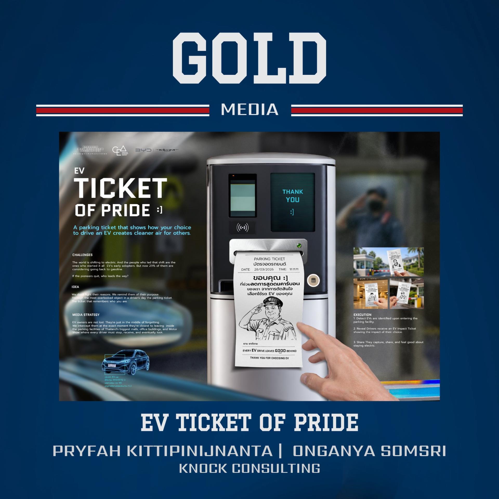 3. สาขามีเดีย (Media) - ผลงาน EV Ticket of Pride โดย นางสาวปรายฟ้า กิตติพินิจนันท และนางสาวอรกัญญา สมศรี จาก Knock Consulting