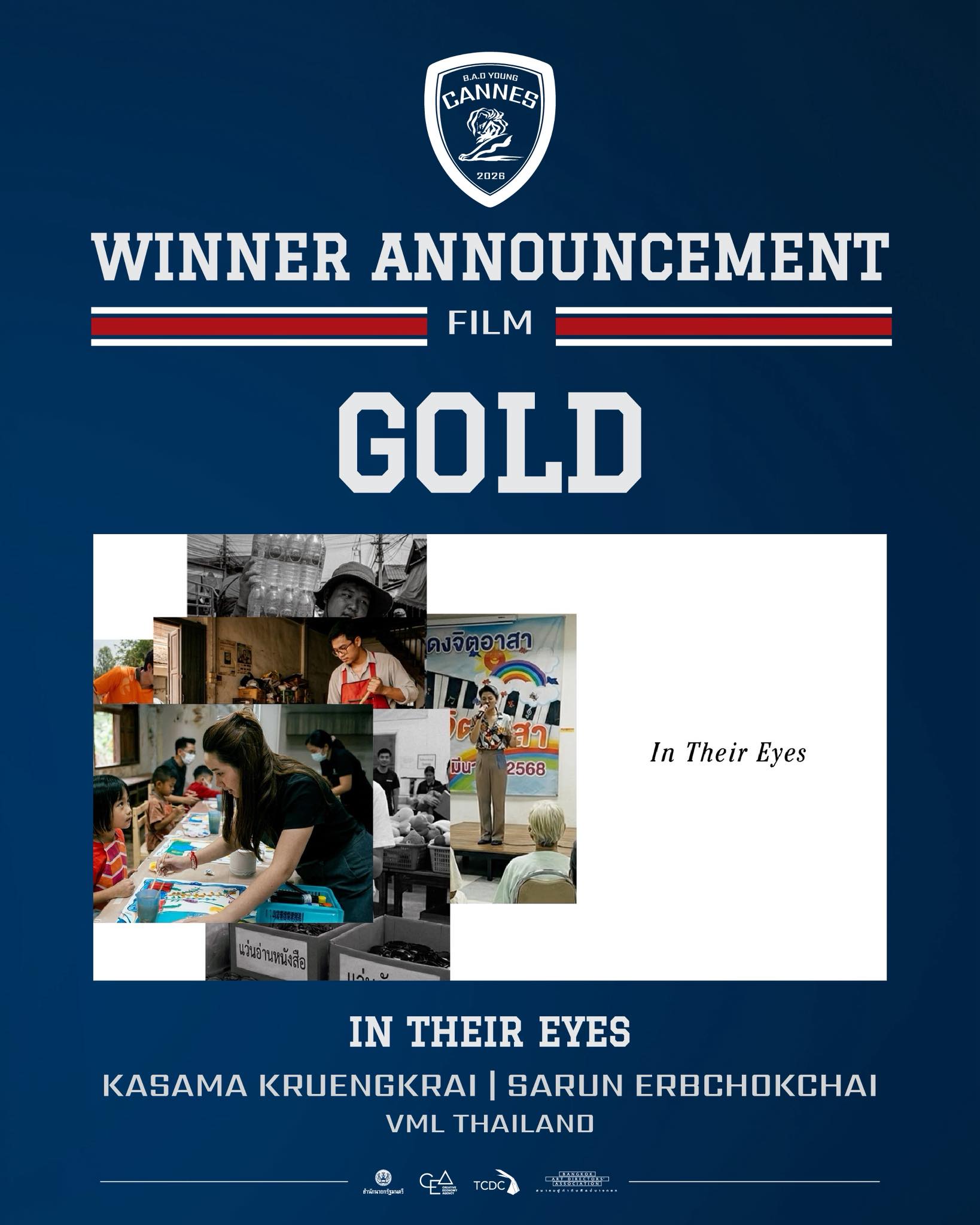 การประกวด B.A.D Young Cannes Competition Thailand 2026 จัดขึ้นโดยสำนักงานส่งเสริมเศรษฐกิจสร้างสรรค์ (องค์การมหาชน) ร่วมกับสมาคมผู้กำกับศิลป์บางกอก (Bangkok Art Directors’ Association: B.A.D) ภายใต้แนวคิด “Fight for Thai Jersey - Revenge of the Thai Kids” เพื่อเฟ้นหาสุดยอดครีเอทีฟรุ่นใหม่จากทั่วประเทศ โดยในปีนี้มีผู้สมัครเข้าร่วมแข่งขันรวม 87 ทีม ครอบคลุม 6 สาขา ได้แก่ Film, Digital, Media, Print, Design และ Public Relations โดยผู้ได้รับรางวัลและชื่อผลงานที่ได้รับรางวัล 6 สาขา ได้แก่