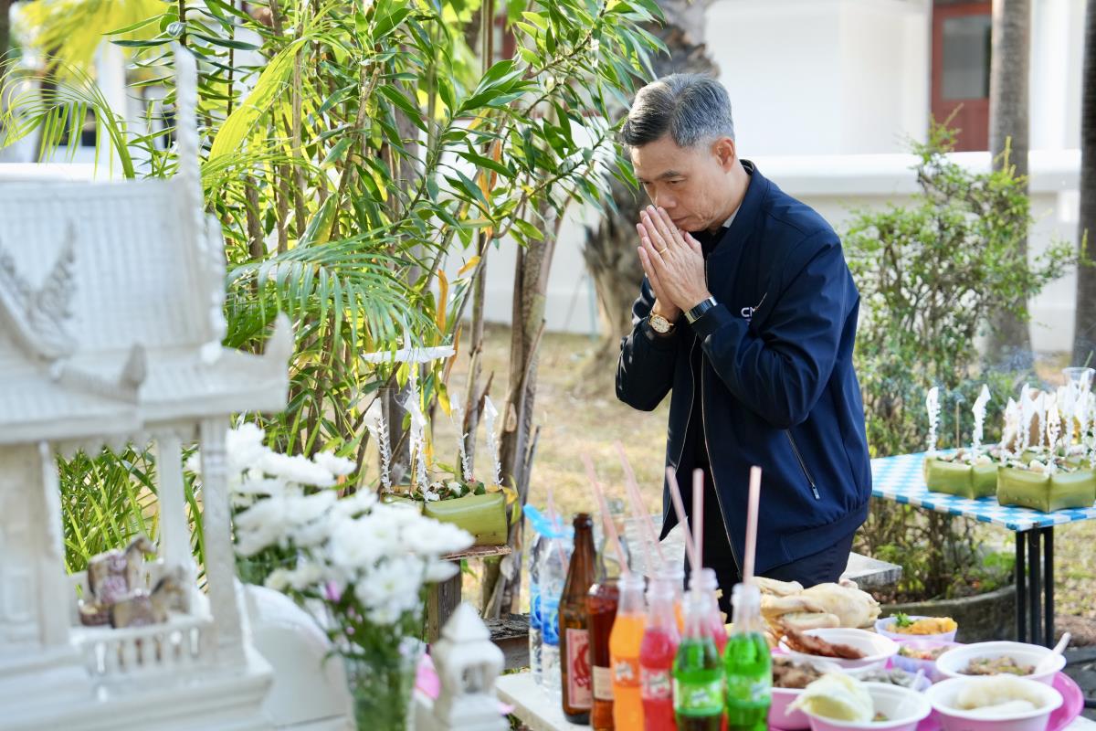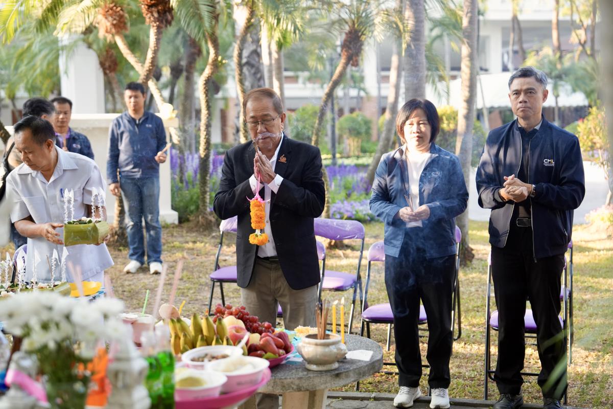 ศาสตราจารย์ ดร.นายแพทย์พงษ์รักษ์ ศรีบัณฑิตมงคล อธิการบดีมหาวิทยาลัยเชียงใหม่ ประธานประกอบพิธีสักการะศาลพระภูมิประจำหอประชุมมหาวิทยาลัยเชียงใหม่ เนื่องในโอกาสพิธีพระราชทานปริญญาบัตร ครั้งที่ 60 โดยมีคณะผู้บริหาร คณาจารย์ เจ้าหน้าที่ ร่วมพิธี ณ หอประชุมมหาวิทยาลัยเชียงใหม่ เมื่อวันพฤหัสบดีที่ 15 มกราคม พ.ศ. 2569