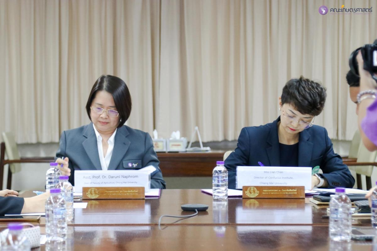ผู้ช่วยศาสตราจารย์ ดร.ดรุณี นาพรหม คณบดีคณะเกษตรศาสตร์ ร่วมพิธีลงนามบันทึกข้อตกลงความร่วมมือ (MOA) ระหว่างสถาบันขงจื่อ มหาวิทยาลัยเชียงใหม่ และคณะเกษตรศาสตร์ มหาวิทยาลัยเชียงใหม่ โดยมีวัตถุประสงค์เพื่อสร้างความร่วมมือทางวิชาการ ในการร่วมบริหารจัดการหลักสูตรในระดับปริญญาโท หลักสูตรสาขาวิชาเศรษฐศาสตรเชิงบูรณาการเพื่อการจัดการธุรกิจเกษตรและทรัพยากรอย่างยั่งยืน และจัดกิจกรรมทางวิชาการต่าง ๆ อาทิ การจัดอบรม สัมมนา และทัศนศึกษาดูงาน ในด้านเศรษฐศาสตร์เกษตรและการจัดการธุรกิจเกษตรของประเทศไทยและสาธารณรัฐประชาชนจีน เพื่อผลิตบัณฑิตที่มีความรู้ ความสามารถ และทักษะในการวิเคราะห์ปัญหา ตลอดจนการวางแผนและจัดการ และมีความชำนาญในการใช้เทคโนโลยีสารสนเทศในยุคเศรษฐกิจดิจิทัล เพื่อแก้ปัญหาภาคเกษตรและสร้างอาชีพธุรกิจเกษตรสีเขียวที่แข่งขันได้ภายใต้บริบททางธุรกิจที่เปลี่ยนแปลงไป ซึ่งสถาบันขงจื่อ มหาวิทยาลัยเชียงใหม่ จะให้การสนับสนุนการประชาสัมพันธ์หลักสูตร รับสมัคร และคัดเลือกผู้สนใจศึกษาจากสาธารณรัฐประชาชนจีนในเดือนกุมภาพันธ์ พ.ศ. 2567 โดยมีผู้ช่วยศาสตราจารย์ ดร.จิรวรรณ กิจชัยเจริญ หัวหน้าภาควิชาพัฒนาเศรษฐกิจการเกษตร พร้อมด้วยประธานและกรรมการบริหารหลักสูตรของภาควิชาพัฒนาเศรษฐกิจการเกษตร คณะเกษตรศาสตร์ มหาวิทยาลัยเชียงใหม่ ร่วมเป็นสักขีพยานในพิธีลงนาม เมื่อวันอังคารที่ 23 มกราคม 2567 เวลา 09.00 น. ณ ห้องประชุมพงษ์ศักดิ์ อังกสิทธิ์ คณะเกษตรศาสตร์ มหาวิทยาลัยเชียงใหม่