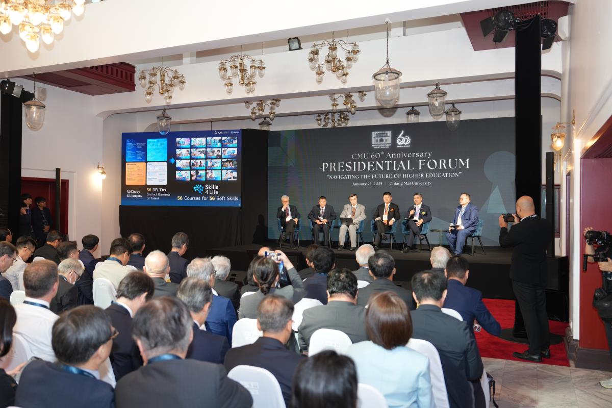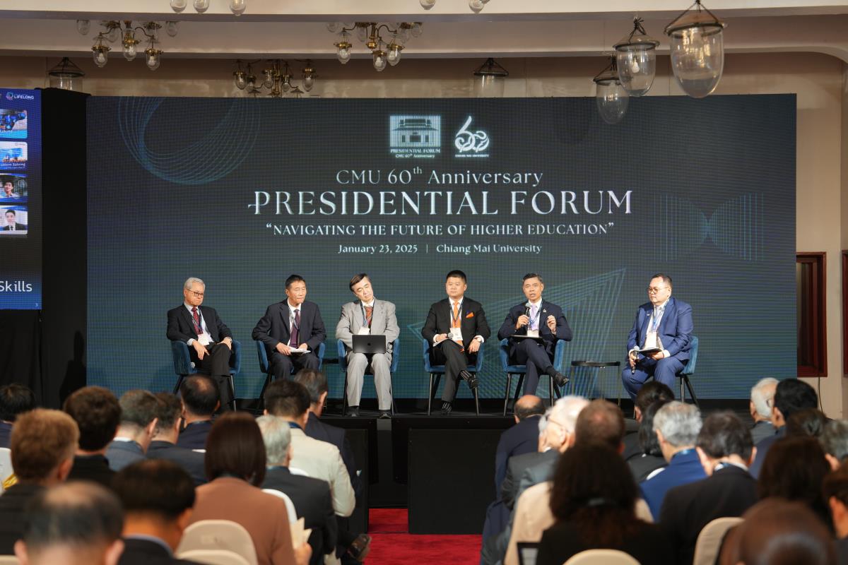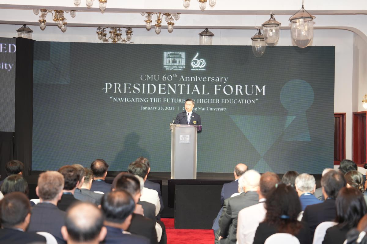 มหาวิทยาลัยเชียงใหม่เป็นเจ้าภาพจัดการประชุม Presidential Forum เนื่องในโอกาสครบรอบ 60 ปี ภายใต้แนวคิด "การขับเคลื่อนอนาคตอุดมศึกษา" การประชุมนี้จะเป็นเวทีสำหรับอธิการบดี รองอธิการบดี คณบดี และผู้นำทางวิชาการในการหารือเกี่ยวกับความท้าทายที่สำคัญและโอกาสการเปลี่ยนแปลงในระดับอุดมศึกษา ท่ามกลางความก้าวหน้าทางเทคโนโลยีที่รวดเร็ว และการพัฒนากระบวนทัศน์ทางการศึกษา การประชุมครั้งนี้มีวัตถุประสงค์เพื่อส่งเสริมเครือข่ายนานาชาติ ระหว่างสถาบันอุดมศึกษา ชั้นนำทั่วโลก หัวข้อสำคัญที่นำมาหารือ ได้แก่ ทักษะในอนาคตและการเรียนรู้ตลอดชีวิต, การเปลี่ยนแปลงการศึกษาในยุคดิจิทัล, การเชื่อมโยงความรู้และการดำเนินการสำหรับ SDGs, ระบบนิเวศนวัตกรรมและวิสาหกิจในมหาวิทยาลัย ซึ่งเป็นการตอกย้ำถึงความมุ่งมั่นของมหาวิทยาลัยเชียงใหม่ในการพัฒนาและนวัตกรรมอย่างยั่งยืนในระดับนานาชาติ และบทบาทของมหาวิทยาลัยเชียงใหม่ในฐานะศูนย์กลางแห่งความรู้และความคิดสร้างสรรค์ที่มีคุณค่า