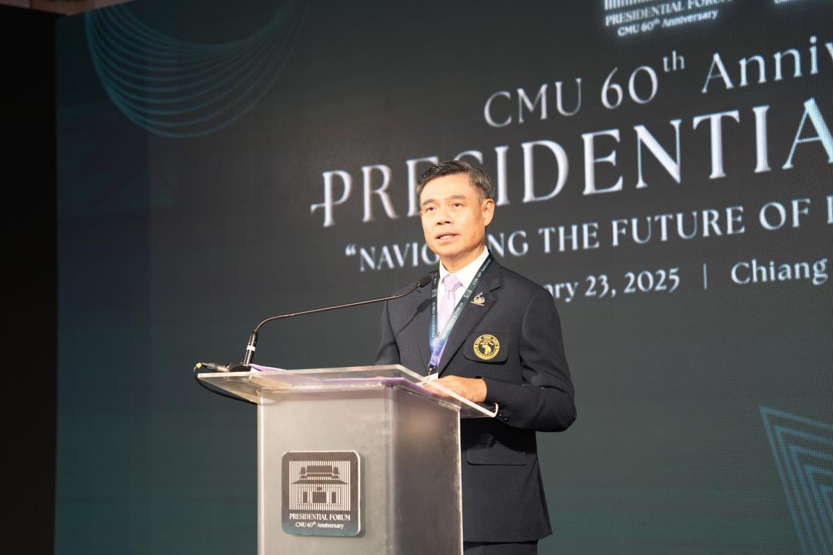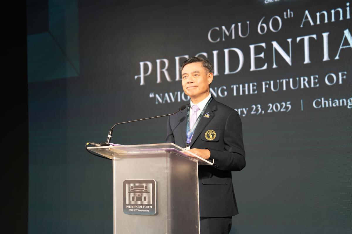 ศาสตราจารย์ ดร.นายแพทย์พงษ์รักษ์ ศรีบัณฑิตมงคล อธิการบดีมหาวิทยาลัยเชียงใหม่ กล่าวต้อนรับอธิการบดี และผู้แทน จาก 36 มหาวิทยาลัยพันธมิตรต่างประเทศที่เดินทางมาร่วมงานเสวนาทางวิชาการ Presidential Forum ภายใต้หัวข้อ “Navigating the Future of Higher Education เนื่องในโอกาสพิเศษในวันคล้ายวันสถาปนามหาวิทยาลัยเชียงใหม่ครบรอบ 60 ปี (The 60th Anniversary Celebration of CMU) เมื่อวันที่ 23 มกราคม 2568 ณ ศาลาธรรม มหาวิทยาลัยเชียงใหม่ ซึ่งเป็นอีกหนึ่งหน้าประวัติศาสตร์ 6 ทศวรรษ ที่พร้อมจะก้าวสู่ทศวรรษที่ 7 ของมหาวิทยาลัย เพื่อเป้าหมายการพัฒนาที่ยั่งยืนและสร้างสรรค์นวัตกรรมอันจะเป็นประโยชน์ในระดับสากลพร้อมทั้งสานต่อการพัฒนามหาวิทยาลัยเชียงใหม่ให้เป็นแหล่งความรู้และสร้างนวัตกรรมที่ทรงคุณค่า