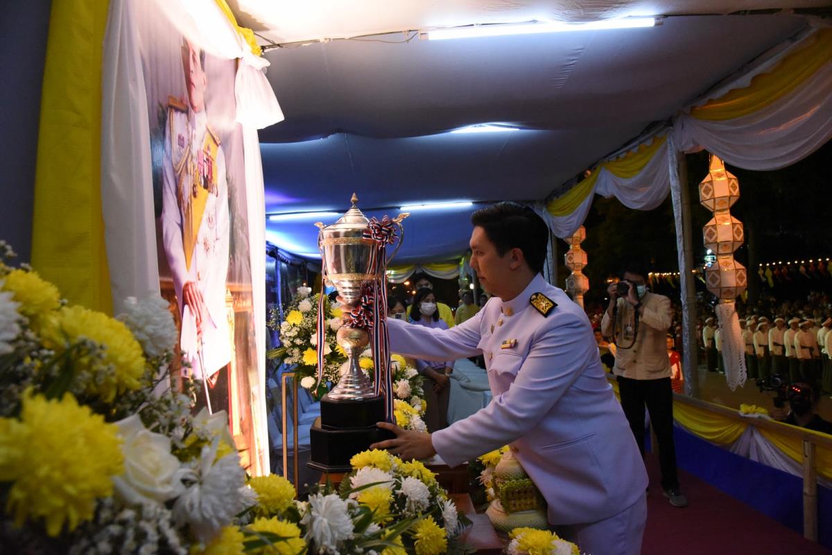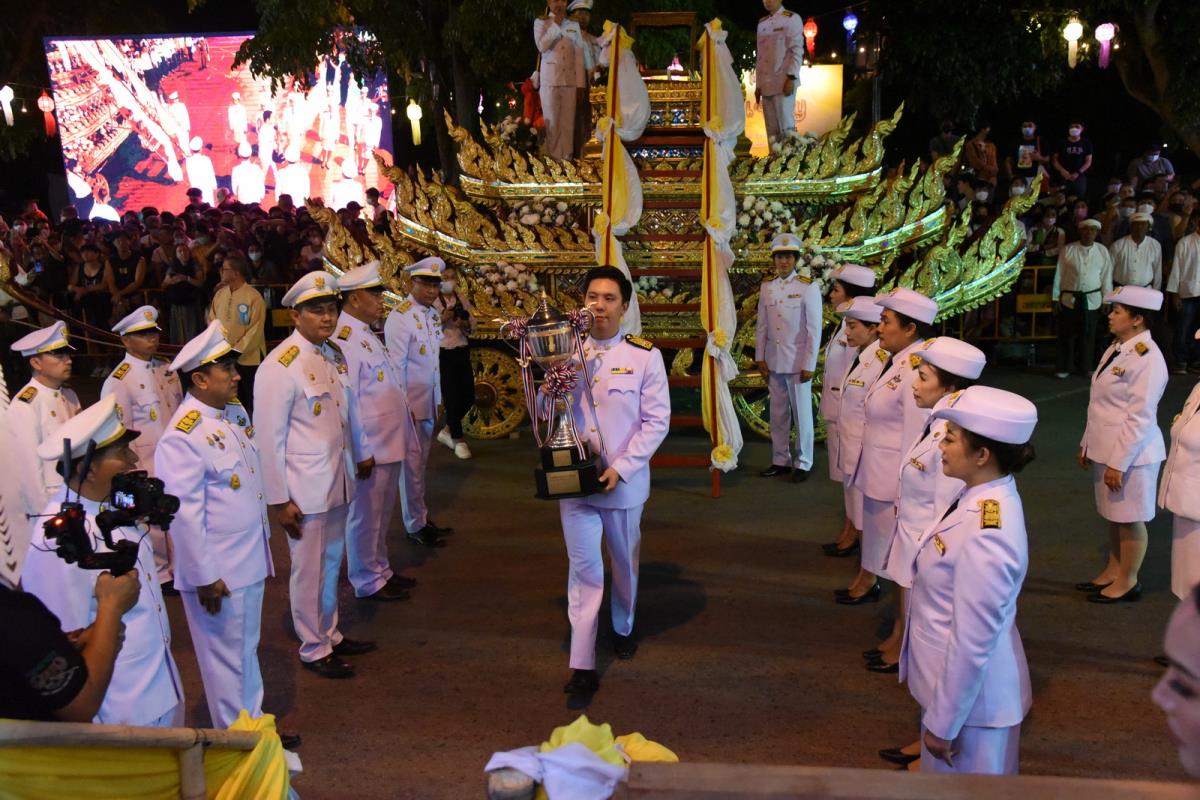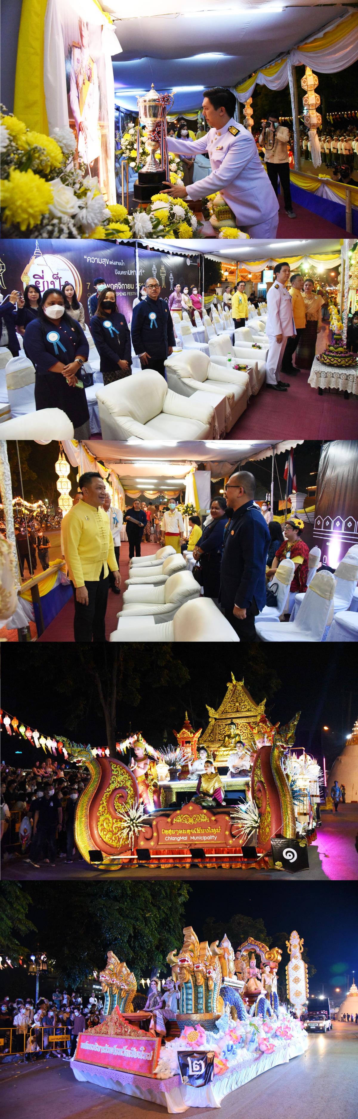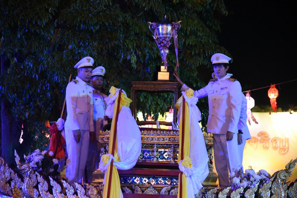 พิธีอัญเชิญถ้วยพระราชทานพระบาทสมเด็จพระเจ้าอยู่หัว ในการประกวดขบวนกระทงใหญ่ การจัดงานประเพณีเดือนยี่เป็งเชียงใหม่ 2565