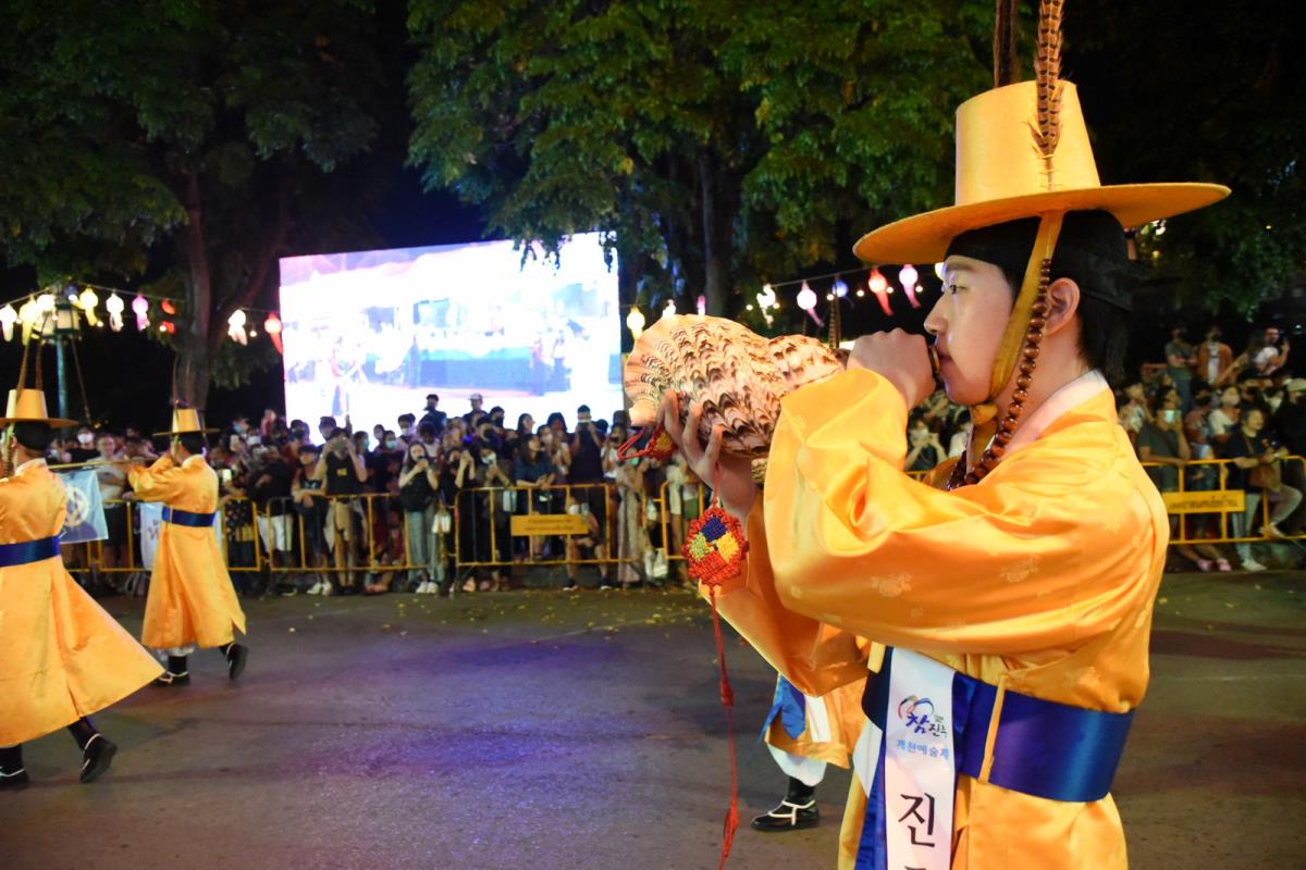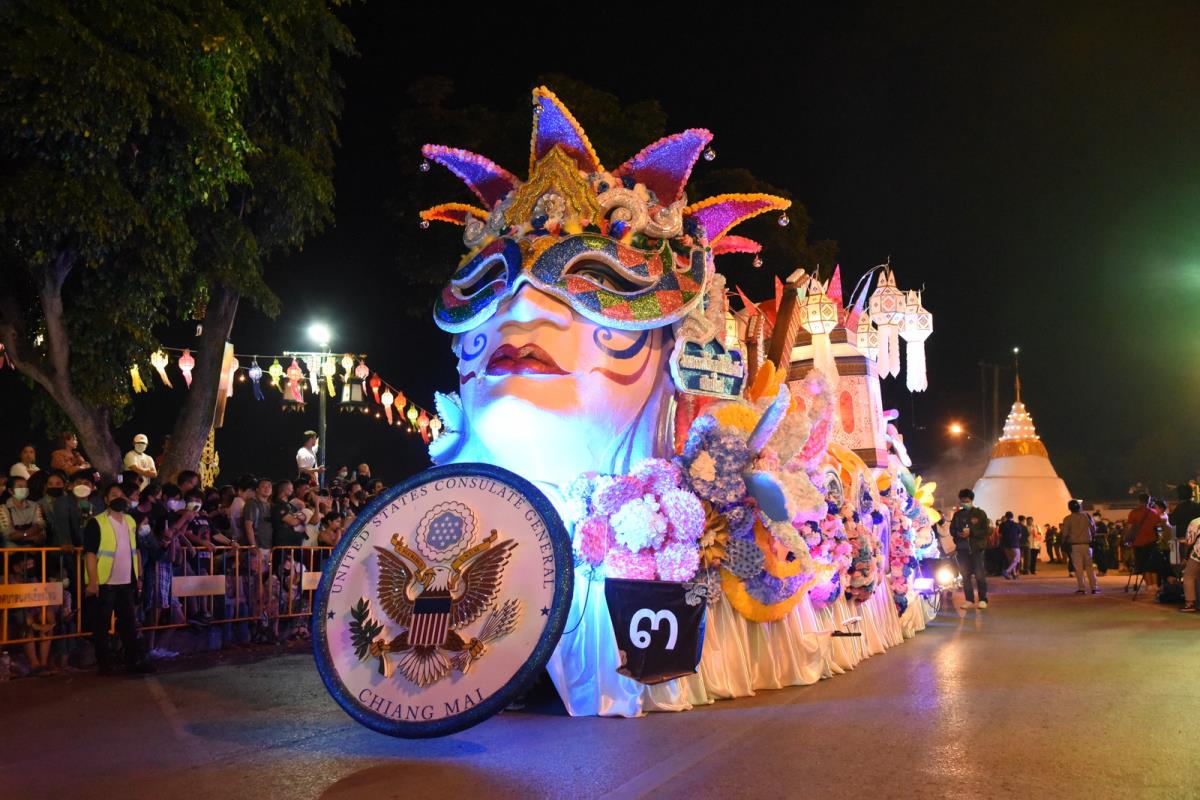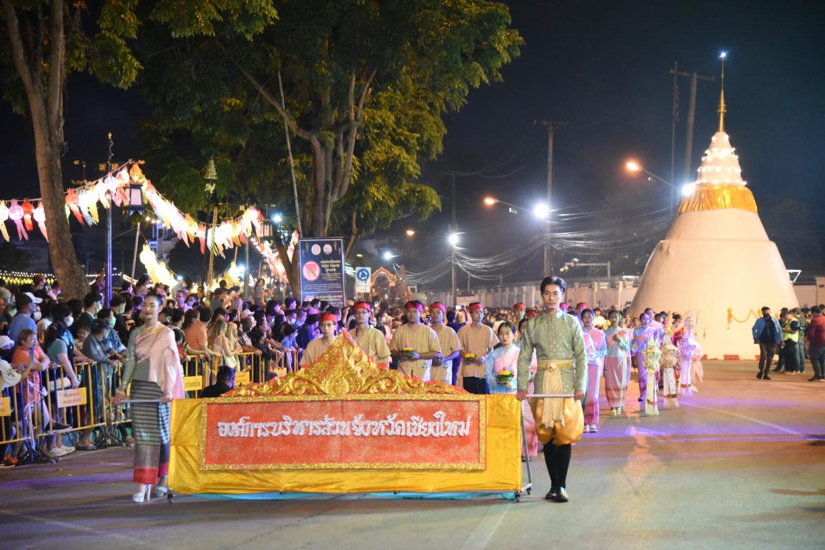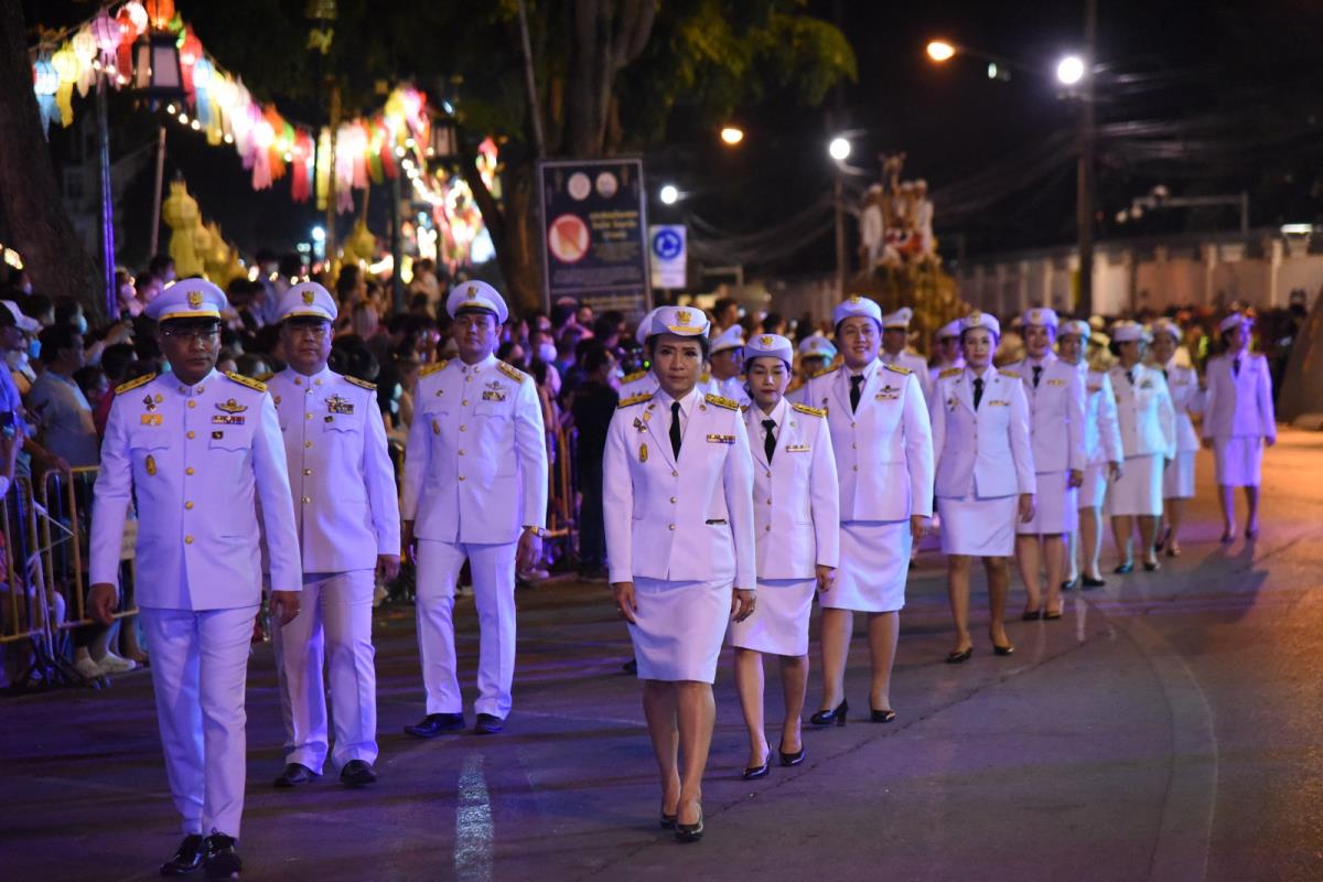 พิธีอัญเชิญถ้วยพระราชทานพระบาทสมเด็จพระเจ้าอยู่หัว ในการประกวดขบวนกระทงใหญ่ การจัดงานประเพณีเดือนยี่เป็งเชียงใหม่ 2565