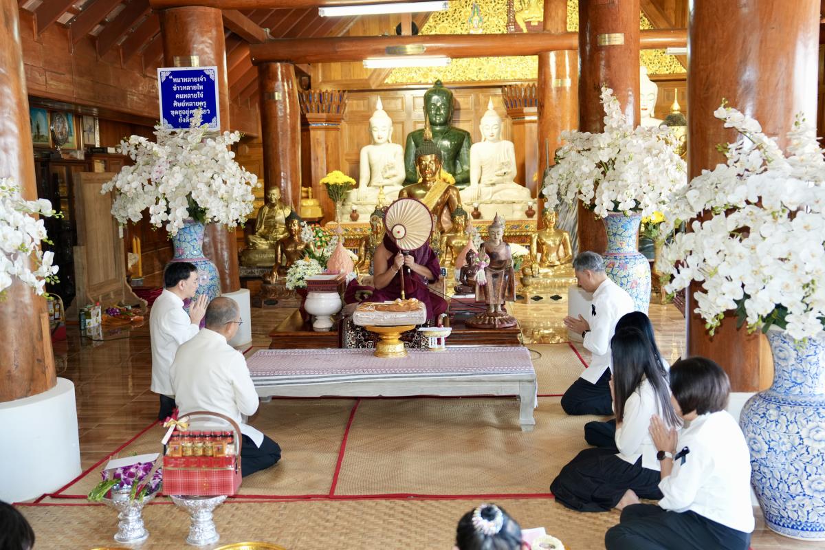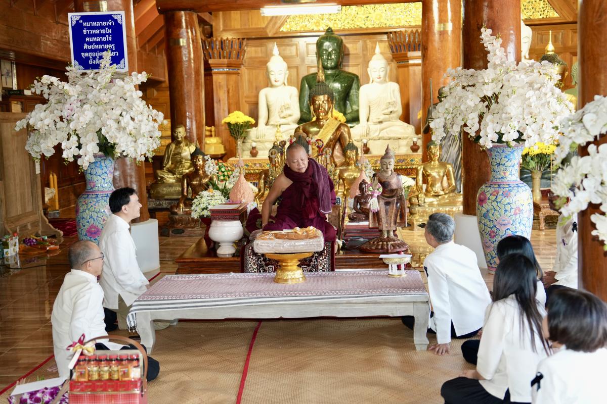 ศาสตราจารย์ ดร.นายแพทย์พงษ์รักษ์ ศรีบัณฑิตมงคล อธิการบดีมหาวิทยาลัยเชียงใหม่ พร้อมด้วยคณะผู้บริหารมหาวิทยาลัยเชียงใหม่ กราบนมัสการขอพร เพื่อความเป็นสิริมงคล เนื่องในเทศกาลวันขึ้นปีใหม่ พ.ศ.2569 จาก ครูบาเจ้าเทือง นาถสีโล เจ้าอาวาสวัดเด่นสะหลีศรีเมืองแกน อ.แม่แตง จ.เชียงใหม่ เมื่อวันอาทิตย์ที่ 11 มกราคม พ.ศ.2569