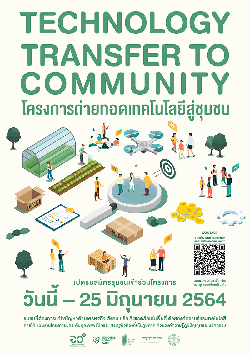 เชิญชวนชุมชน กลุ่มวิสาหกิจชุมชนที่สนใจรับการถ่ายทอดเทคโนโลยี ผู้เชี่ยวชาญและนักวิจัยที่มีความพร้อมในการถ่ายทอดองค์ความรู้ เทคโนโลยี
