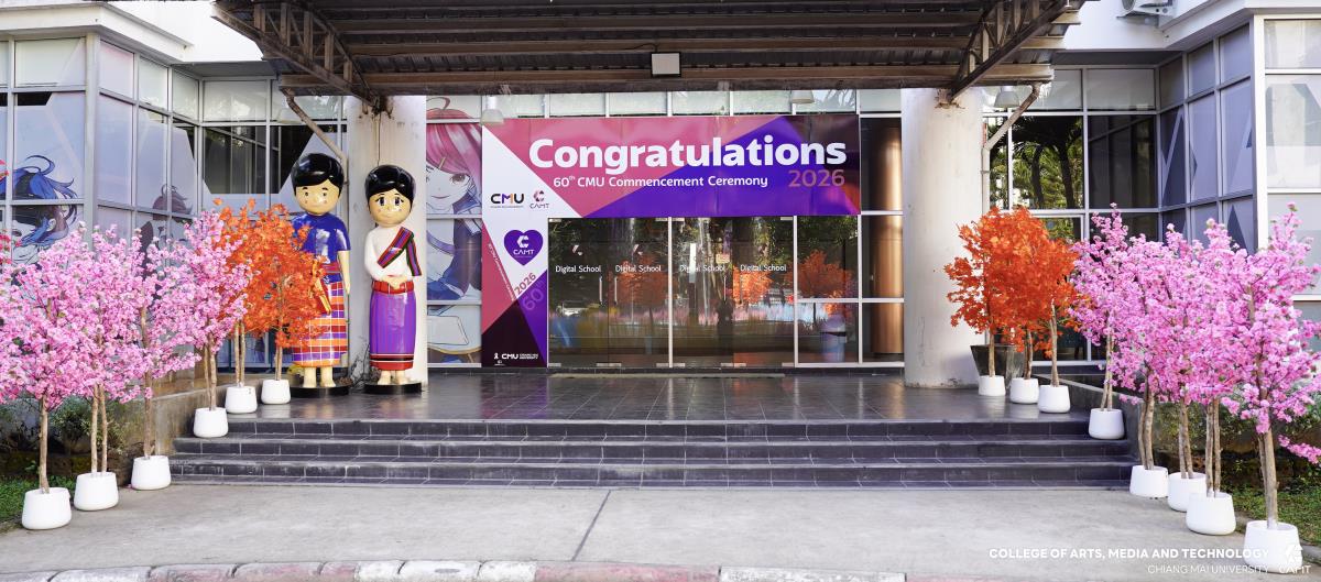 ในปีนี้ วิทยาลัยฯ นำเสนอแนวคิด “Blooming Futures : ก้าวแรกสู่การเบ่งบาน” โดยไฮไลต์อยู่ที่ Sustainable Art การใช้ “ขวดแก้วรีไซเคิล” มาสร้างสรรค์เป็นฉากหลัง เพื่อสื่อถึงการนำประสบการณ์ความรู้มาสร้างคุณค่าใหม่ ผสานกับความงดงามของ “ดอกซากุระ” ที่เป็นสัญลักษณ์แห่งการเริ่มต้นและความเป็นสากล องค์ประกอบทั้งหมดถูกจัดวางอย่างกลมกลืนเพื่อเฉลิมฉลองการเปลี่ยนผ่านของบัณฑิตสู่ก้าวต่อไปของชีวิตอย่างภาคภูมิ ในวันที่ 10 มกราคม 2569 ณ วิทยาลัยศิลปะ สื่อ และเทคโนโลยี มหาวิทยาลัยเชียงใหม่