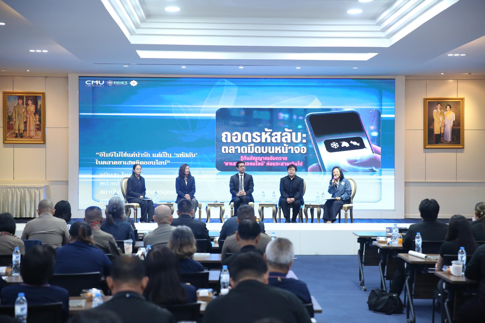ในการนี้ นางสาวกนิษฐา ไทยกล้า นักวิจัยหน่วยสารเสพติด สถาบันวิจัยวิทยาศาสตร์สุขภาพ มหาวิทยาลัยเชียงใหม่ ได้รับเชิญเป็นวิทยากรหลัก นำเสนอผลการวิจัยประจำปี 2568–2569 เรื่อง “รหัสลับอิโมจิในตลาดยาออนไลน์” ซึ่งสะท้อนสถานการณ์ที่น่ากังวลว่า การซื้อขายยาเสพติดได้ขยายตัวจากตลาดมืด (Dark Web) มาสู่แพลตฟอร์มสาธารณะที่เยาวชนใช้งานเป็นประจำ อาทิ X, Facebook และ Telegram