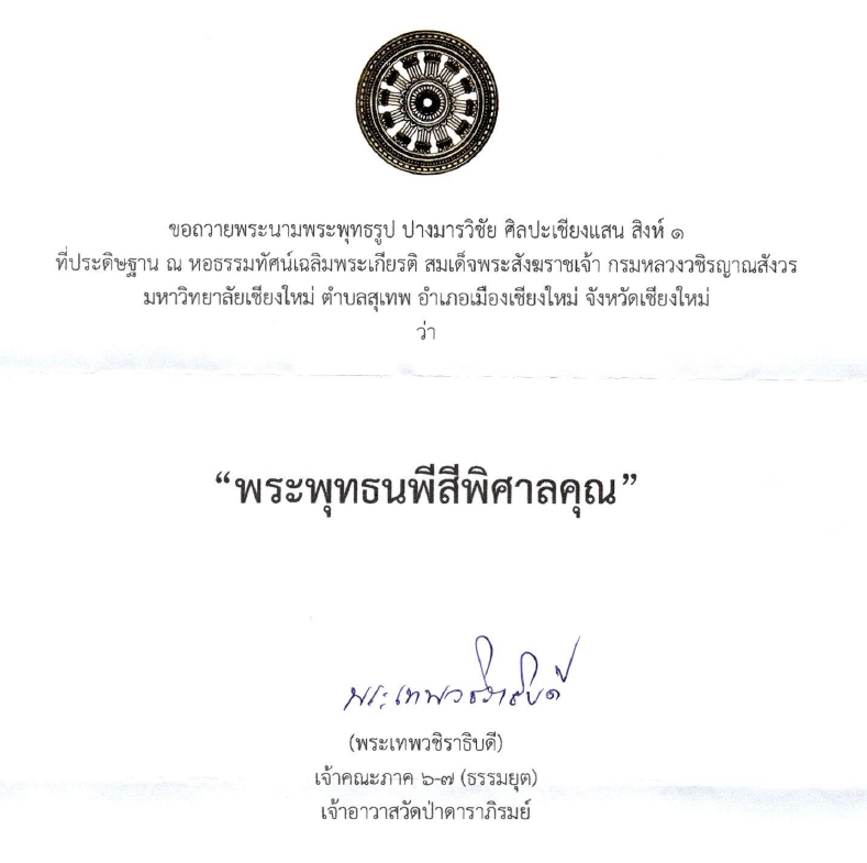 ในการนี้ มหาวิทยาลัยเชียงใหม่ได้กราบนมัสการพระเทพวชิราธิบดี (ฤทธิรงค์ ญาณวโร) ขอถวายพระนามพระพุทธรูป เพื่อความเป็นสิริมงคล โดยได้รับเมตตาถวายนามพระพุทธรูปว่า “พระพุทธนพีสีพิศาลคุณ”