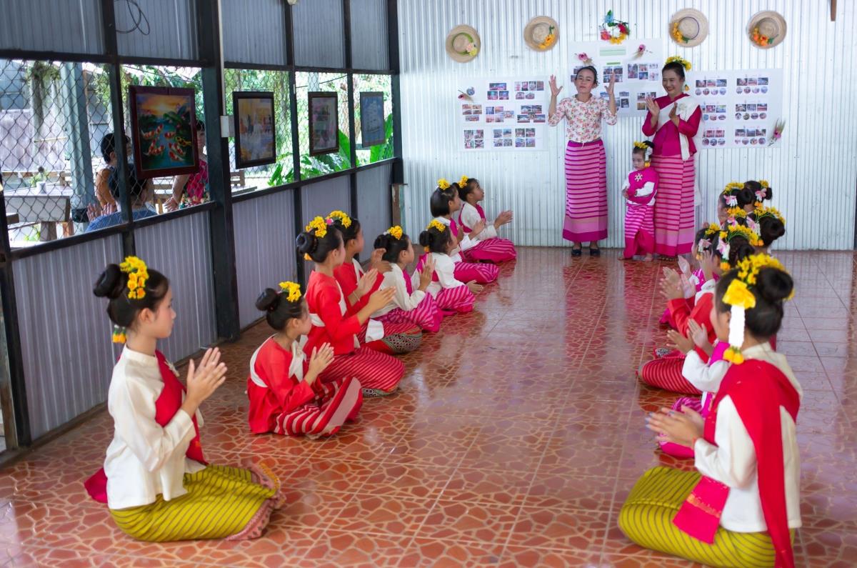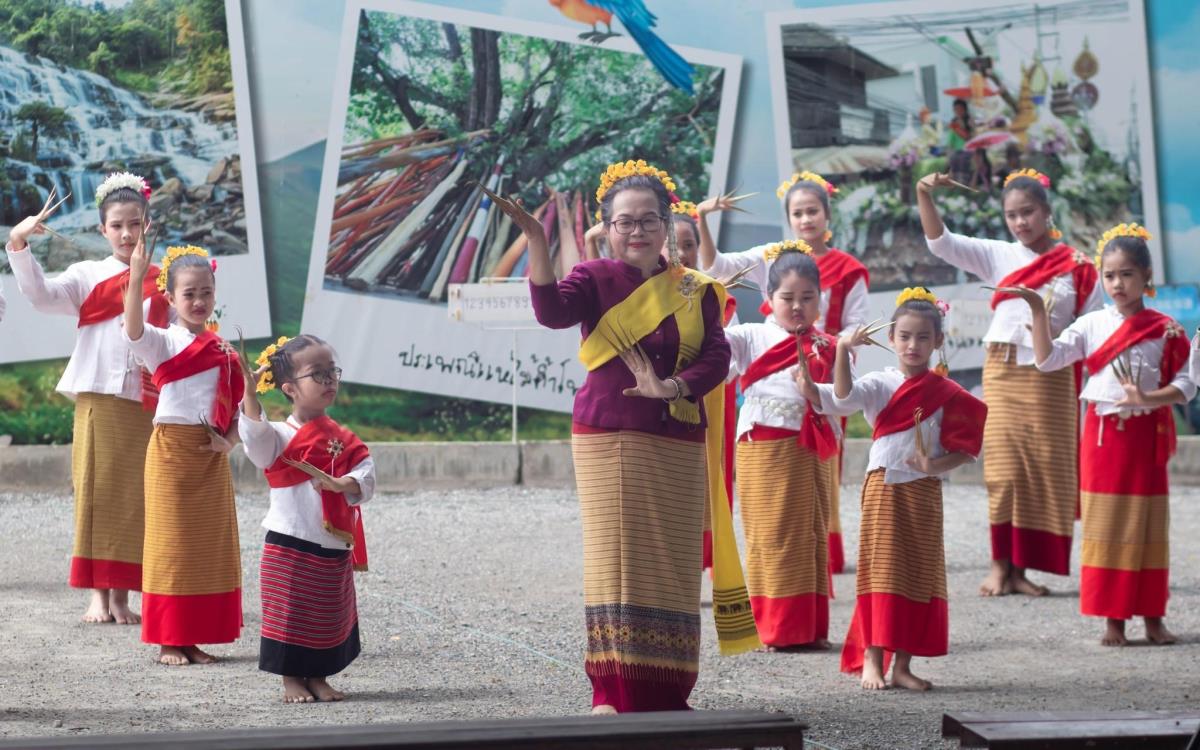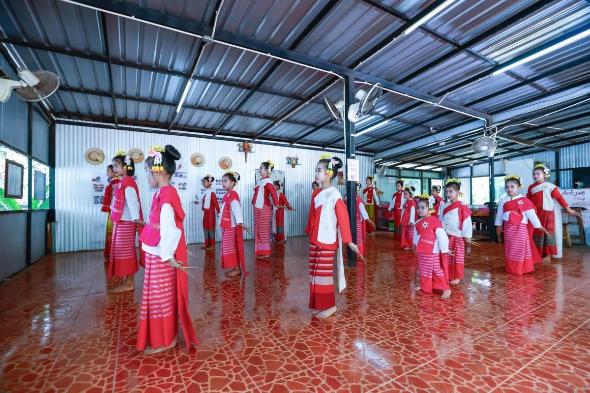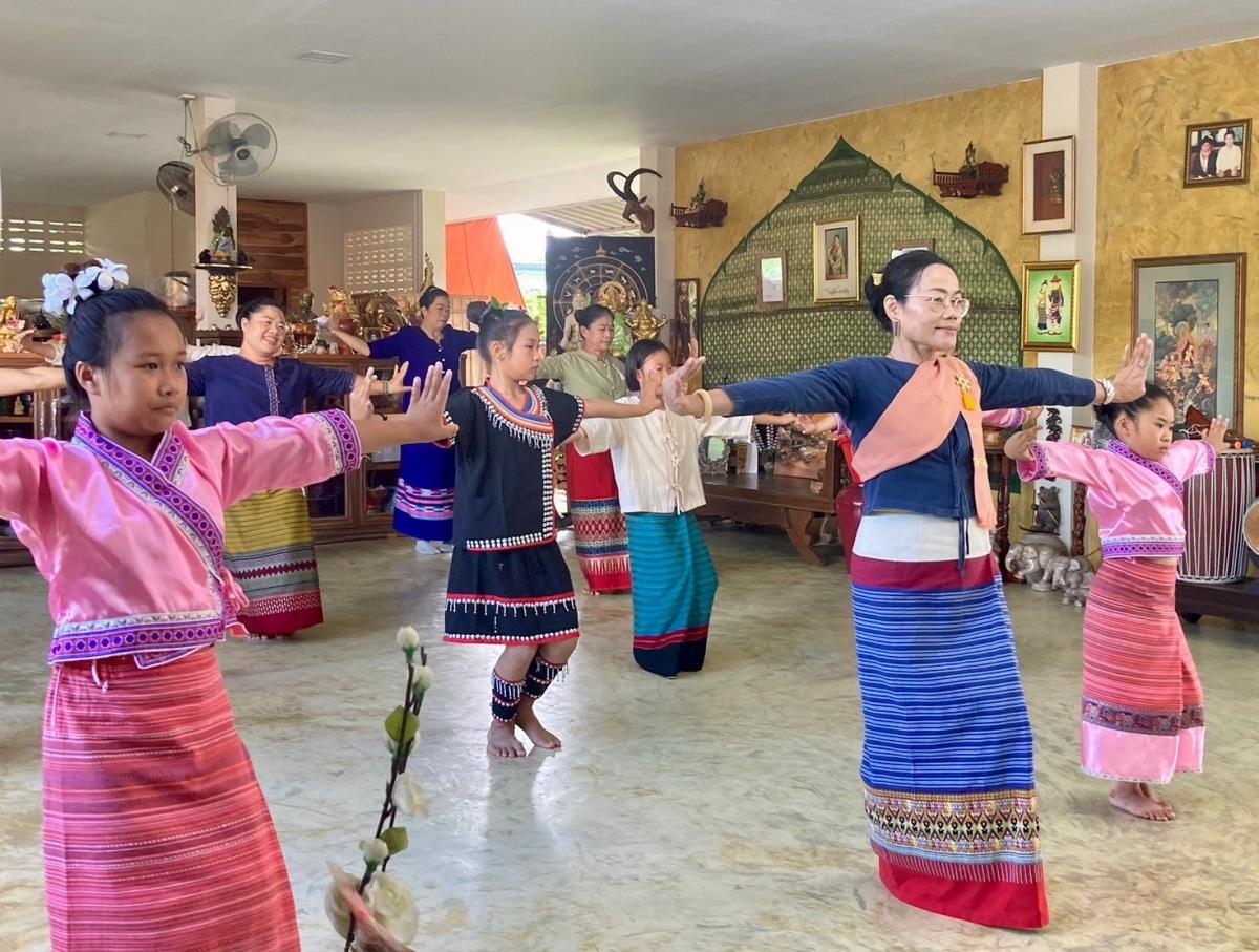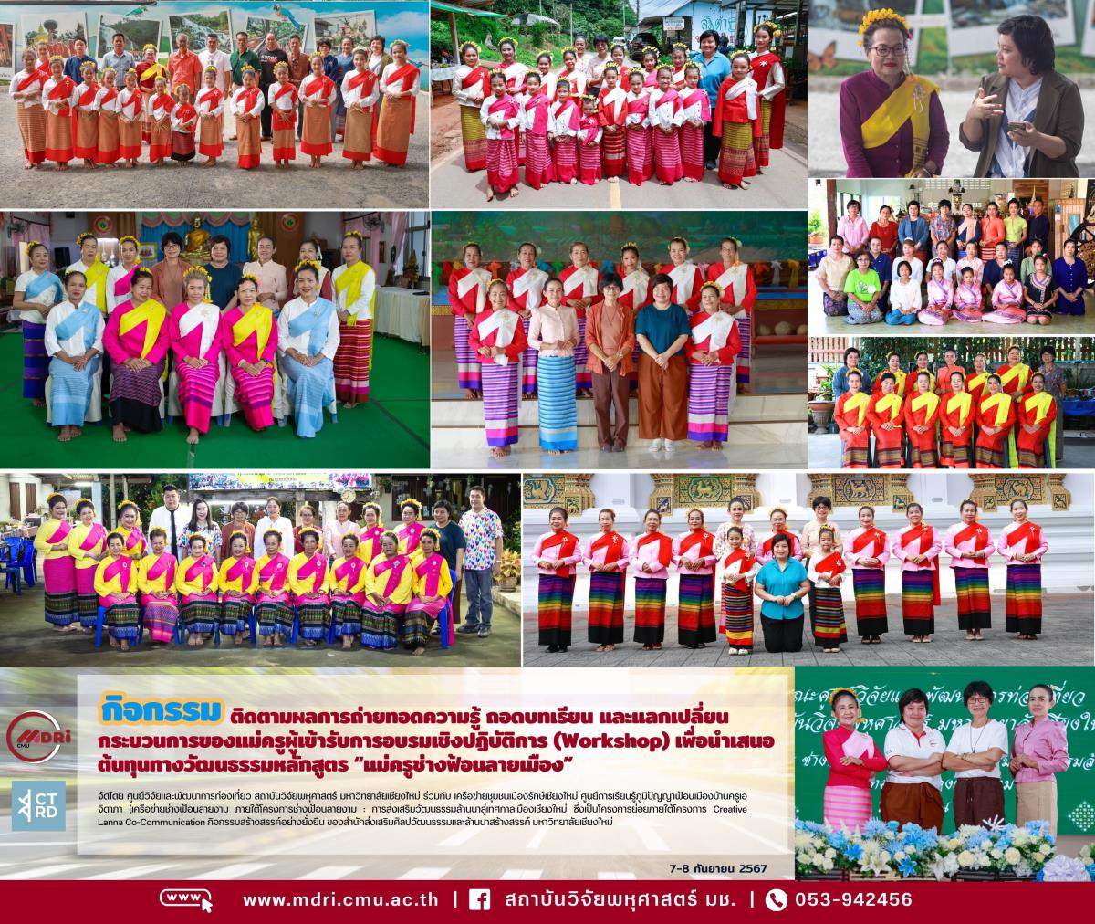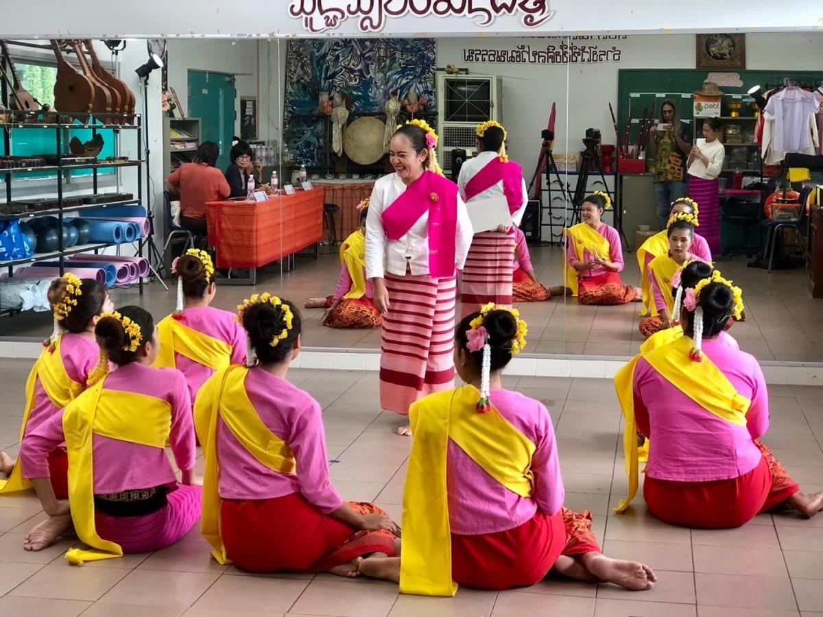 กิจกรรมติดตามผลการถ่ายทอดความรู้ ถอดบทเรียน และแลกเปลี่ยนกระบวนการของแม่ครูผู้เข้ารับการอบรมเชิงปฏิบัติการ (Workshop) เพื่อนำเสนอต้นทุนทางวัฒนธรรมหลักสูตร “แม่ครูช่างฟ้อนลายเมือง”