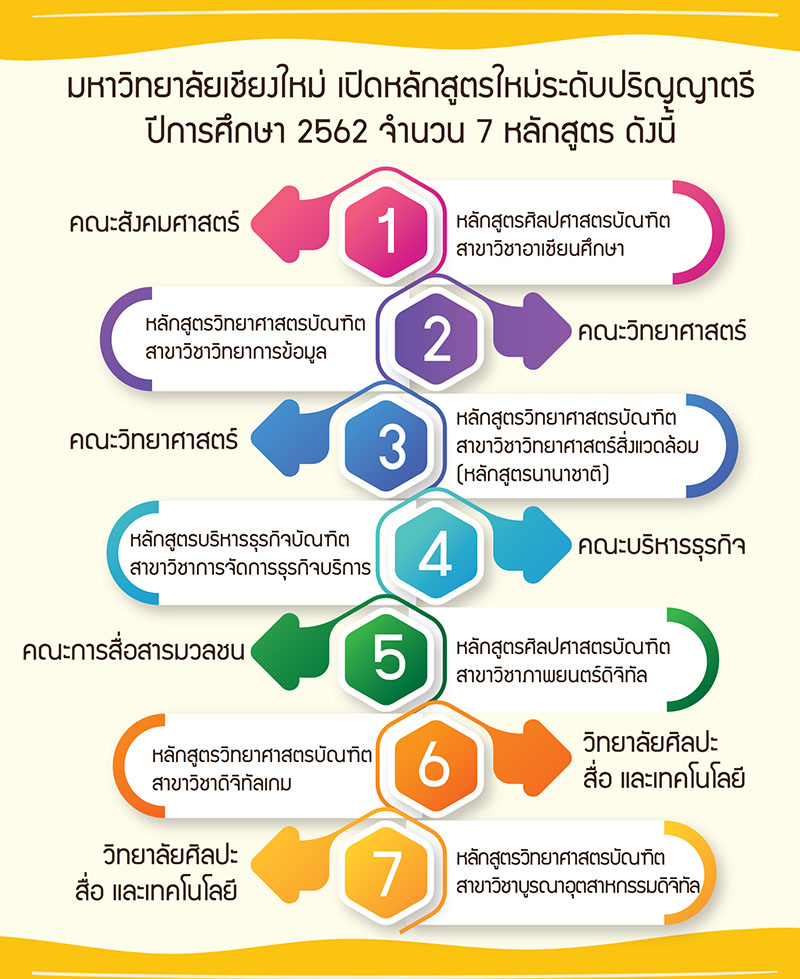 มหาวิทยาลัยเชียงใหม่ พัฒนายุทธศาสตร์ด้านวิชาการ เปิดหลักสูตรใหม่ มุ่งตอบโจทย์ผู้เรียนยุค 4.0 รองรับการเปลี่ยนแปลงของโลก ผลิตบัณฑิตคุณภาพให้ตรงกับความต้องการของประเทศ พร้อมรับนักศึกษาหลักสูตรนานาชาติ – สองภาษา