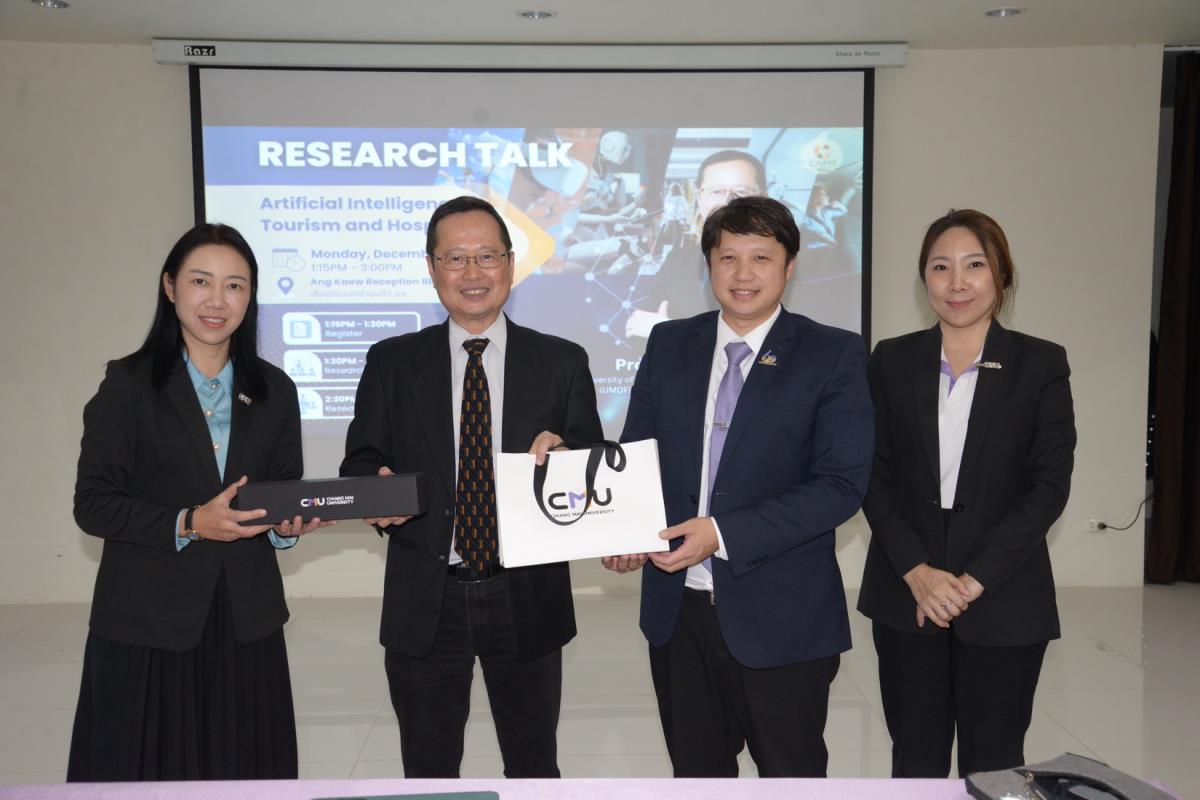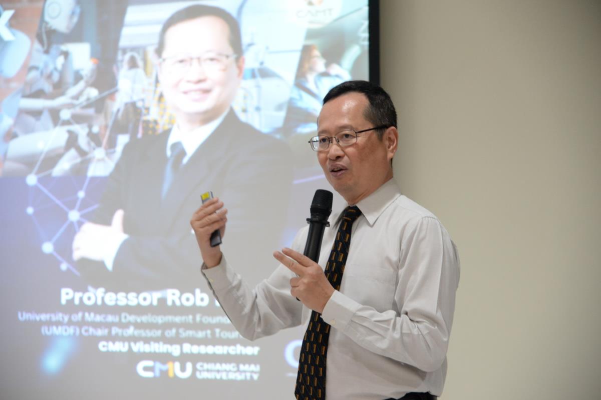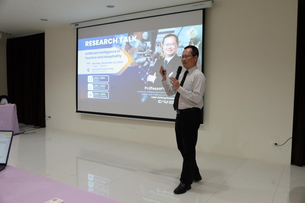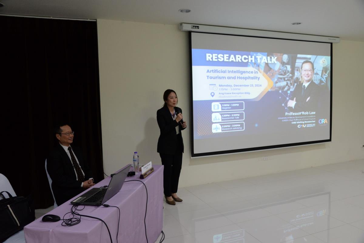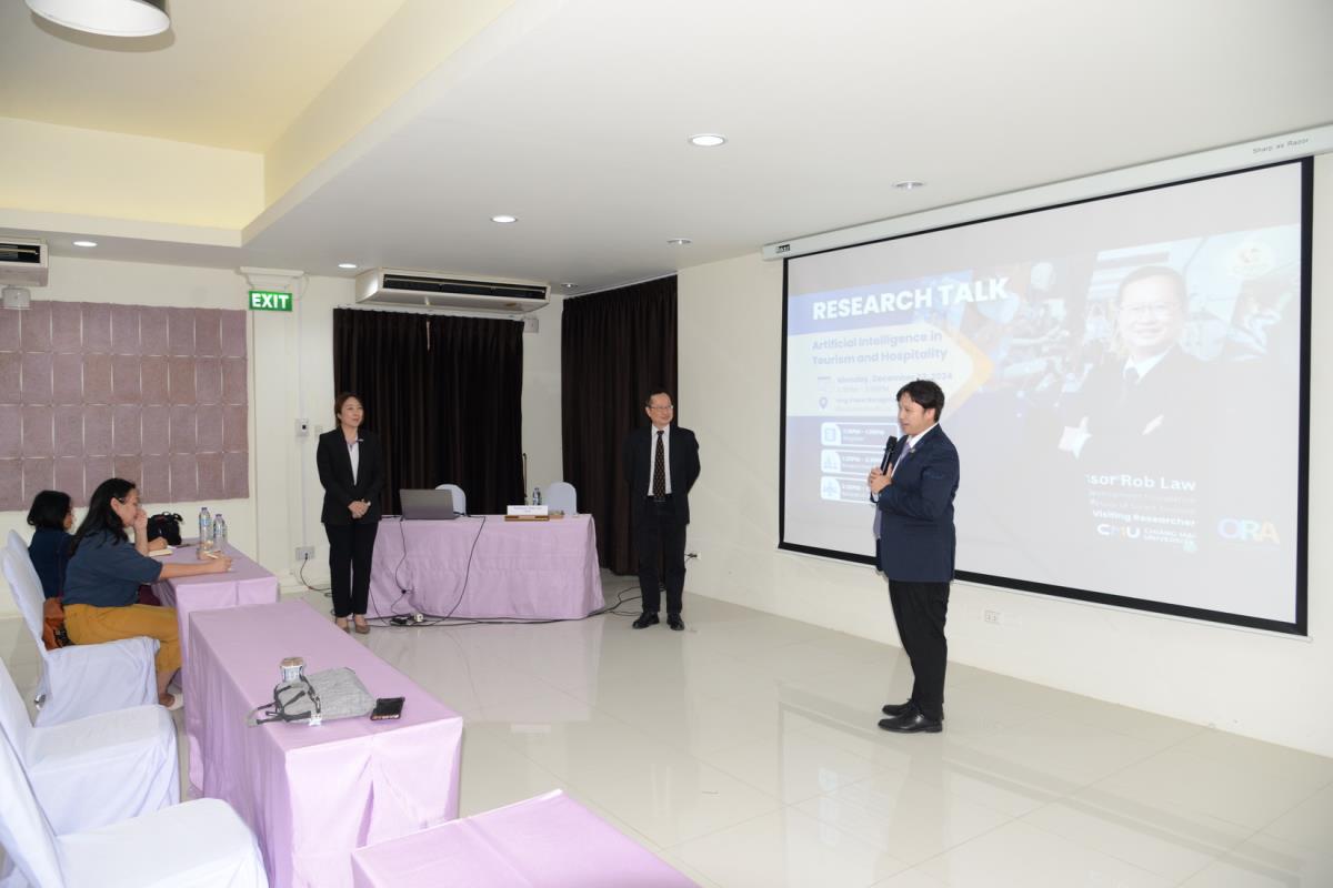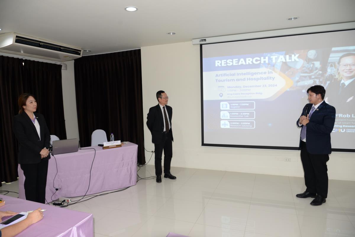 ผู้ช่วยศาสตราจารย์ ดร.ไพรัช พิบูลย์รุ่งโรจน์ ผู้ช่วยศาสตราจารย์ ดร.จุฑาทิพย์ เฉลิมผล ผู้ช่วยอธิการบดี และอาจารย์ ดร.อฬิญญา พงษ์วาท ผู้อำนวยการศูนย์สื่อสารองค์กรและนักศึกษาเก่าสัมพันธ์ มหาวิทยาลัยเชียงใหม่ ให้การต้อนรับ Professor Rob Law จาก University of Macau Development Foundation (UMDF) Chair Professor of Smart Tourism ผู้เชี่ยวชาญด้าน Smart Tourism ซึ่งมีประสบการณ์ตีพิมพ์ระดับนานาชาติ จนได้รับการอ้างอิง (Citation) สูงกว่า 35,400 ครั้ง และมี h-index สูงถึง 89 เป็นอันดับ 1 ของโลก ด้าน Tourism and Hospitality และทำหน้าที่เป็น Editorial Board ให้กับ 200 กว่า Research Journals ในโอกาสที่มาบรรยายพิเศษ Research Talk หัวข้อ: Artificial Intelligence in Tourism and Hospitality ในกิจกรรมการถ่ายทอดความรู้ และส่งเสริมการวิจัยด้านท่องเที่ยว โดย Visiting Researcher ของมหาวิทยาลัยเชียงใหม่ และร่วมพูดคุยเรื่องแนวทางการพัฒนาหัวข้องานวิจัย การพัฒนารูปแบบงานวิจัย และการตีพิมพ์งานวิจัยในสาย Social Science กับบุคลากร นักวิจัย และนักศึกษา จัดโดยวิทยาลัยศิลปะ สื่อ และเทคโนโลยี มหาวิทยาลัยเชียงใหม่ ณ ห้องประชุม เรือนรับรองอ่างแก้ว วันจันทร์ที่ 23 ธันวาคม พ.ศ. 2567